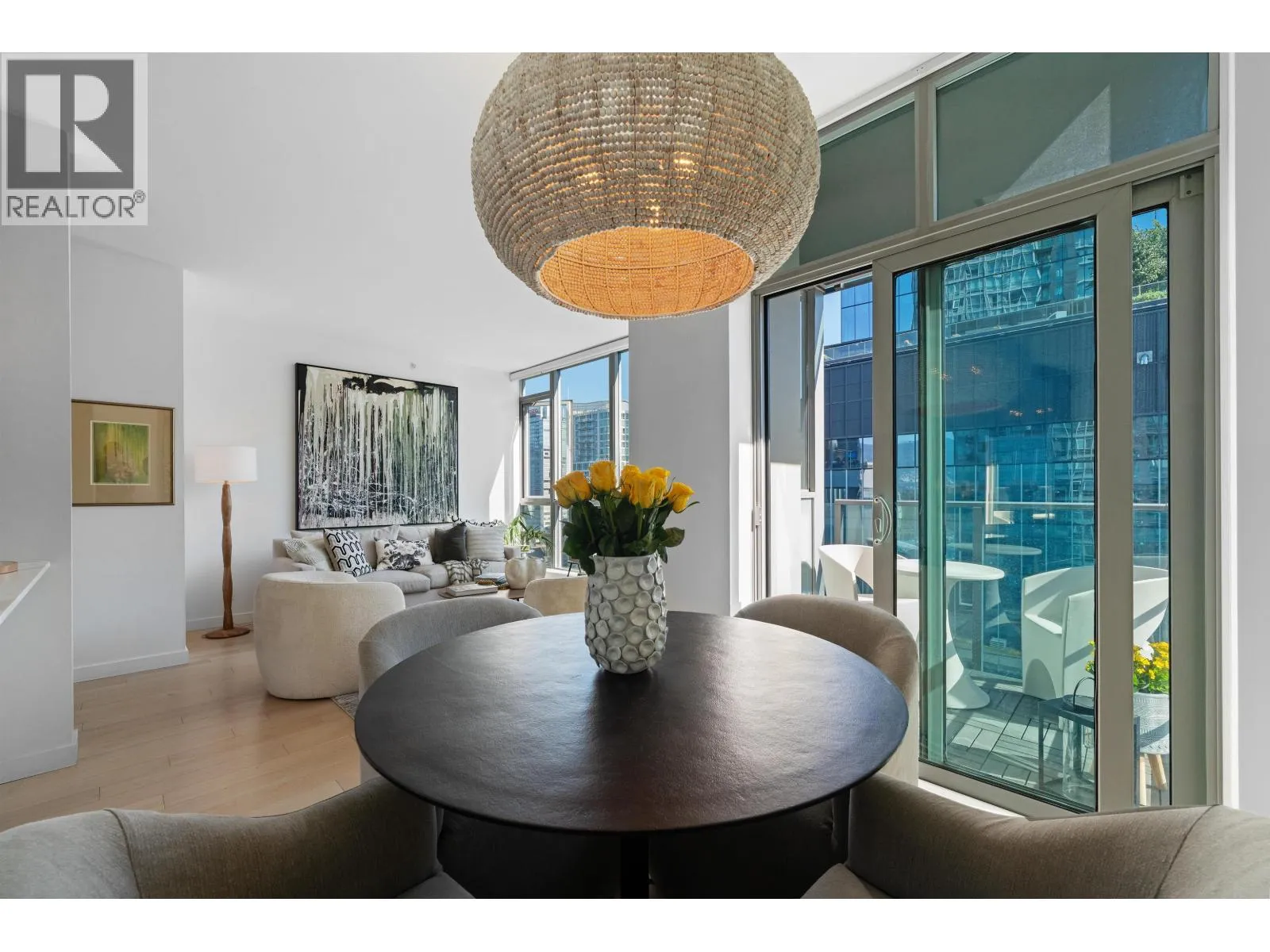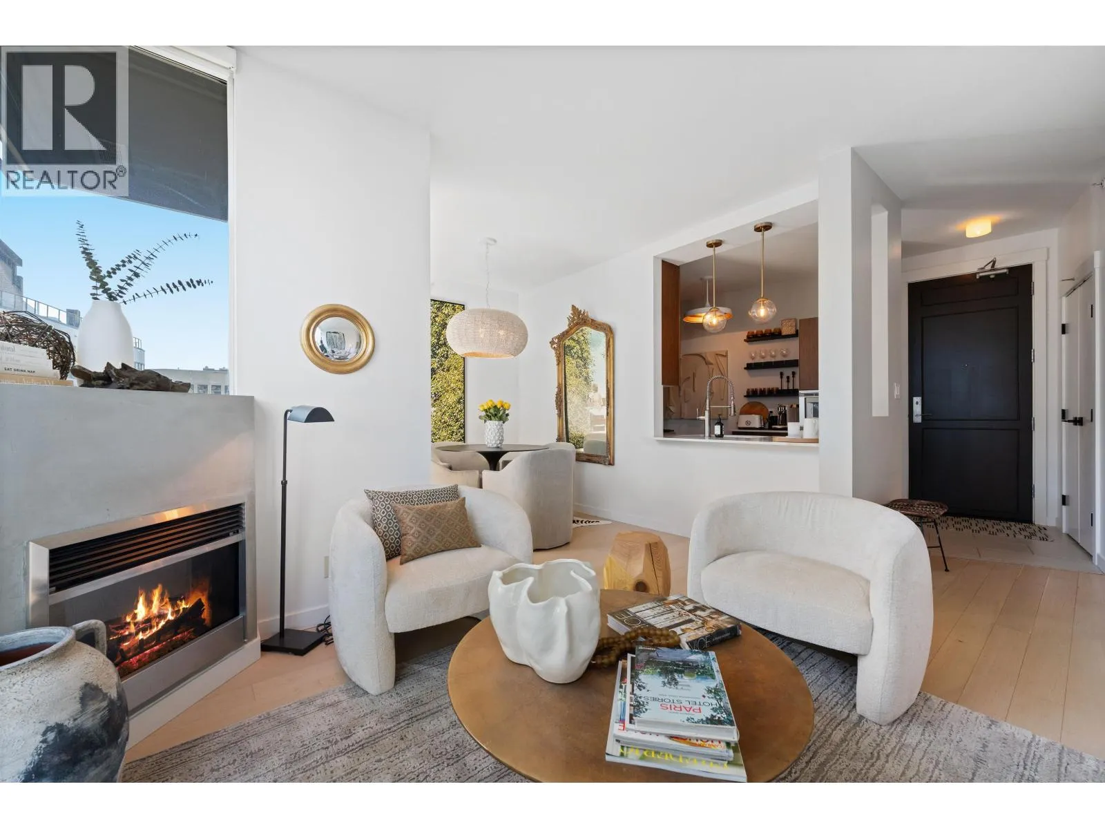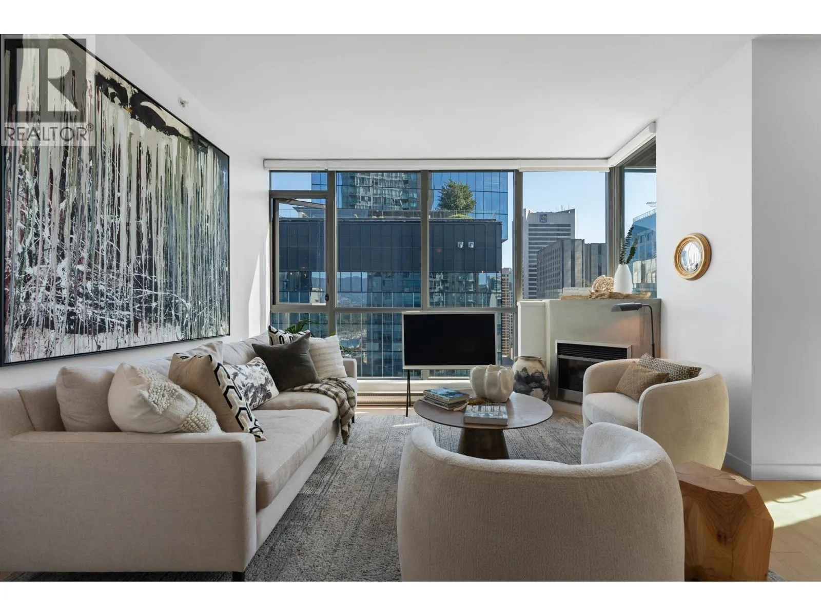 Welcome to The Melville, one of Coal Harbour's most prestigious addresses. This stunning 1 Bed+ Den home boasts views of the city, mountains & ocean from floor-to-ceiling windows with 9' ceilings. Recent upgrades include quartz counters & backsplash, Blanco Silgranit sink, designer lighting, concrete fireplace, power blinds & hardwood floors. The versatile den works perfectly as a home office or junior bedroom, offering flexibility for today's lifestyle. Thoughtfully updated throughout, this home blends modem comfort with timeless style. Enjoy world-class amenities: rooftop pool & hot tub, gym, sauna, Peloton & yoga rooms, 24-hr concierge, gardens & more. Pet-friendly (2 pets, no size restrictions). Steps to the seawall, dining & shopping, this is Coal Harbour living at its finest. Comes with 1 Parking and 1 HUGE storage locker. Visitor Parking. (id:27476)