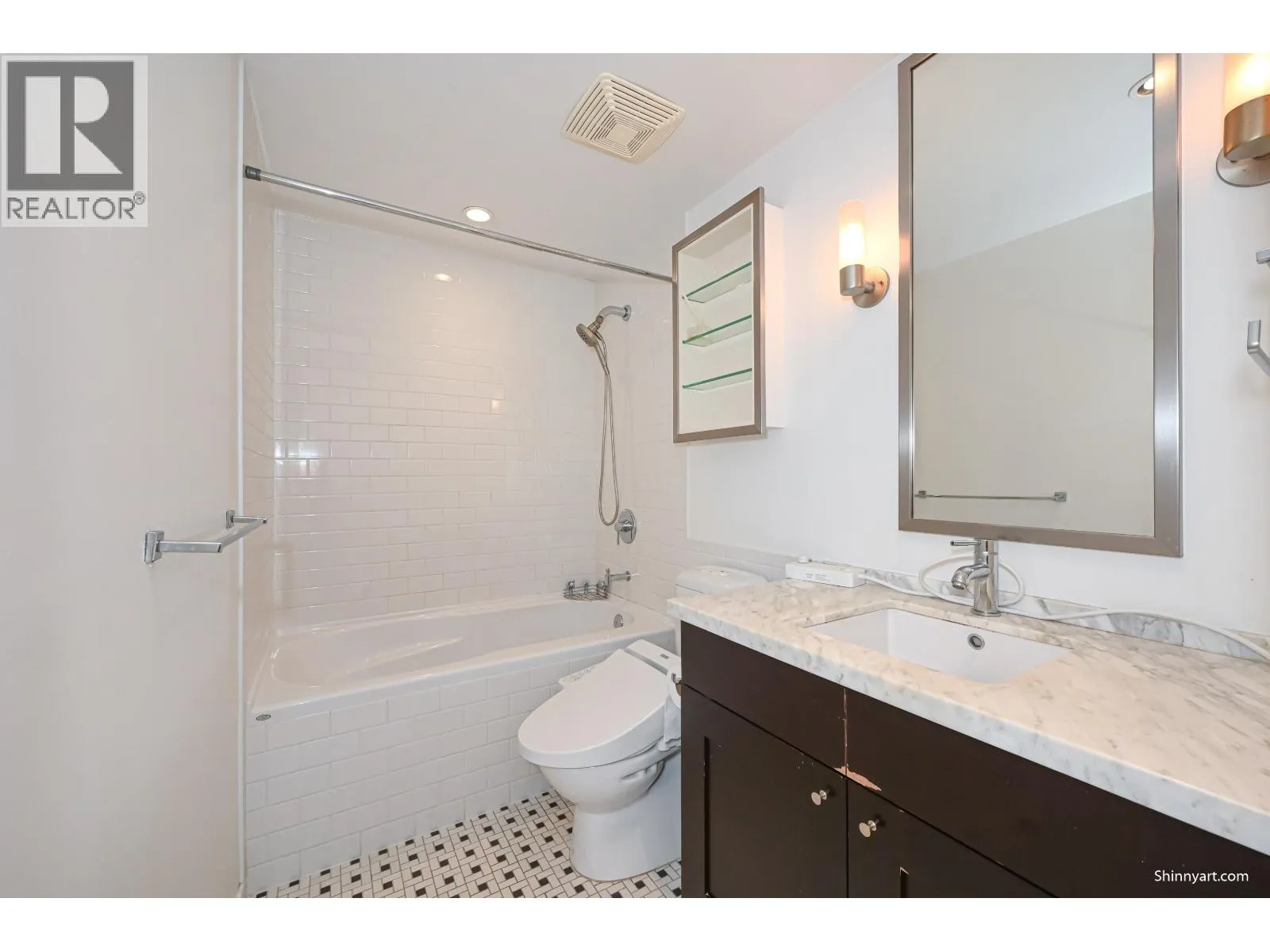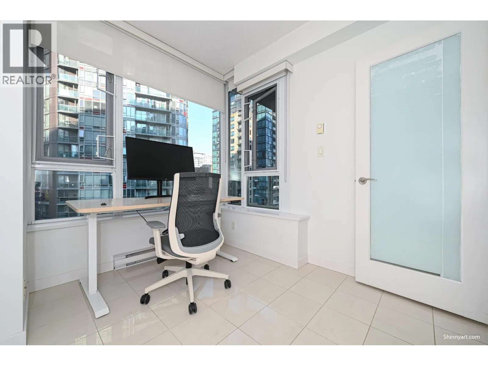 Bright NW-facing 2 bed + den + flex corner unit at Raffles on Robson. This well-designed home features mountains & city views, a covered balcony, and 3-year new laminate flooring. The modern kitchen offers granite counters, sleek cabinetry, and premium appliances by Miele. Bathrooms are finished with marble counters, porcelain tile, and a rain shower. Functional layout with in-suite storage and 1 parking included. Building amenities: gym, hot tub, media room, and more. Rentals and 1 pet (cat or dog) allowed. Steps to Yaletown, Seawall, transit, dining, and shops. (id:27476)