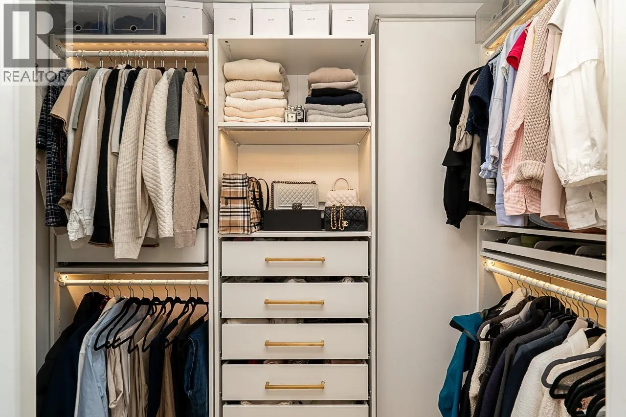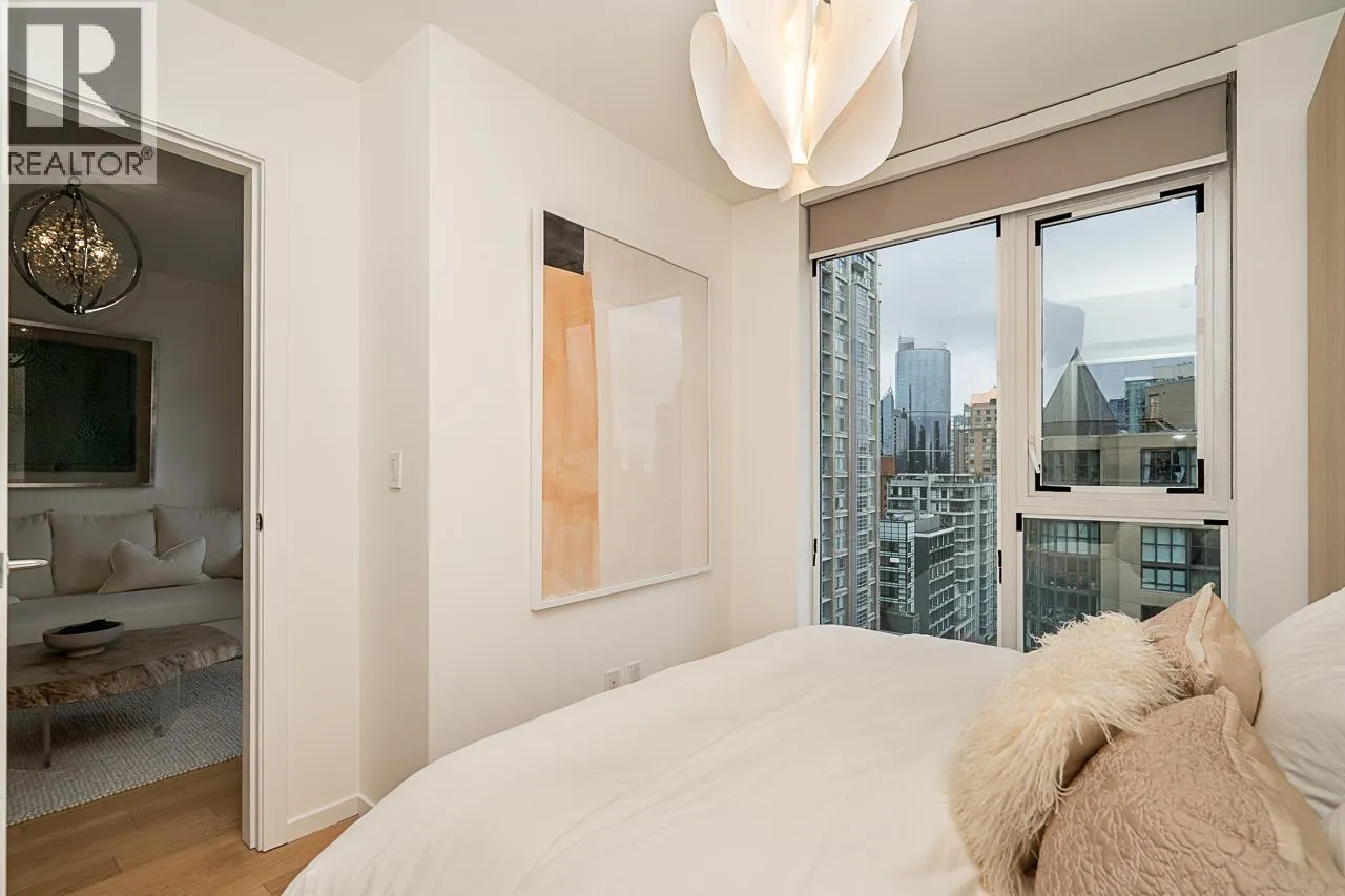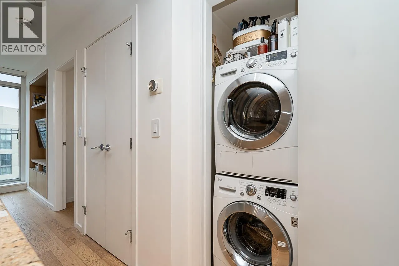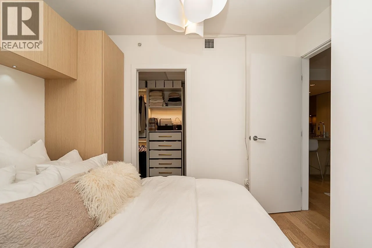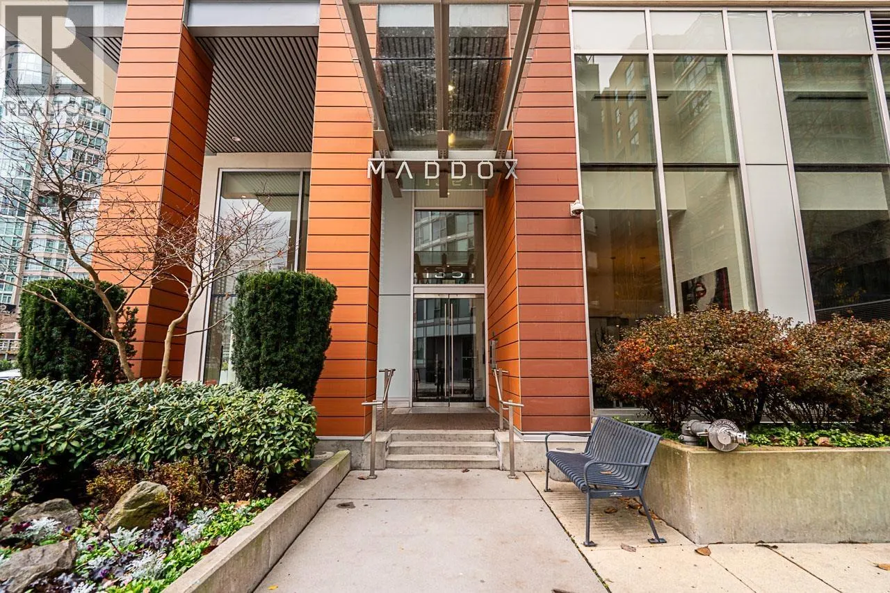 Experience downtown living at Maddox. This perfectly designed home features a smart, efficient layout with no wasted space. Enjoy a spacious, high-end kitchen complete with integrated appliances, a 5-burner gas cooktop, & abundant storage. Upgrades include heated bathroom floors, AC, and custom millwork for the TV entertainment unit and bedside cabinetry. The bedroom features a beautifully updated walk-in closet with added drawers & enhanced lighting.Take in north-facing views of the downtown skyline, as well as corridor views of the North Shore mountains-offering both beauty and privacy. An UG parking stall is included, along with an impressive 9' x 7' huge private storage room located directly behind the parking. Amenities include a well-quipped gym, sauna, party room, & more. Open House Sunday November 23 2:00pm - 4:00pm. (id:27476)