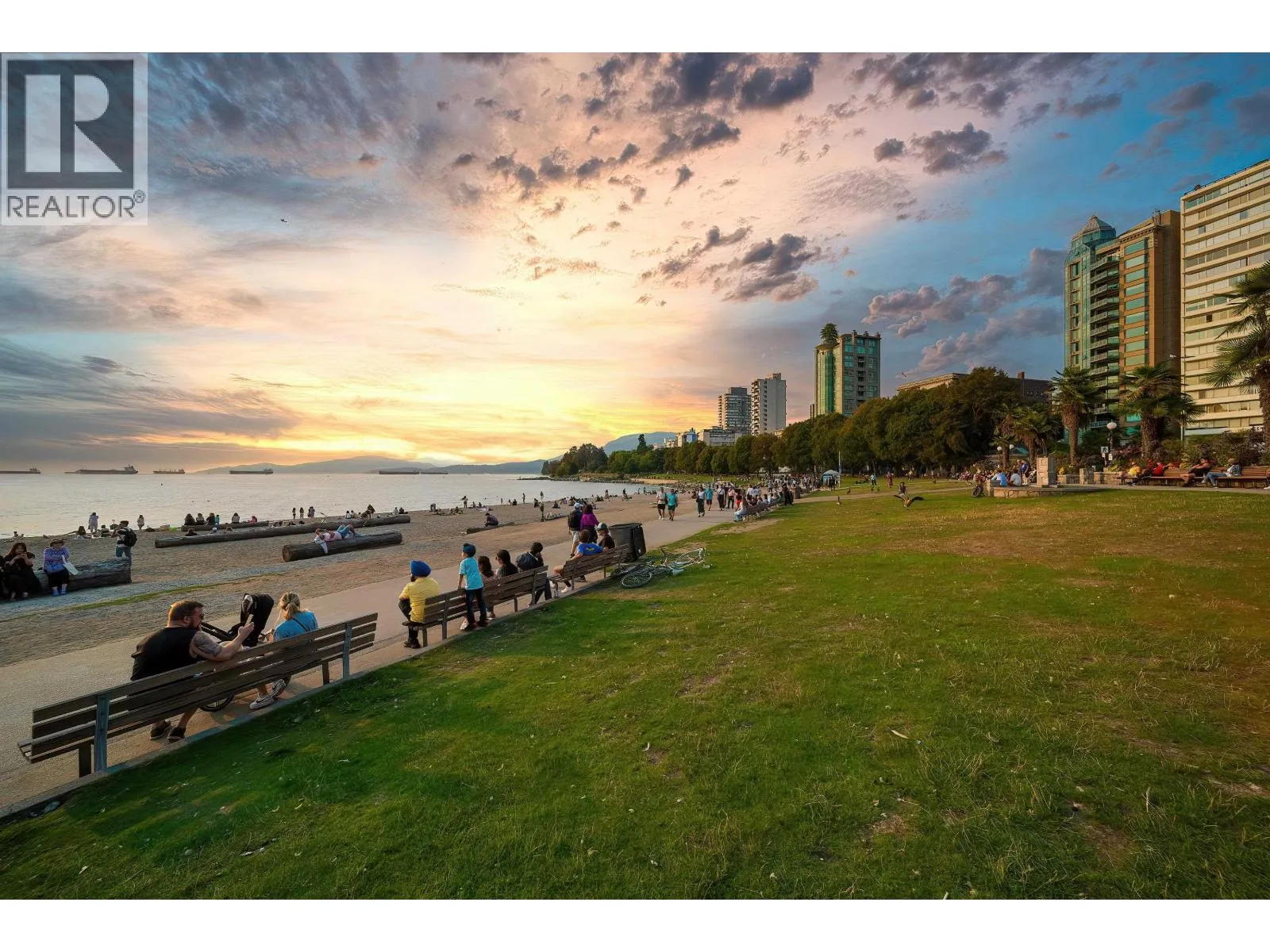 Alexandra is a luxurious building located in one of Vancouver's most desirable neighborhoods. This 961 sqft unit includes 2 bedrooms, 2 bathrooms, a den, and additional flex space. It features hardwood floors, sleek European cabinets, quartz countertops, high-end Miele and Sub-Zero appliances, in-suite laundry, and air conditioning. The spacious balcony is ideal for summer BBQs,offering breathtaking views of the city and English Bay. Club Alexandra provides residents with exclusive amenities such as a private lounge, ocean-view terrace, an elegant lobby with 24-hour concierge, and a well-equipped fitness center. Just steps away, you can enjoy a leisurely walk along the Seawall and soak in the beauty of the West End. No presentation of offers until on Dec 01 2025 at 6:00pm.OH:Nov29-30 2-4PM (id:27476)