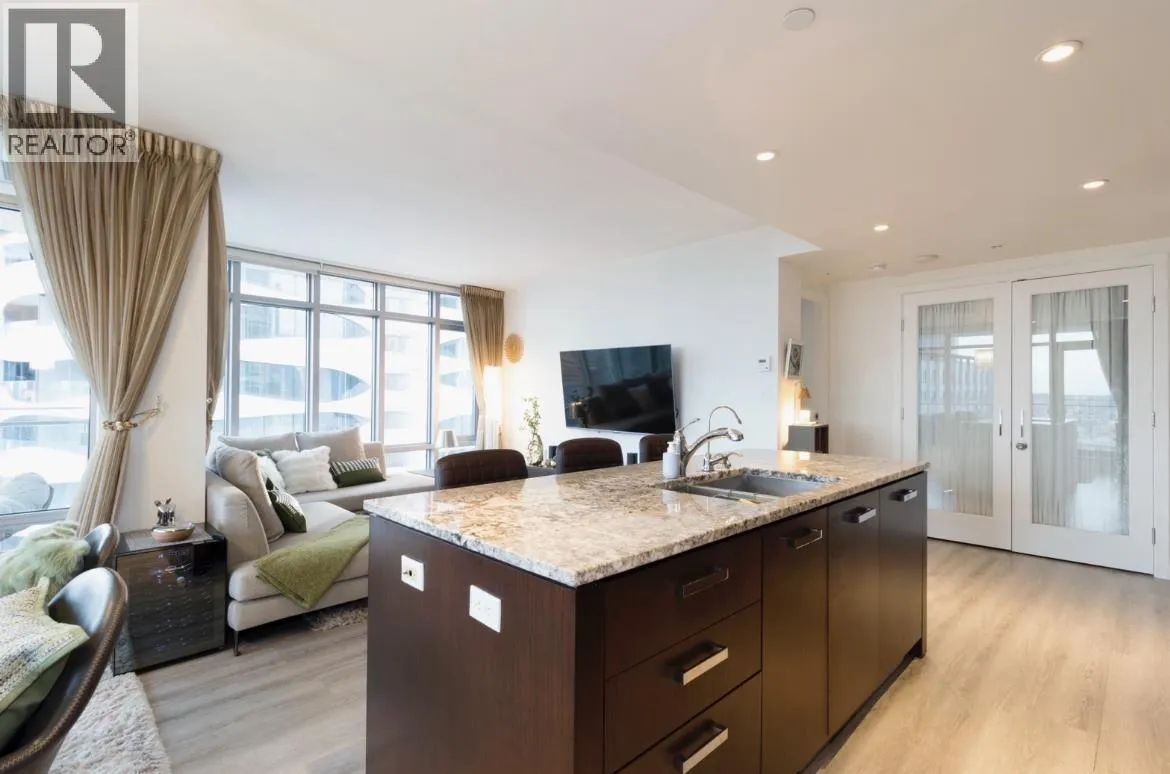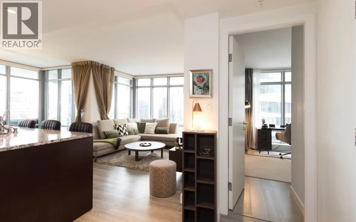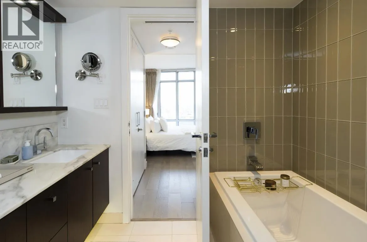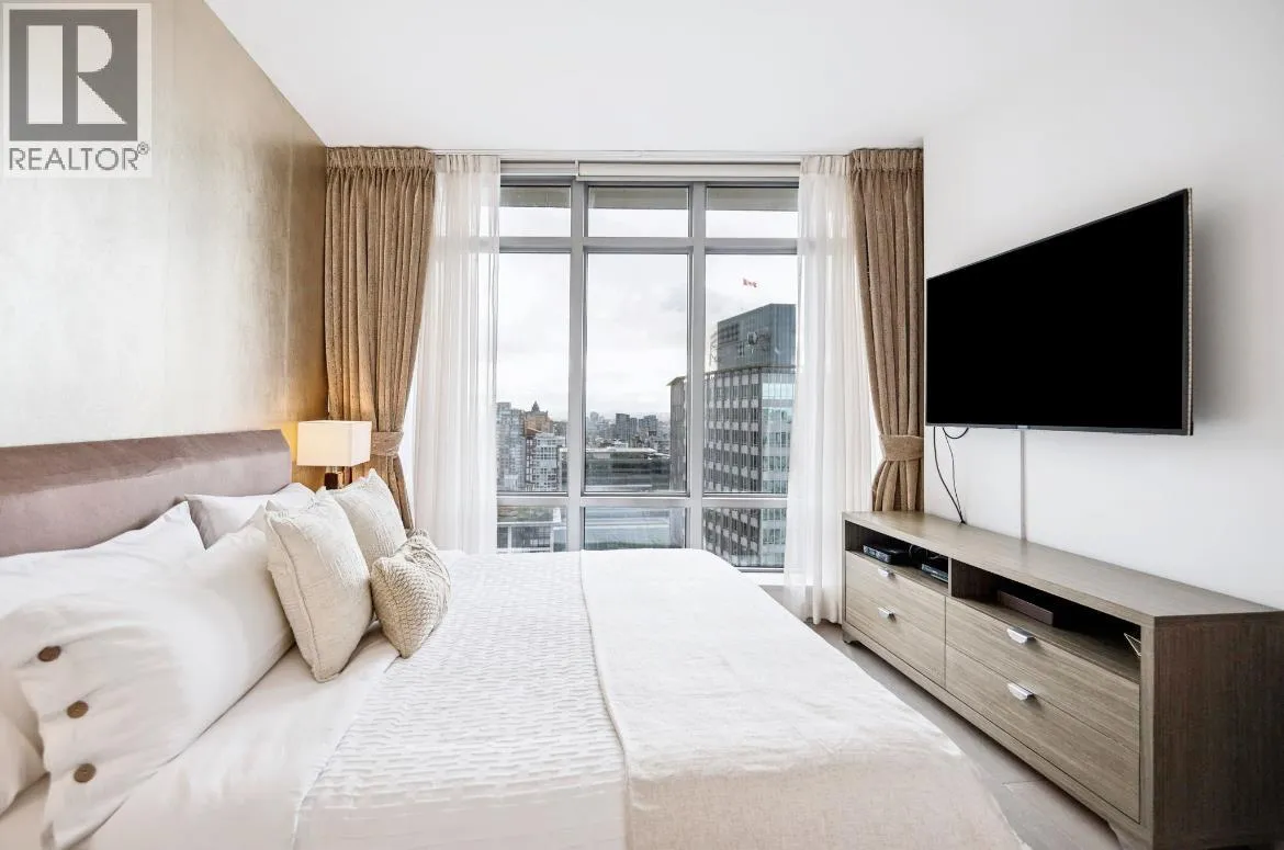 Experience elevated urban living in this beautifully furnished condo situated in the prestigious Patina building in Vancouver. With 1,058 square feet of thoughtfully designed space, this two-bedroom, two-bathroom residence offers a perfect blend of luxury and functionality, ideal for those who appreciate high-quality city living. The condo's modern kitchen is a chef's delight, featuring stainless steel appliances and elegant granite, stone, or quartz countertops, providing a stylish and efficient area for cooking and entertaining. The open-plan living space, complete with a flat-screen TV, offers a comfortable environment for relaxation and socializing. Air conditioning ensures a comfortable climate throughout the year, while in-suite laundry adds convenience to your daily routine. (id:27476)