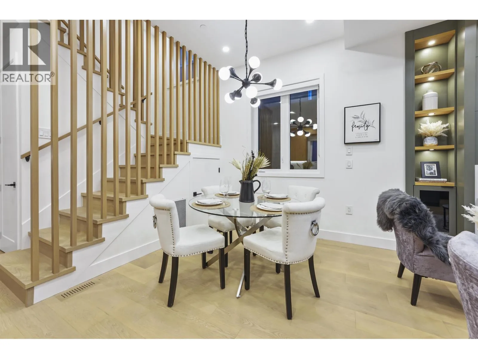 Welcome to this modern front half duplex in the heart of Grandview-Woodland. This 4 bed, 4 bath home offers a functional layout with an open main level featuring 10' ceilings, wide-plank oak floors, built-ins, a gas fireplace, Fisher & Paykel appliances and quartz counters. The second floor includes three spacious bedrooms, one with an ensuite and walk-in closet. The top level offers another bedroom, full bath and a covered private balcony with mountain views. Additional features include A/C, security cameras, Kohler & Riobel fixtures, 600+ square ft of crawl-space storage, a fenced yard and single garage. Book your private showing today! (id:27476)