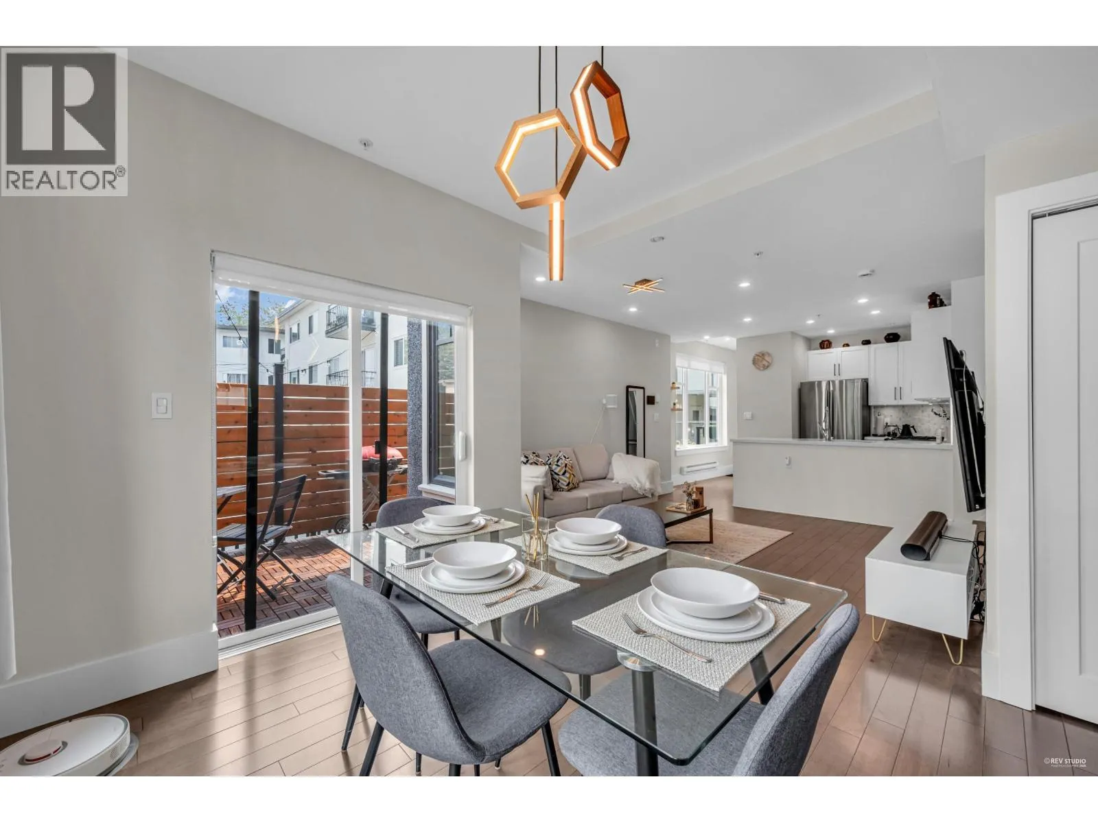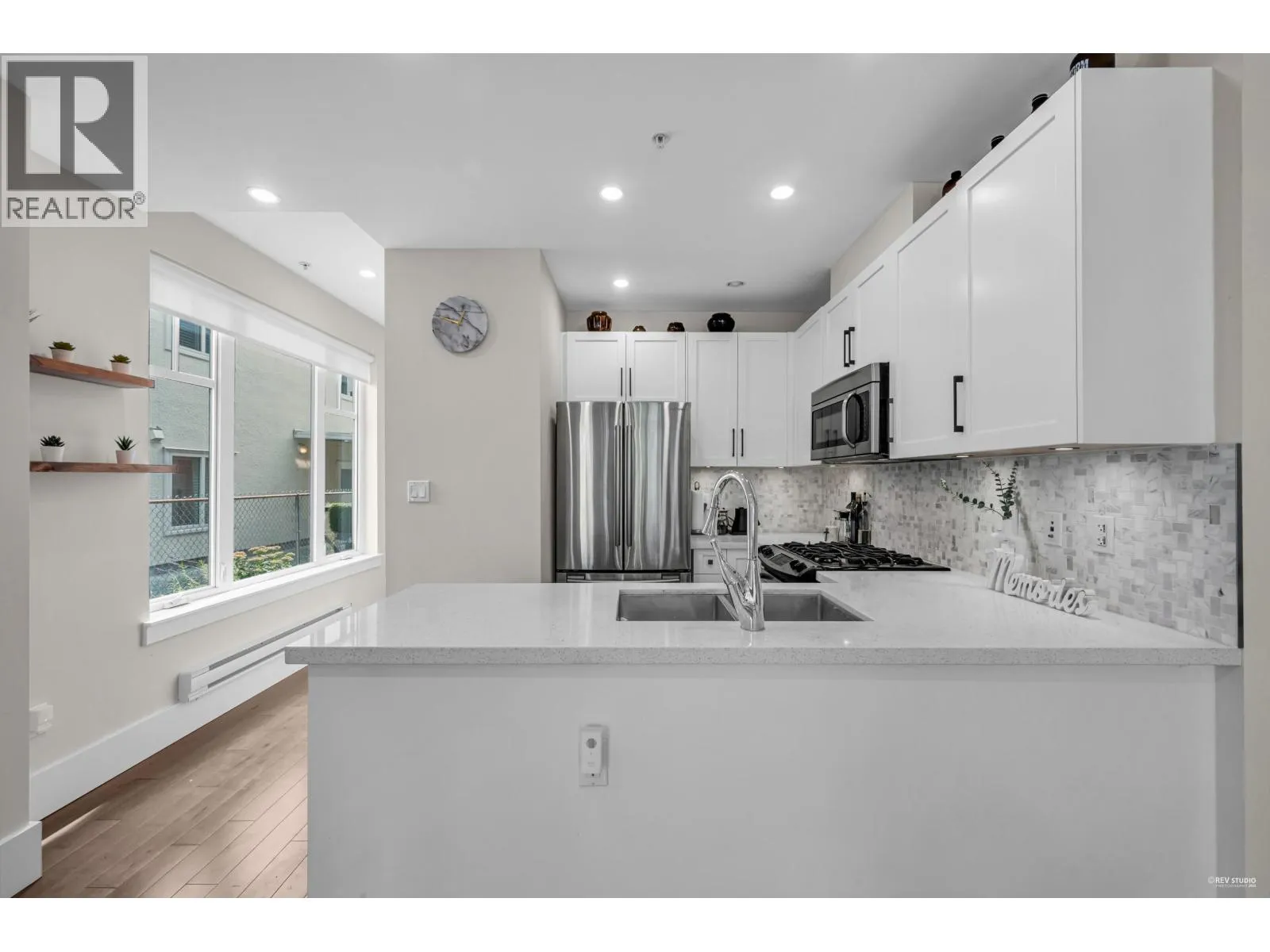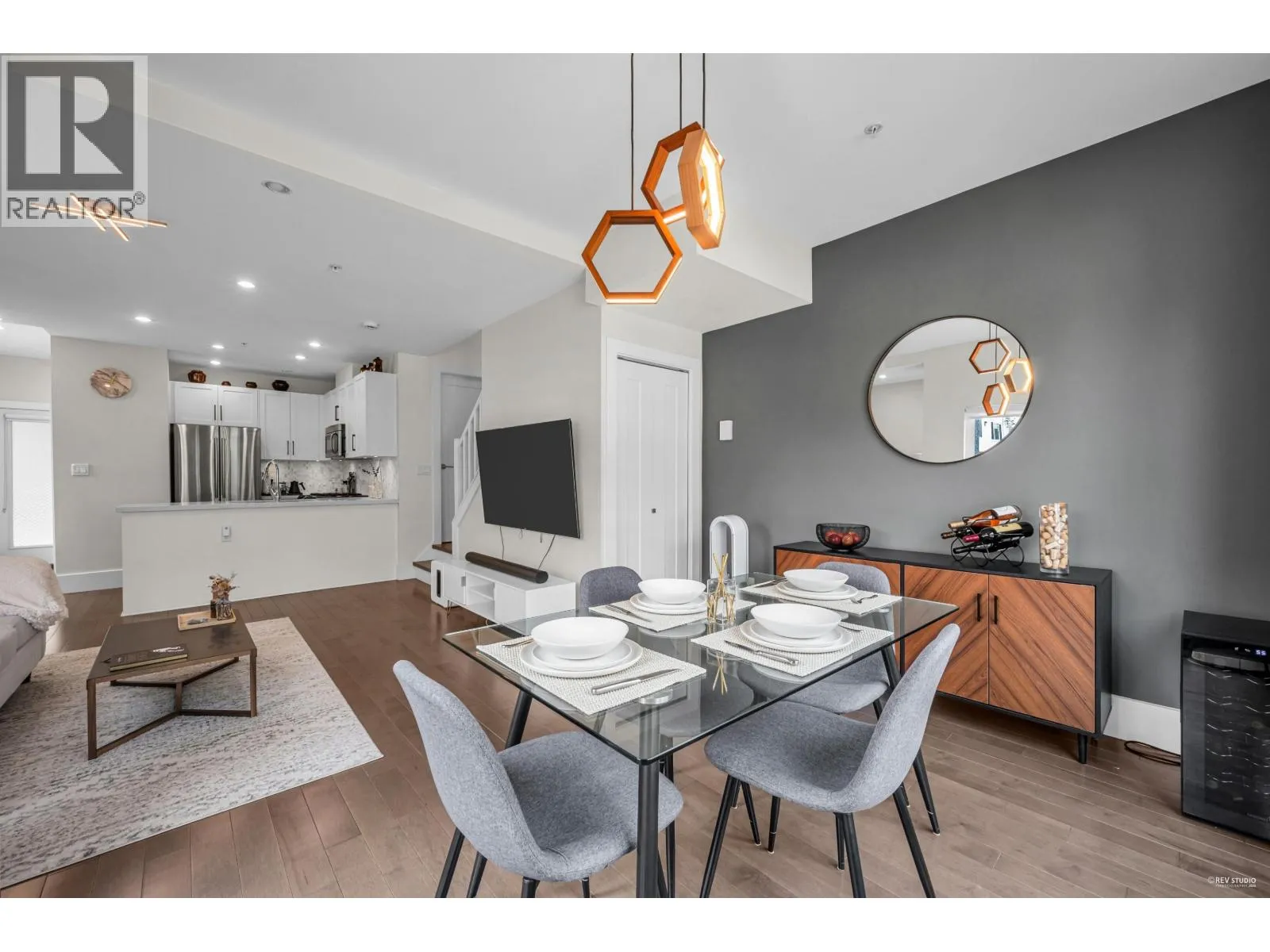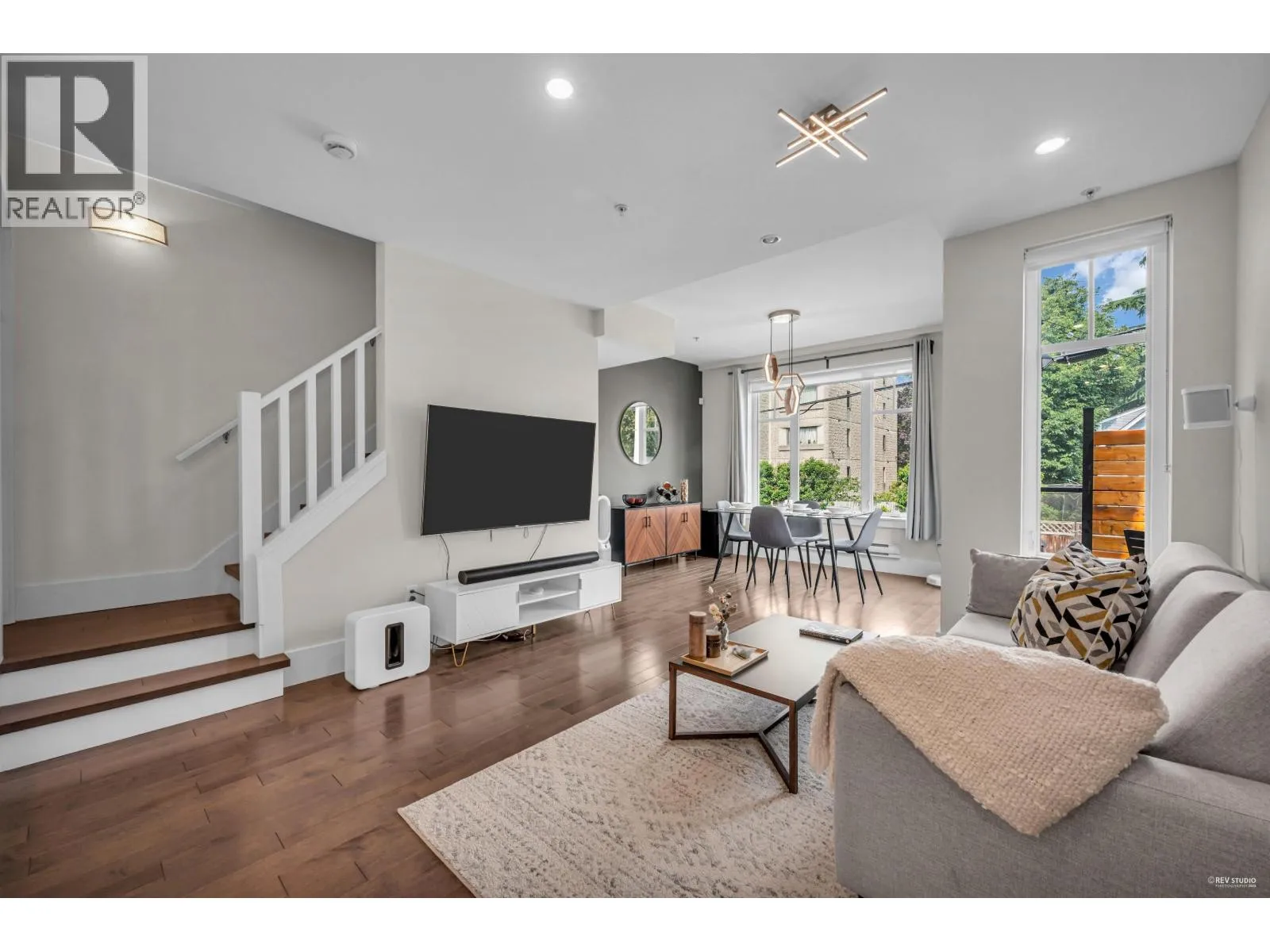 Stunning 3-Bed, 2.5-Bath Corner Townhome in Mount Pleasant! Beautifully designed 3-level corner unit offering 1,408 sf of modern living in one of Vancouver´s most desirable neighborhoods. The home features an open-concept main floor with 9´ ceilings, engineered hardwood flooring throughout, and large windows providing excellent natural light. The contemporary kitchen is equipped with custom cabinetry, quartz countertops, SS appliances, a gas stove, and plenty of storage. Enjoy the private patio on the main level, ideal for entertaining, & a view deck off the top-floor loft style bedroom. Prime location with a Walk Score of 94, steps to parks, shops, cafes, restaurants, and transit. Just a 5-minute drive Downtown. A must-see! Book your private showing. (id:27476)