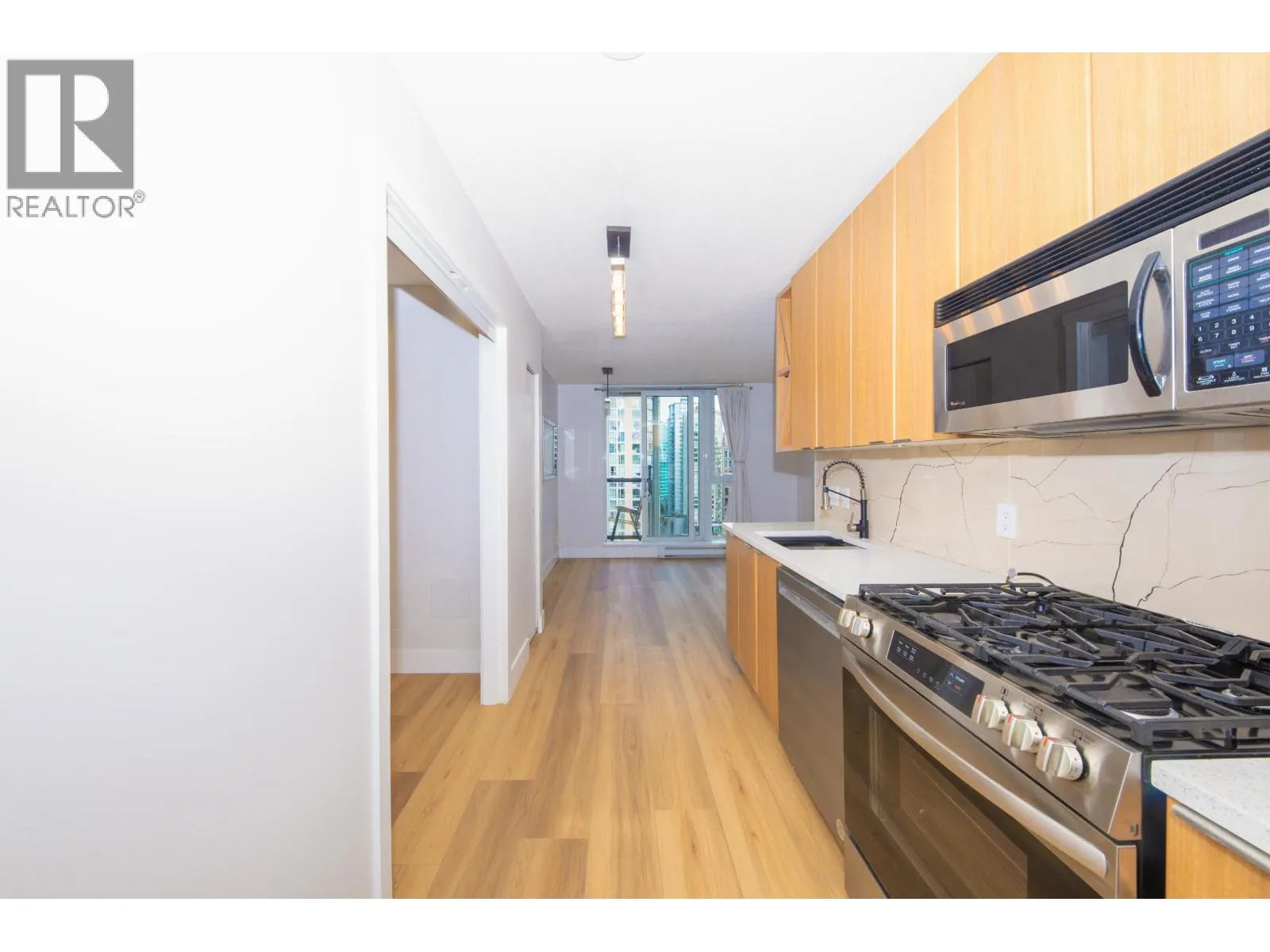 Welcome to this Amazing, Fully Renovated, One Bedroom & Den City Home in the Heart of Yaletown. The Gallery by Polygon!! Featuring an efficient, open layout for professional living. This bright suite offers a lovely city view. Modern design offering functional kitchen with granite counters, brand new stainless steel appliances & gas top cooking.Spacious living room opens onto balcony. Private bedroom w/ample closet space & open views of DT Vancouver. Building amenities include fully equipped gym. lounge, party room, billiards room, executive board room/meeting room, reading room, spa & courtyard. Centrally located and easy walk anywhere in DT. Don't miss on this great opportunity! (id:27476)