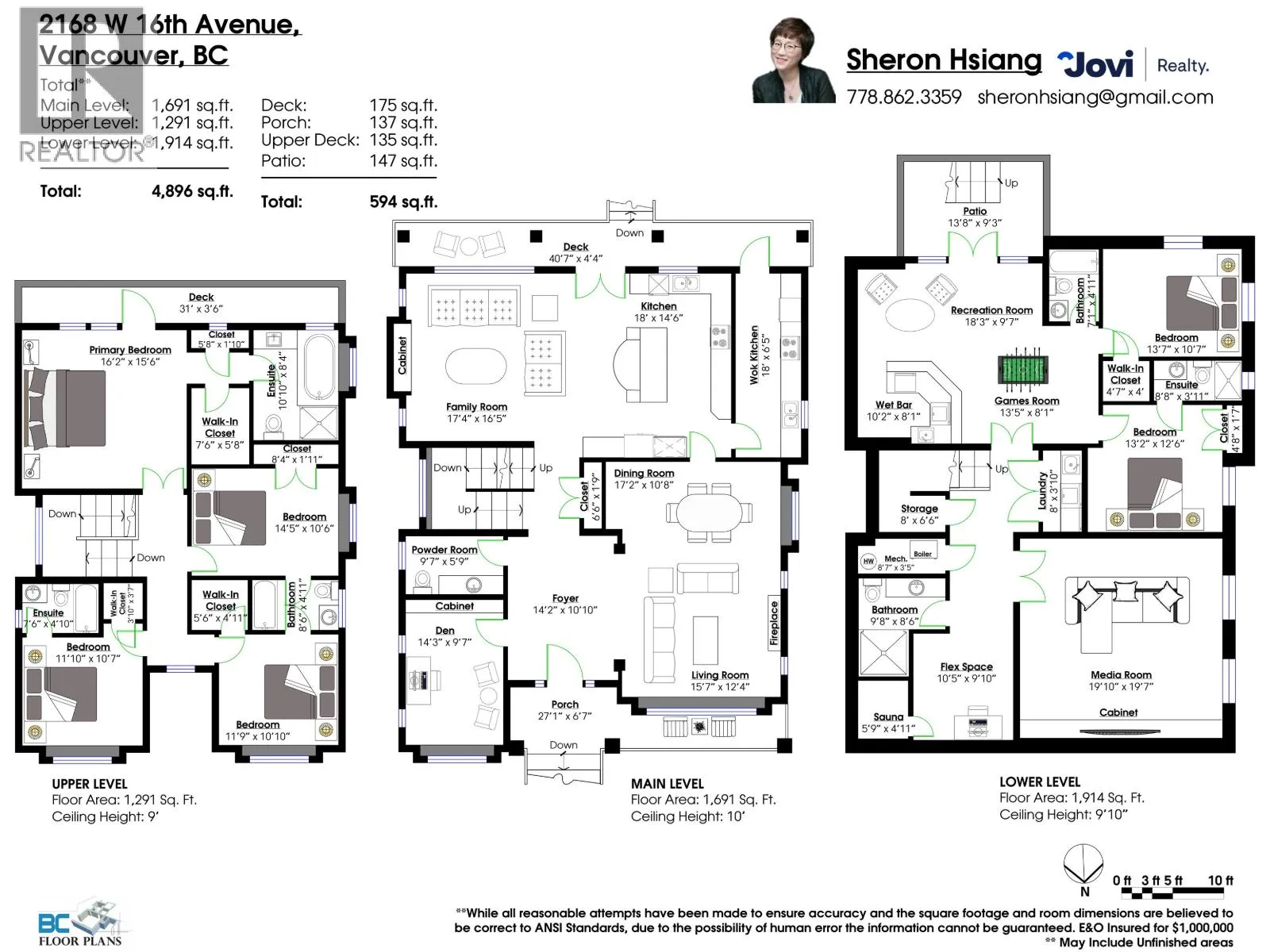Luxurious Custom Home with Mountain Views! Immaculately maintained 6-bedroom residence featuring soaring 10ft ceilings on both the main and basement levels. Designed with high-quality craftsmanship and exquisite finishes, this home offers a gourmet kitchen plus functional wok kitchen, both equipped with top-of-the-line appliances. Enjoy ultimate comfort with a steam room, jetted tub, A/C, HRV, home theatre, built-in sound system, wet bar, sauna and a 4-car garage. Perfectly located with quick access to shopping, transit, downtown Vancouver, UBC, and Richmond. Top school catchments: Trafalgar Elementary & Prince of Wales Secondary. Just minutes to prestigious private schools including York House, West Point Grey Academy, Crofton House, and St. George's. Book your private showing today! (id:27476)