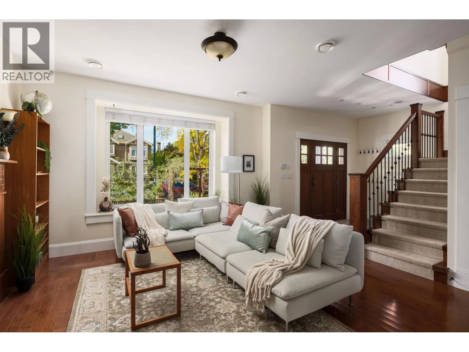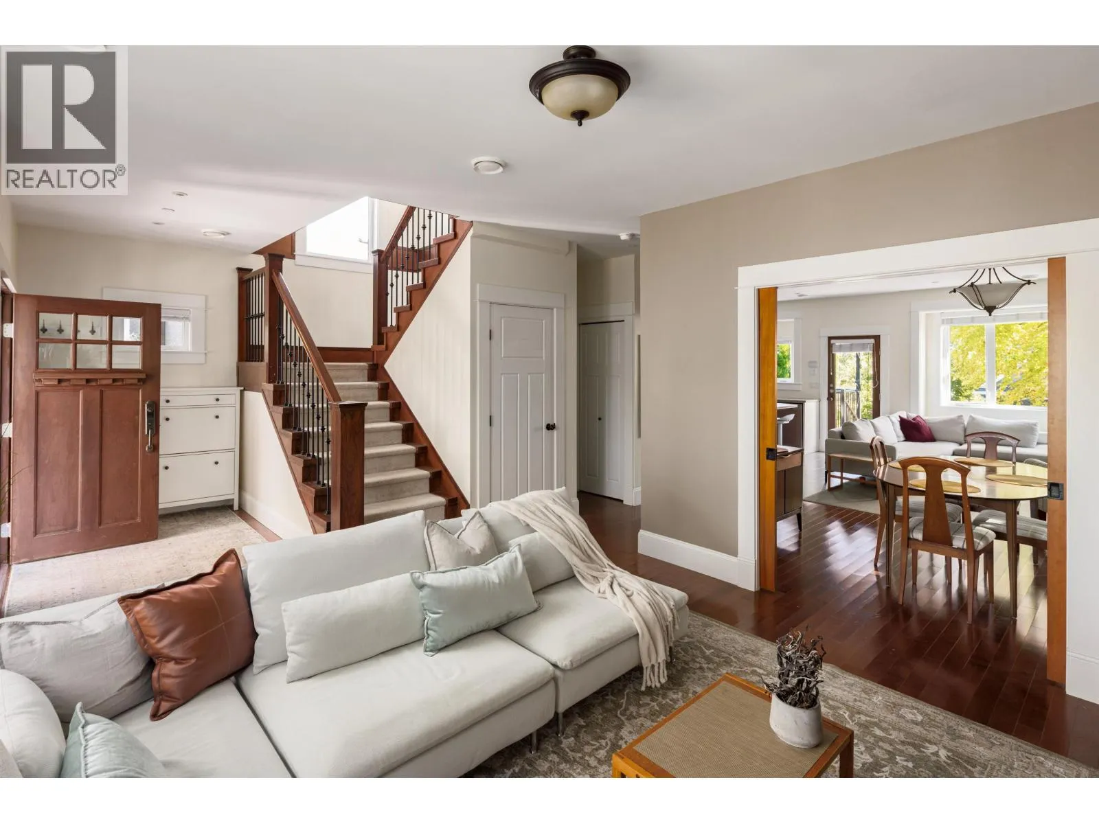 Welcome to this custom-built Craftsman-style home in the heart of Fraserhood, designed with families in mind. Built in 2010, the main floor features a formal living room with gas fireplace and pocket doors that open to a spacious dining area, family room, and kitchen. Enjoy beautiful wood detailing, natural light from abundant windows, and year-round comfort with A/C. Upstairs offers 3 generous bedrooms including a primary with walk-in closet and luxurious ensuite. Skylights brighten both baths. The basement includes a 2 bed legal suite with flexible layout. Outdoor living shines with a west-facing front yard, back deck, and lush yard. Steps to Grays Park. McBride and Tupper catchment. (id:27476)