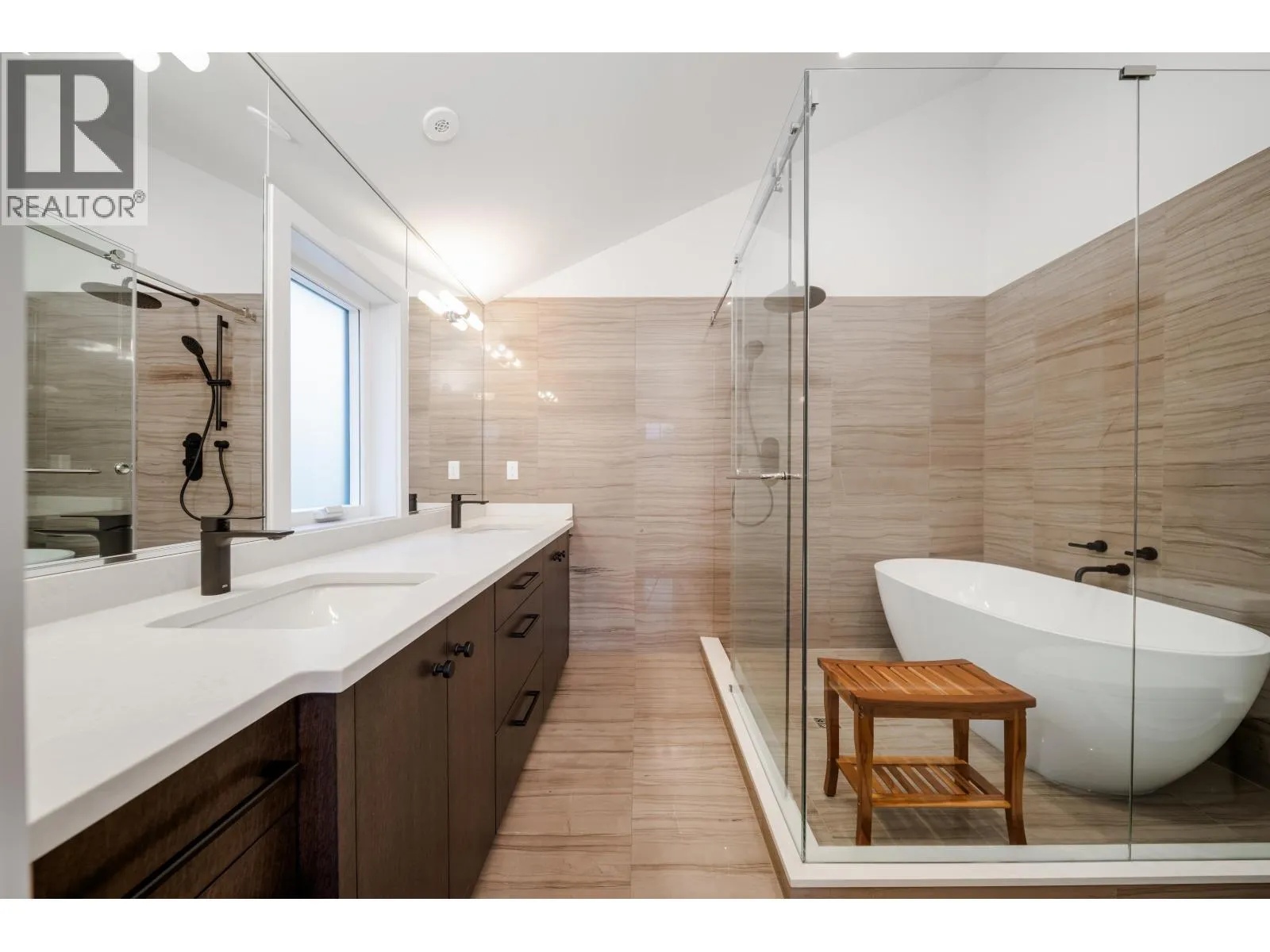South-facing NEW luxurious 1/2 Duplex in Kensington/Cedar Cottage feels like a single-family home! Long-time local builder with top workmanship. Cedar shake siding, stone entry & hi-end finishes. Modern entertaining kitchen with upscale Fisher & Paykel appls & eng oak hardwood. Open living rm with gas FP & adjacent "Home Office" area. Skylit stairs lead to primary & 2nd bdrms, both with vaulted ceilings & ensuites. AC/heat pump. Private yard. 1-car garage with storage. Expansive, bright crawlspace for all storage needs. Within 10-min walk to cafés, restaurants, groceries, & schools. 2-5-10 warranty. Unit 1136 also avail. Virtually staged. Monthly maint costs much lower than similar condo/townhome due to energy efficiency-energy rating ~1/3 lower. (id:27476)