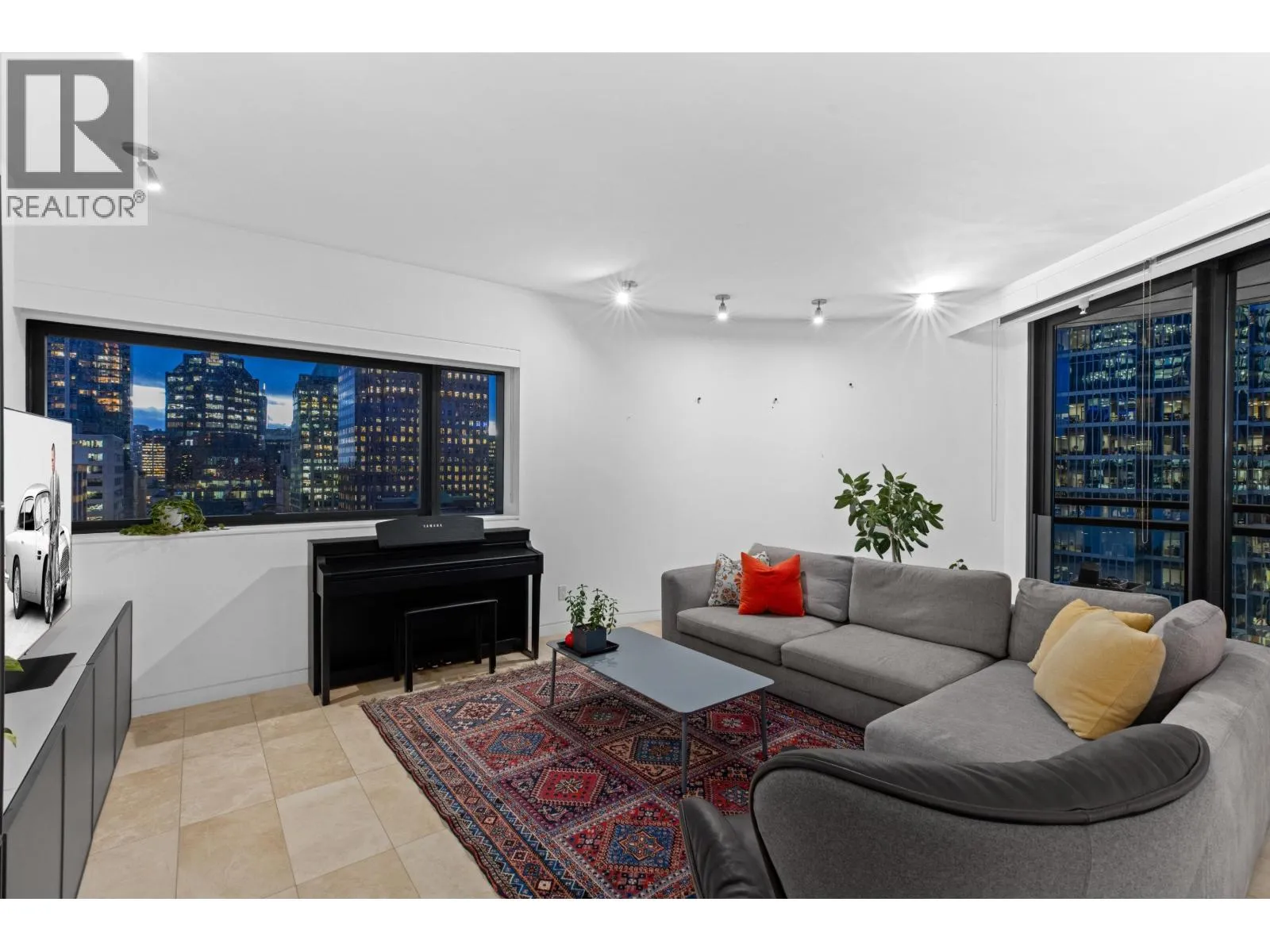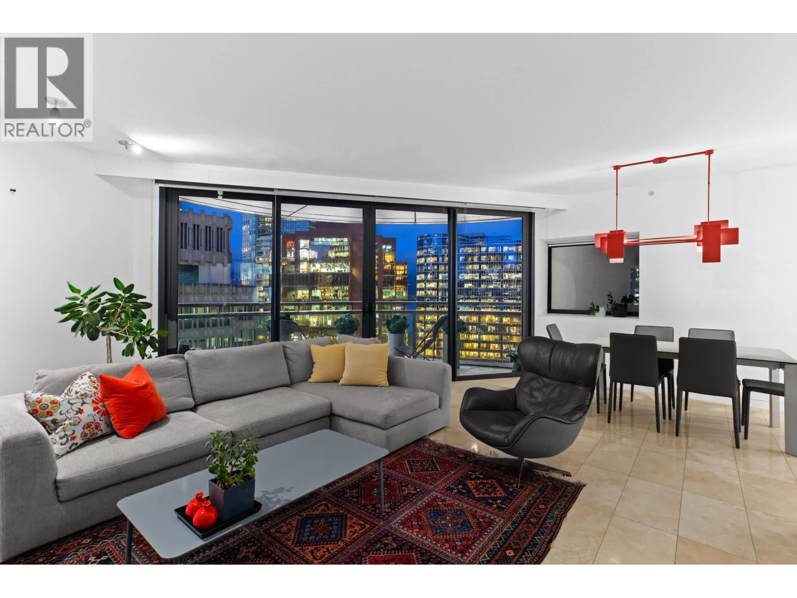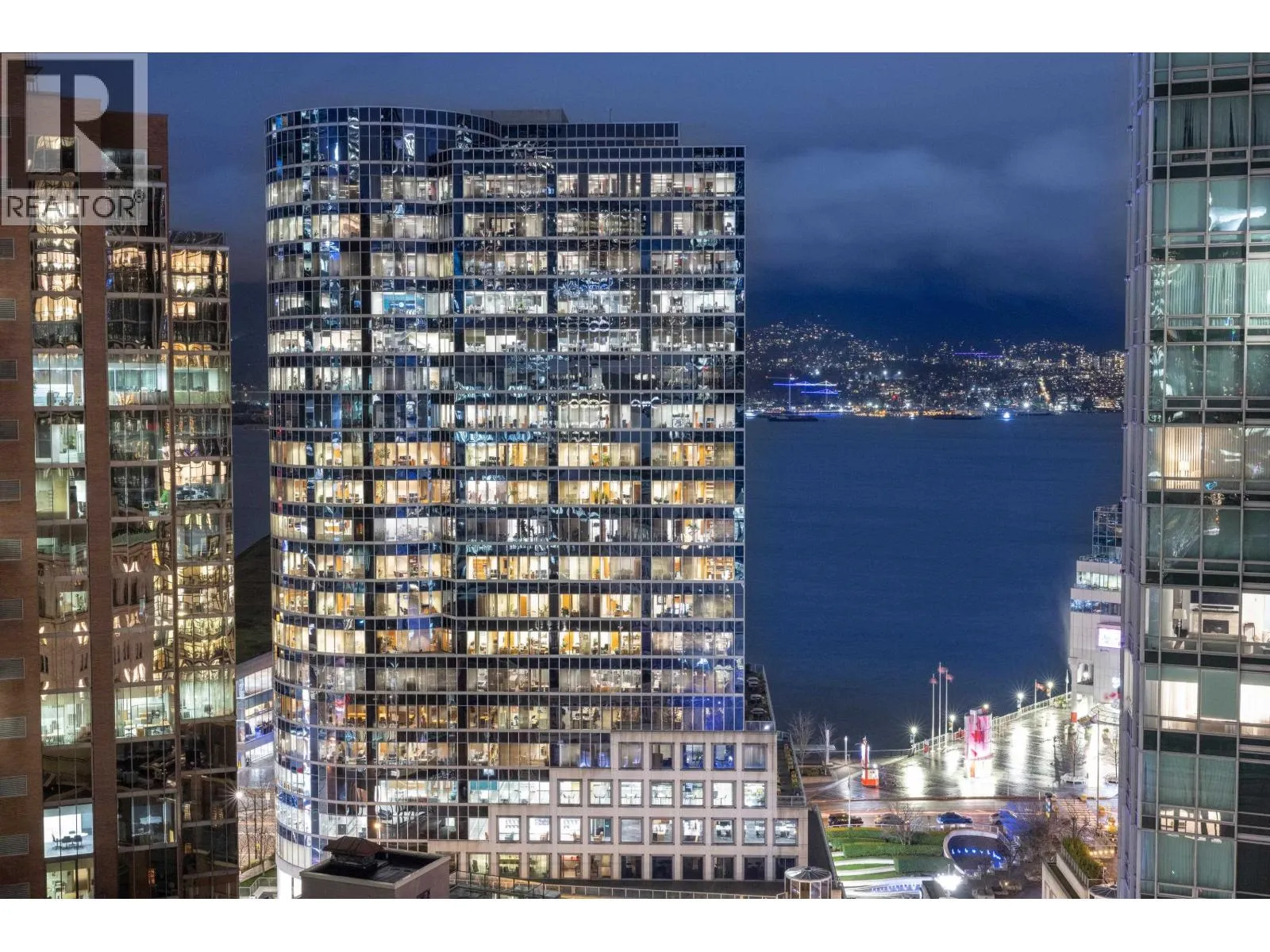 Experience modern luxury and tasteful elegance at the Jameson House, an iconic concrete high-rise designed by award-winning Foster & Partners. This BOSA-built 1,027+ sqft 2 bed, 1.5 bath unit boasts over-height 9ft ceilings, city/water views, and a large 86 sqft balcony for the perfect inside/outside living space. High-end finishes throughout, including Italian kitchen cabinets & appliances by Gaggenau & Sub Zero. The open-concept layout is perfect for entertaining, and 24-hour concierge service and automated valet parking ensure both safety and convenience. Situated in the highly sought-after Coal Harbour financial district, this unit offers a unique combination of style, location, and functionality. Don't miss out to make this stunning unit your new home. Book your private showing today (id:27476)