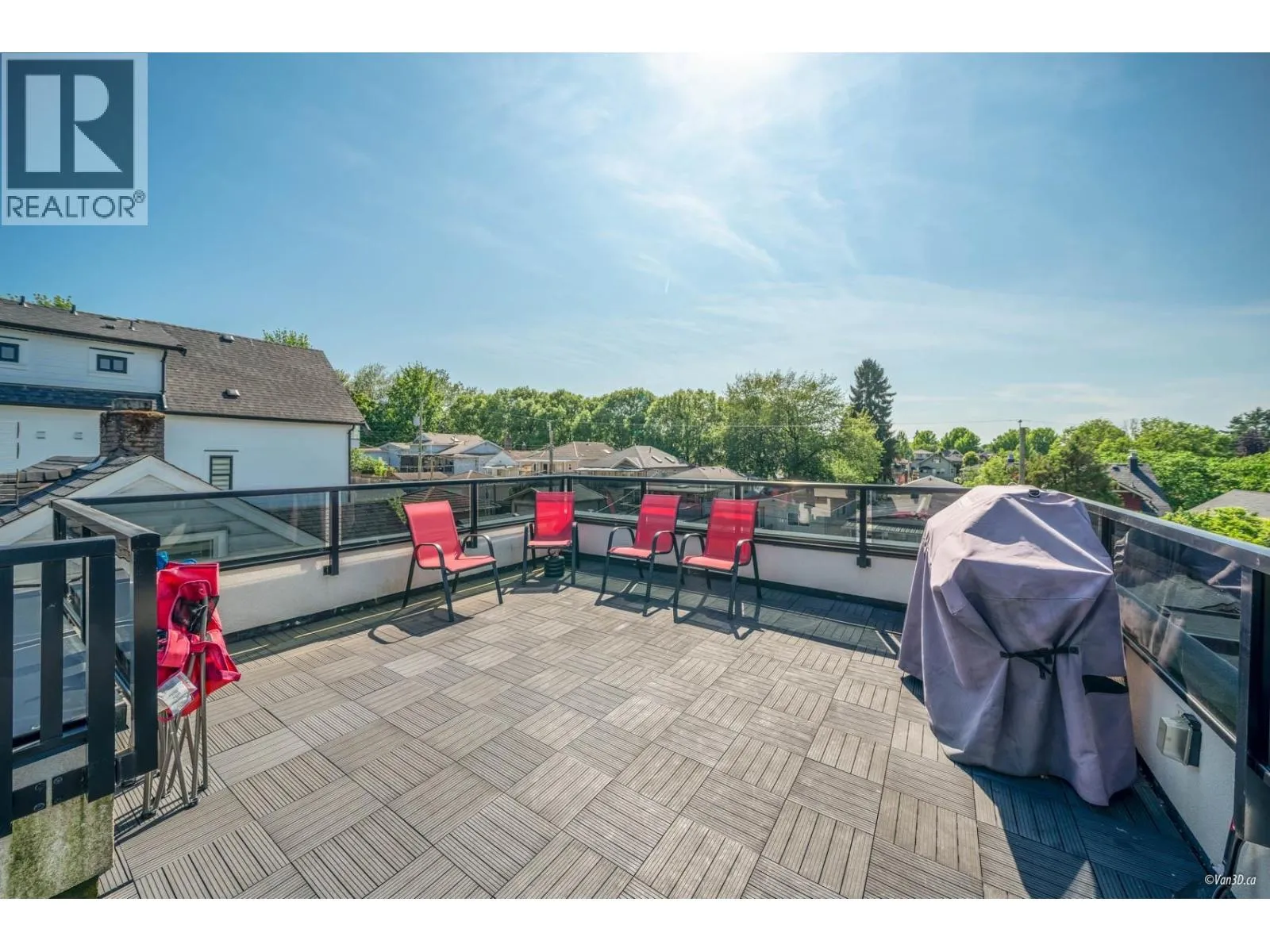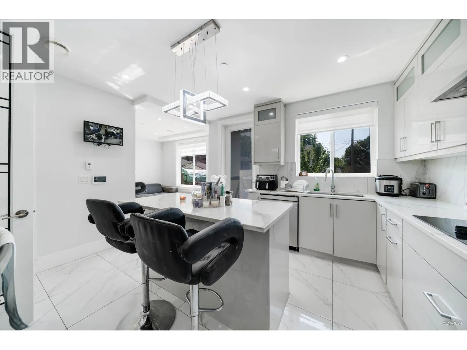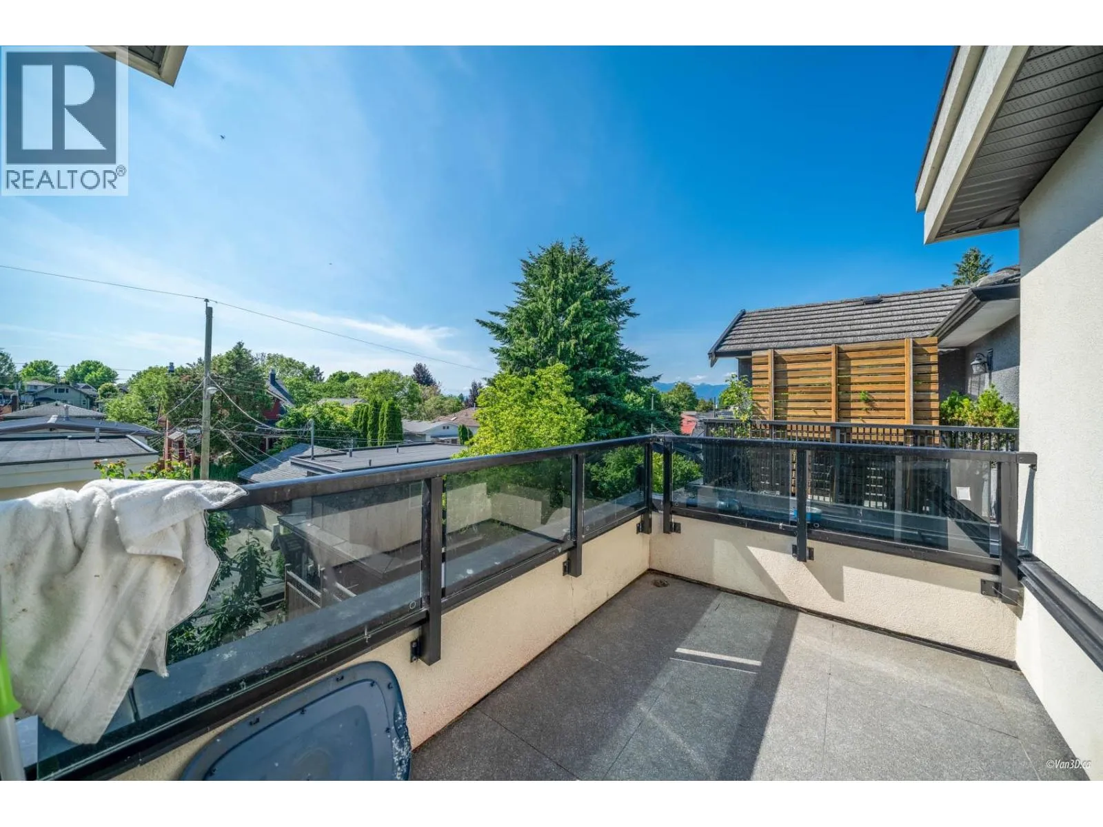 Custom-built 3-level family home with a fully finished 3-bedroom basement suite and laneway house in the desirable Knight and East 33rd area. Features a bright, open-concept main floor layout with a bedroom ideal for extended family or a home office. Designer kitchen with island and stainless steel appliances, oversized tile flooring, and stylish glass railings. The top floor boasts 3 bedrooms and a breathtaking private rooftop deck with mountain views. The primary bedroom includes a spacious walk-in closet and an ensuite with double sinks and a rain shower. Separate laundry in each suite. Two sump pumps for added peace of mind. Conveniently located near Kensington Park and Community Centre, T&T Supermarket, and transit. (id:27476)