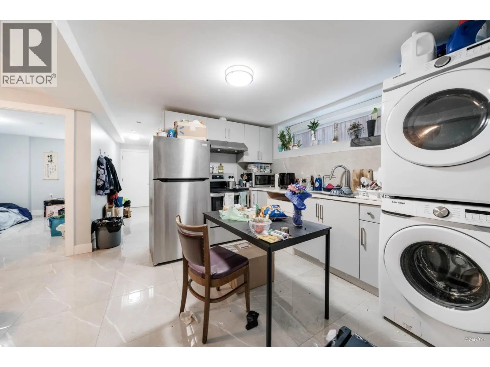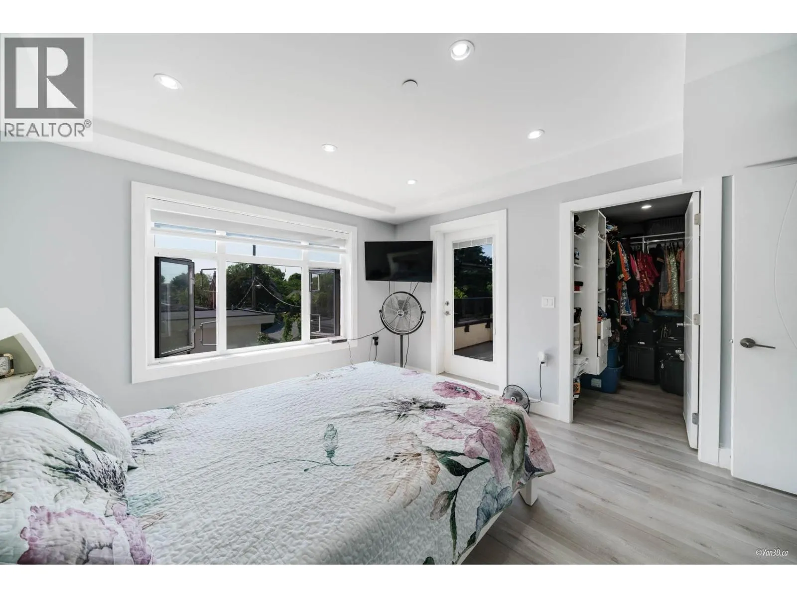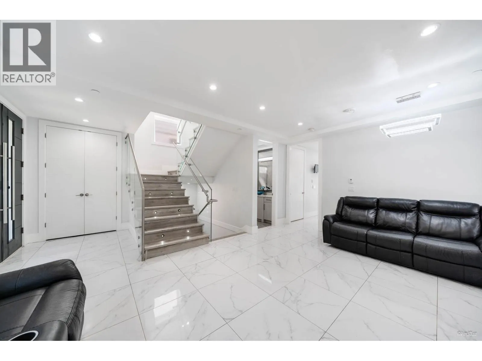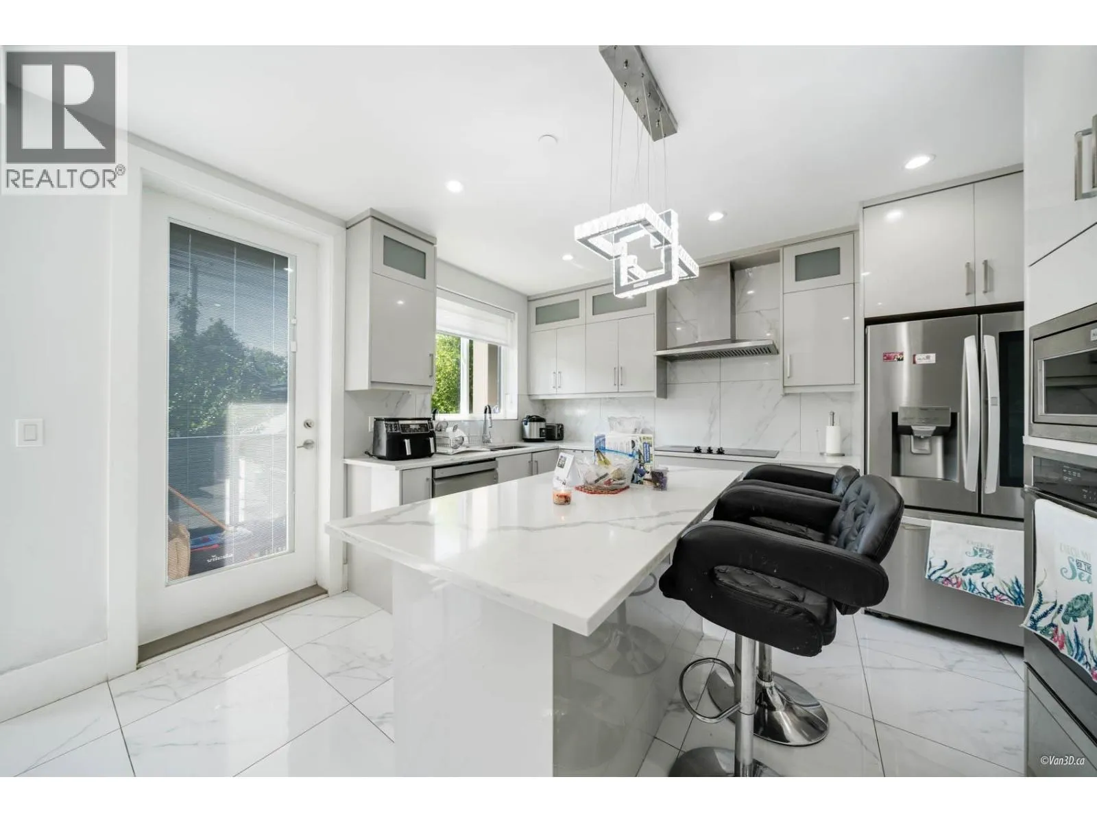 Custom-built 3-level family home with a fully finished 3-bedroom basement suite and laneway house in the desirable Knight and East 33rd area. Features a bright, open-concept main floor layout with a bedroom ideal for extended family or a home office. Designer kitchen with island and stainless steel appliances, oversized tile flooring, and stylish glass railings. The top floor boasts 3 bedrooms and a breathtaking private rooftop deck with mountain views. The primary bedroom includes a spacious walk-in closet and an ensuite with double sinks and a rain shower. Separate laundry in each suite. Two sump pumps for added peace of mind. Conveniently located near Kensington Park and Community Centre, T&T Supermarket, and transit. (id:27476)