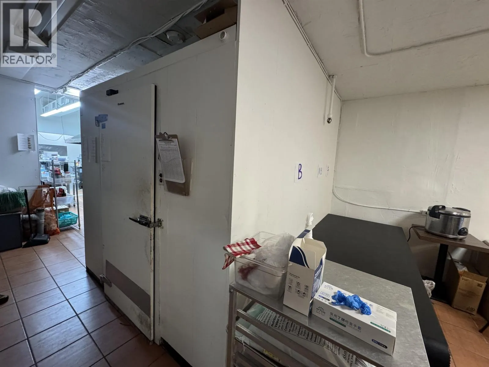 Seize this rare opportunity to operate a turnkey central kitchen facility strategically located on the border of Richmond and Vancouver West, ensuring rapid distribution for high-volume ghost kitchens, catering, or food manufacturing operations. This fully permitted production powerhouse features a massive 20ft ventilation hood system, a large walk-in cooler, and a functional layout comprised of a 986 sf main floor plus 200 sf of bonus storage. The interior is equipped with a dish pit, grease trap, extensive stainless prep areas, and a separate office for admin or dispatch needs. A true logistics dream, the unit includes 6 designated parking spots'a rare find for delivery fleets'plus the added advantage of ample free street parking nearby for staff and visitors. This highly functional space is available on a secure 5-year lease with a 5-year renewal option. Please do not disturb staff. Showings by appointment only. (id:27476)