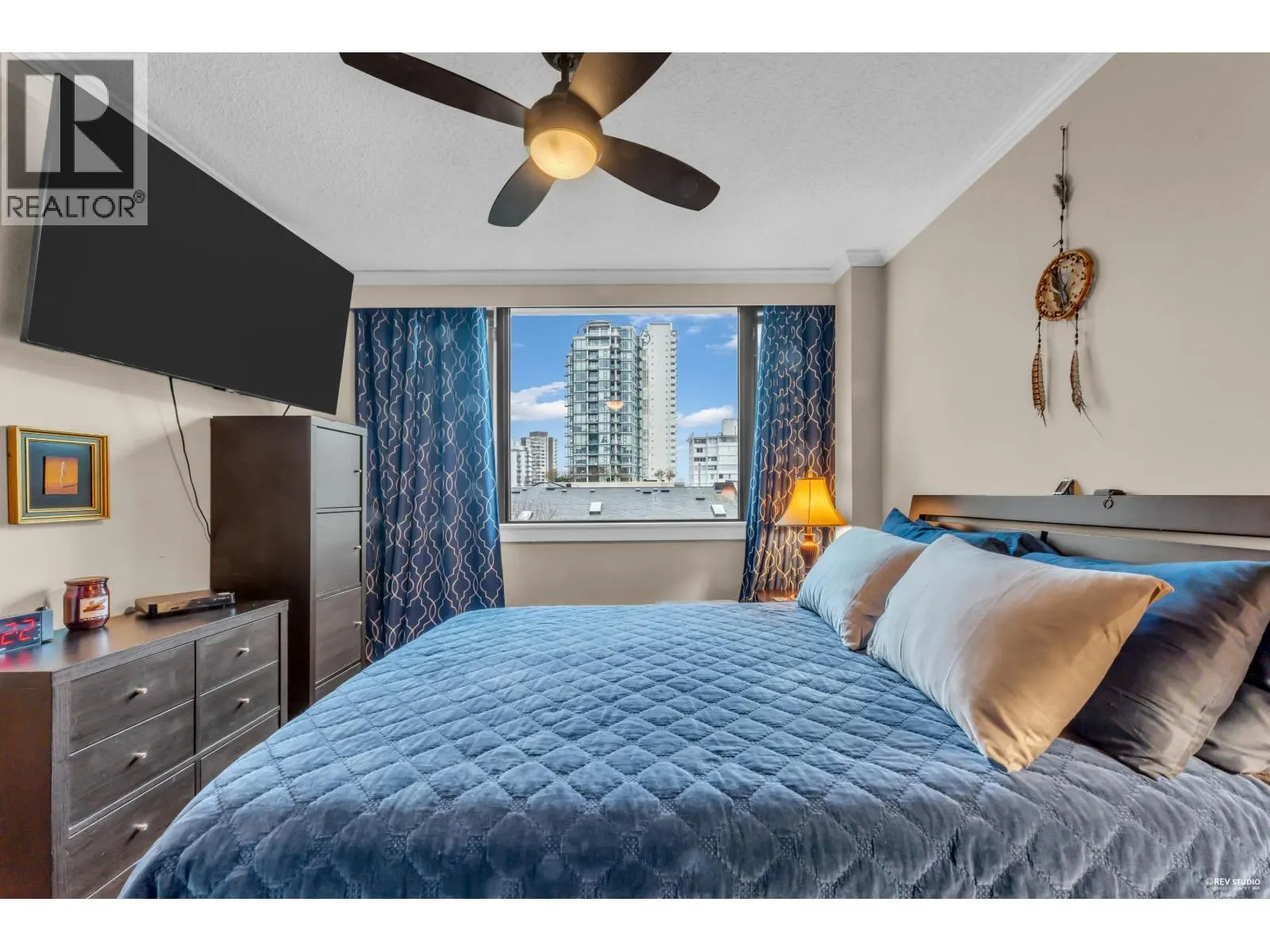 BRIGHT AND BEAUTIFUL. Welcome to this 1 bedroom, 1 bathroom, 702 sqft South East corner suite at Stratford Place. This meticulously maintained building at English Bay is steps from the beach, Stanley Park, restaurants, cafes, shops and a short walk to the Downtown business district. Recent building upgrades include an envelope upgrade, new windows, elevators, boiler, plumbing, and recently approved garage remediation - PAID for by the Seller. Amenities include outdoor pool, indoor sauna, storage locker, secure parking, 2 EV chargers, secure bike storage. Rentals (no Airbnb) allowed. Pets allowed (1 dog or 2 cats) (id:27476)
