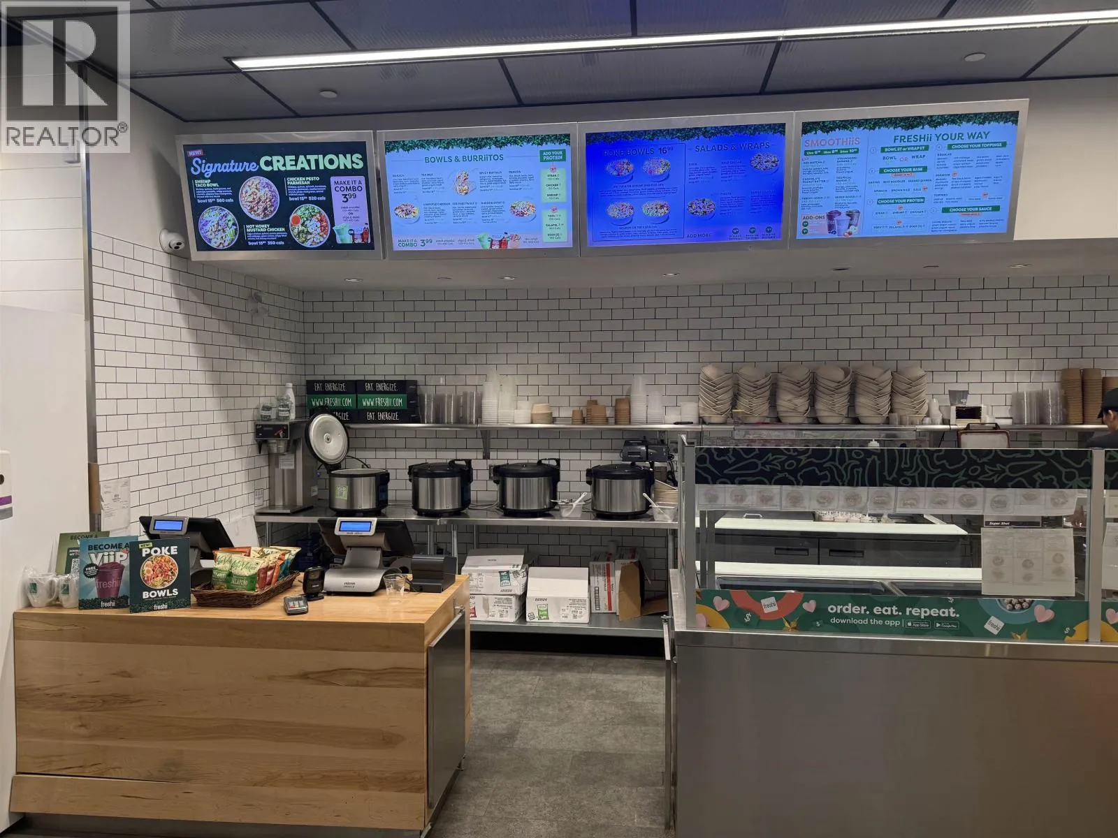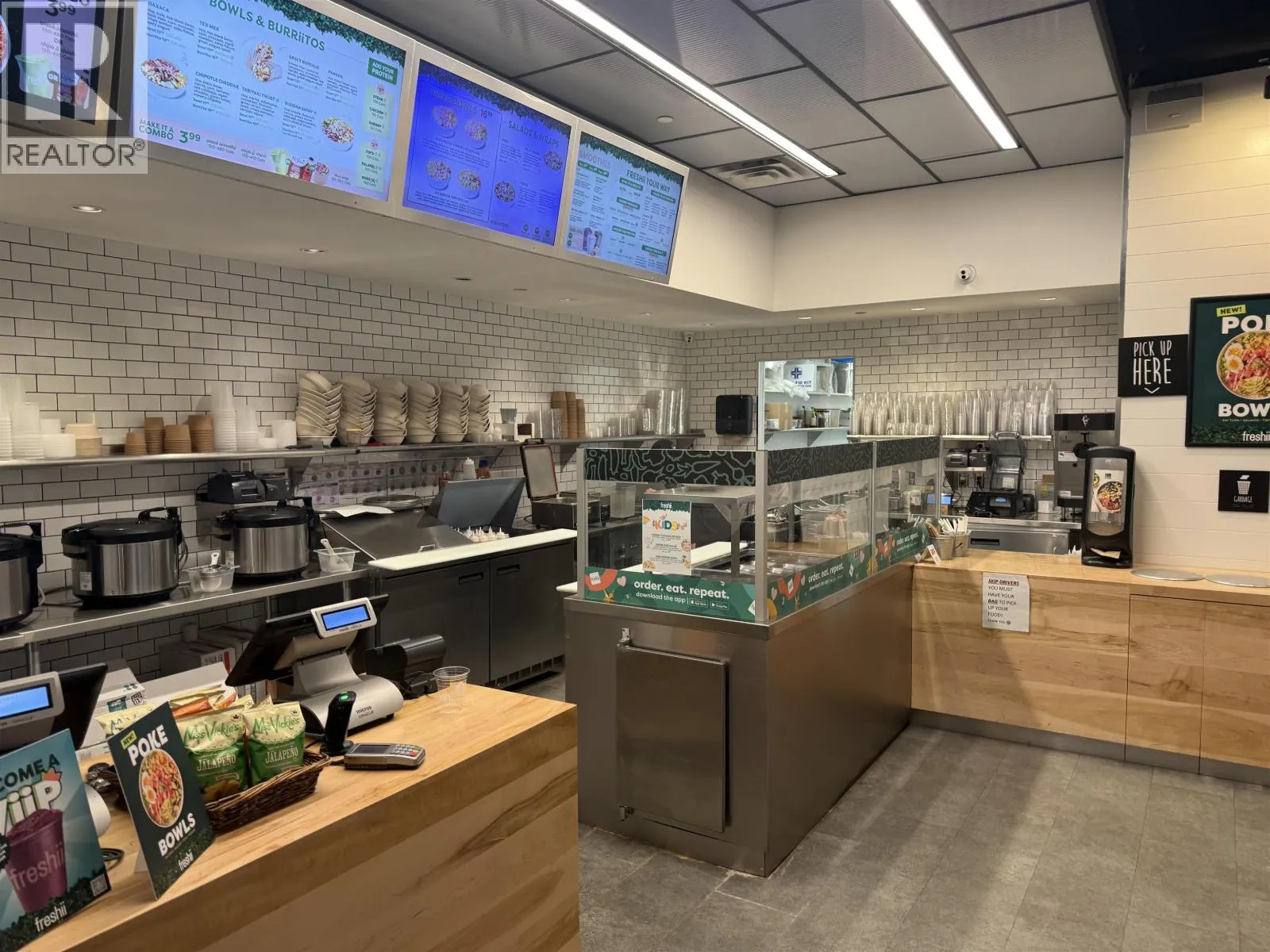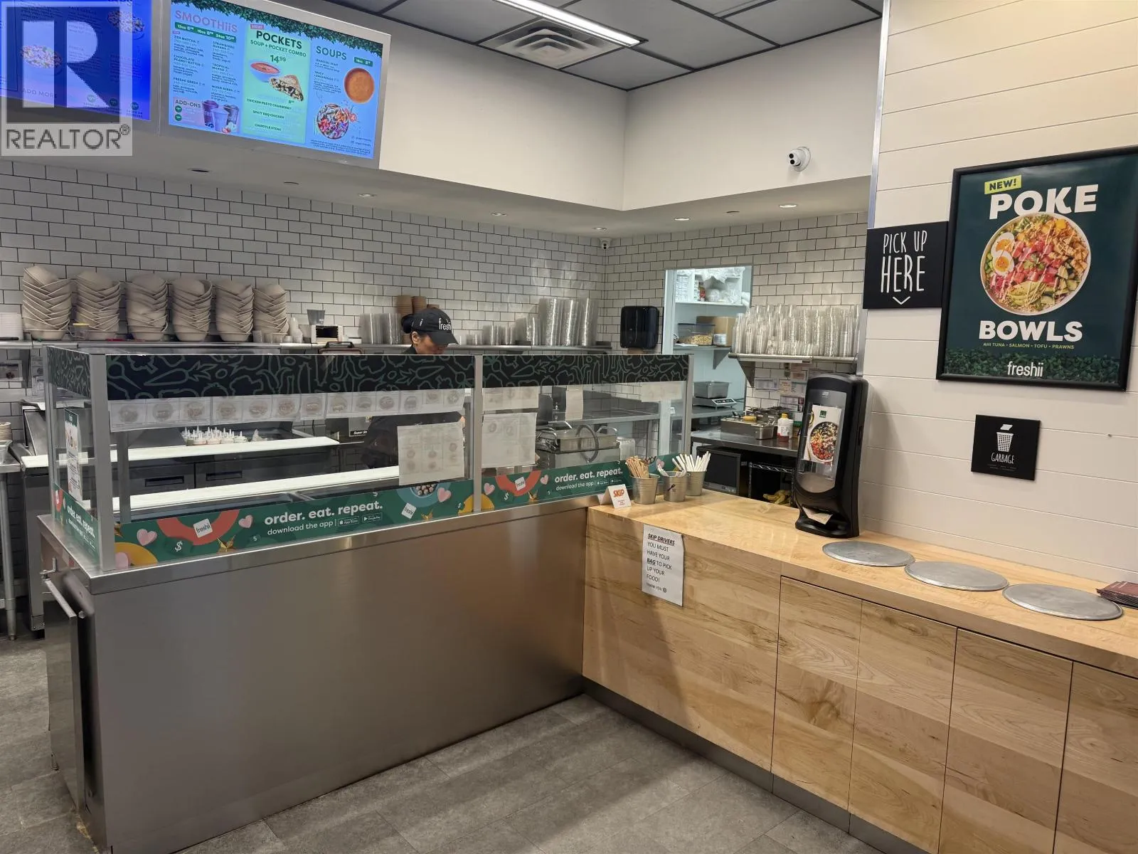 Freshii franchise opportunity in the heart of Vancouver's busy Broadway & Granville corridor. Modern 1,400 sq. ft. quick-service restaurant in a prime high-traffic business area, surrounded by offices, retail, and dense residential. Excellent upside with a newly completed 30+ storey mixed-use tower nearby and less than a block from the new main skytrain hub on Granville and Broadway, driving strong future foot traffic. Concept can be easily switched to another Foodtastic brand as well (see photos and link) Attractive gross rent of $6,600 per month, including additional rent, taxes, and utilities, plus one on-site parking stall. Ideal for an owner-operator or multi-unit operator seeking a proven, health-focused national brand in a blue-chip location. Please note that both landlord and franchisor approval of a potential purchaser will be required. Do NOT approach directly. Contact The Business Broker to arrange a private showing. (id:27476)
