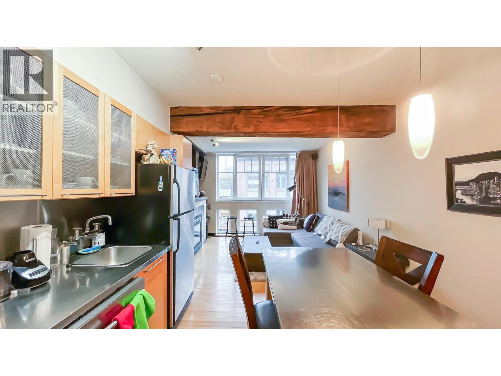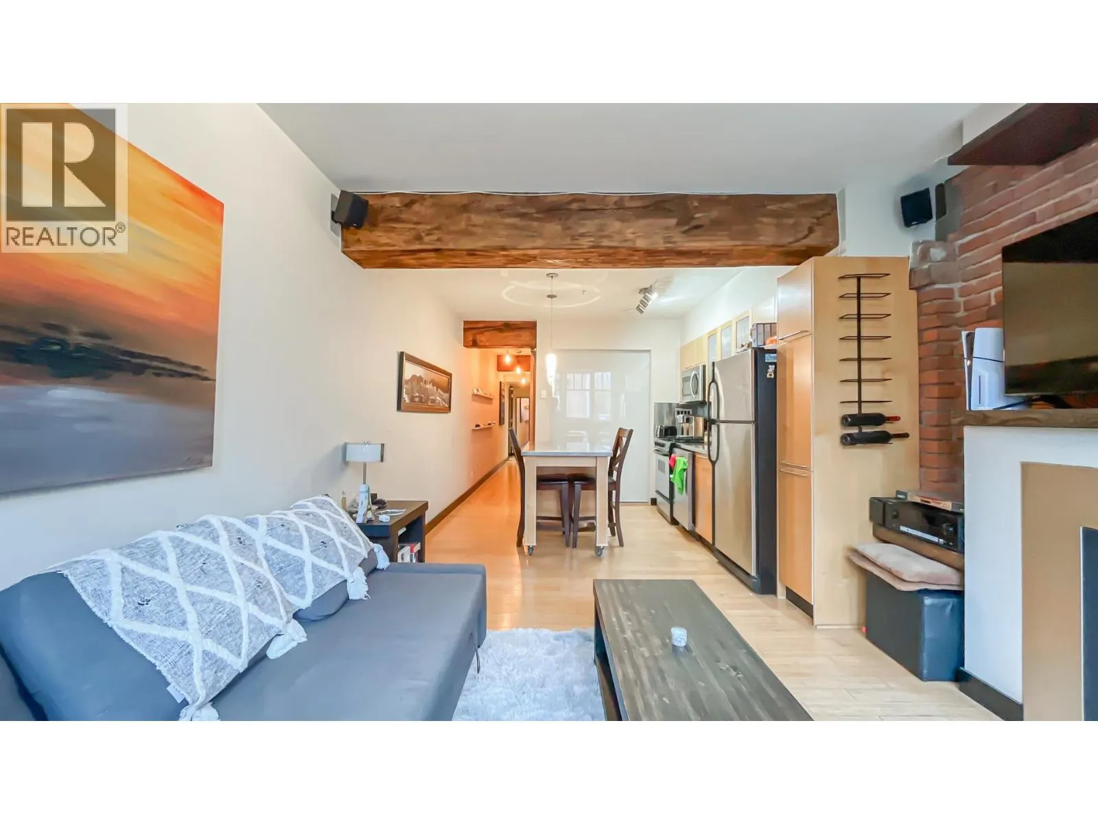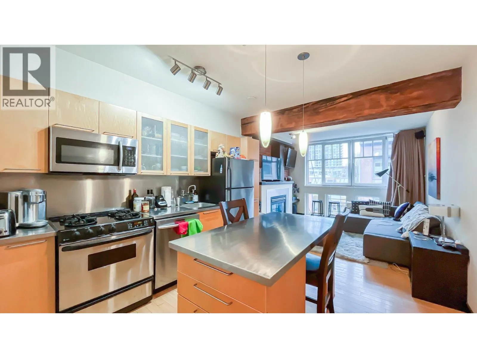 Experience urban sophistication in this incredible heritage conversion loft at the iconic Crandall Building in the heart of Yaletown. This bright, south-facing home blends historic charm with modern design, featuring exposed brick, old-growth timber beams, bamboo flooring, maple cabinetry, and brushed stainless steel appliances. Enjoy over-height ceilings, European tilt-and-turn windows, a gas fireplace, and custom built-ins. Steps from Vancouver´s finest restaurants, bars, cafés, the seawall, and rapid transit, this stylish residence offers the ultimate pied-à -terre or investment property. Pets and rentals allowed, with a storage locker conveniently located on the same floor. (id:27476)