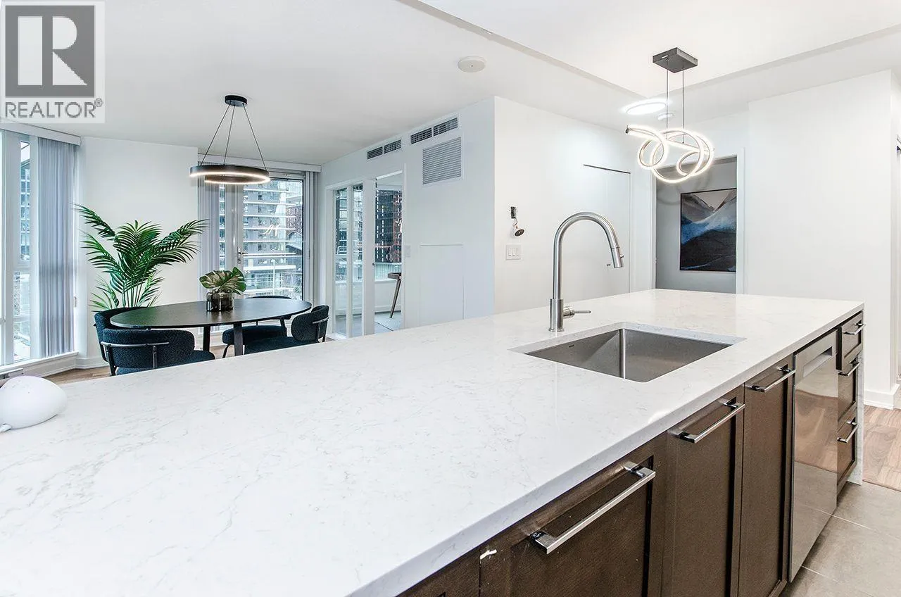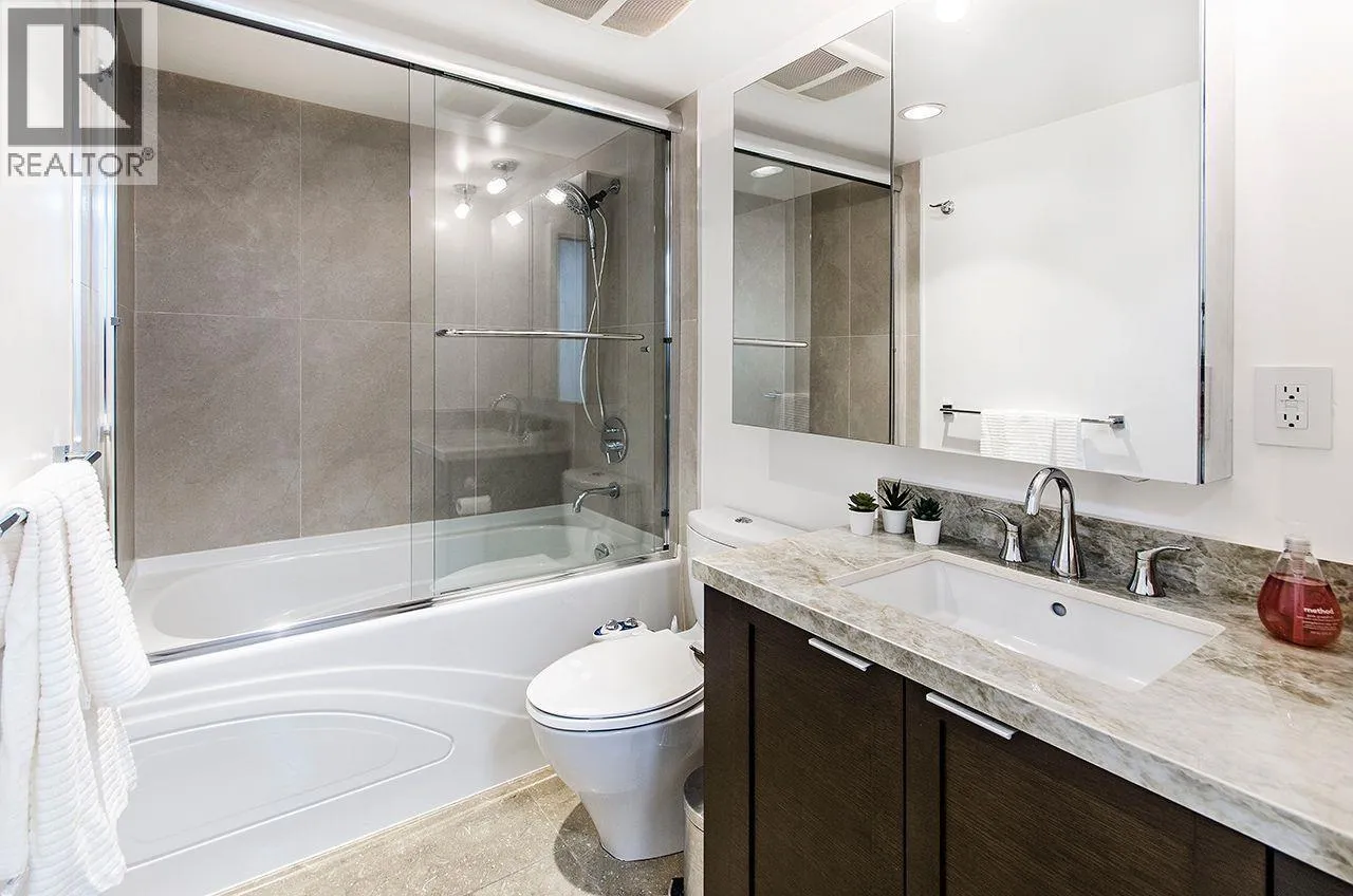 Immerse yourself in the vibrant lifestyle of Vancouver with this furnished 885 square foot condo, perfectly combining elegance and comfort. This one-bedroom, one-bathroom residence offers a spacious and well-designed living environment, ideal for those seeking a sophisticated urban retreat. The condo features an open layout that maximizes space and light, complemented by air conditioning to ensure year-round comfort. The living area includes a flat screen TV, providing a cozy setting for relaxation and entertainment, while hardwood flooring adds a touch of warmth and sophistication. (id:27476)