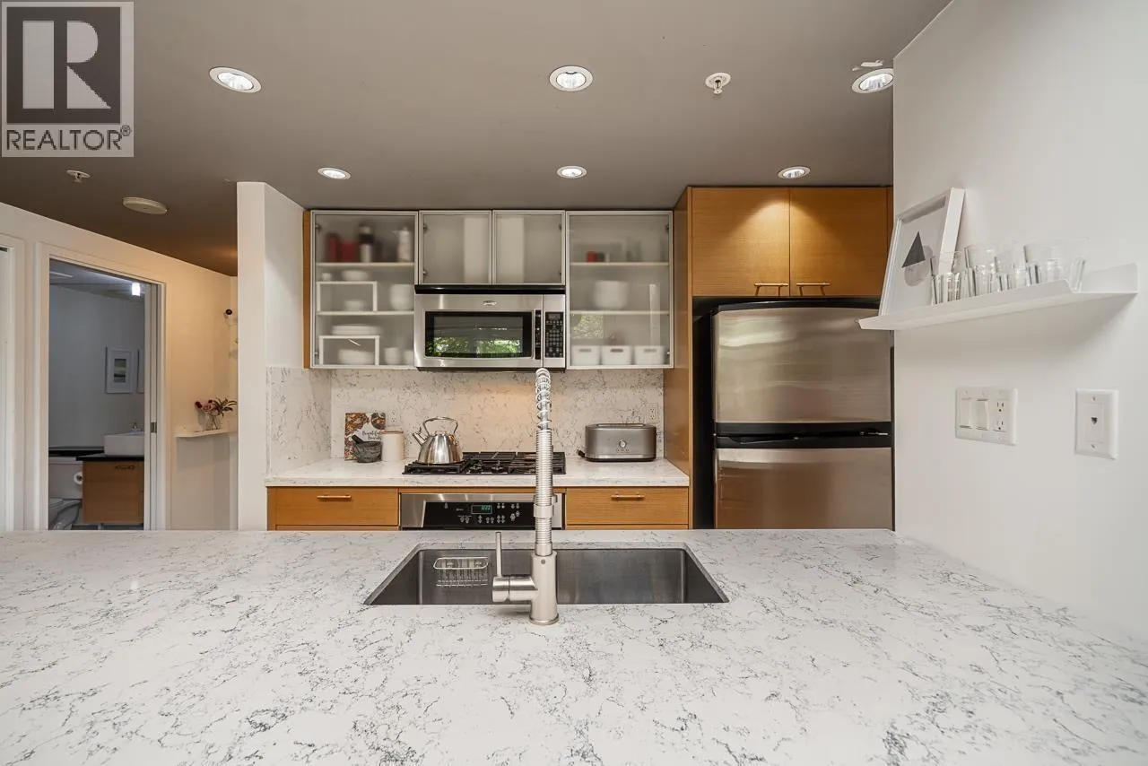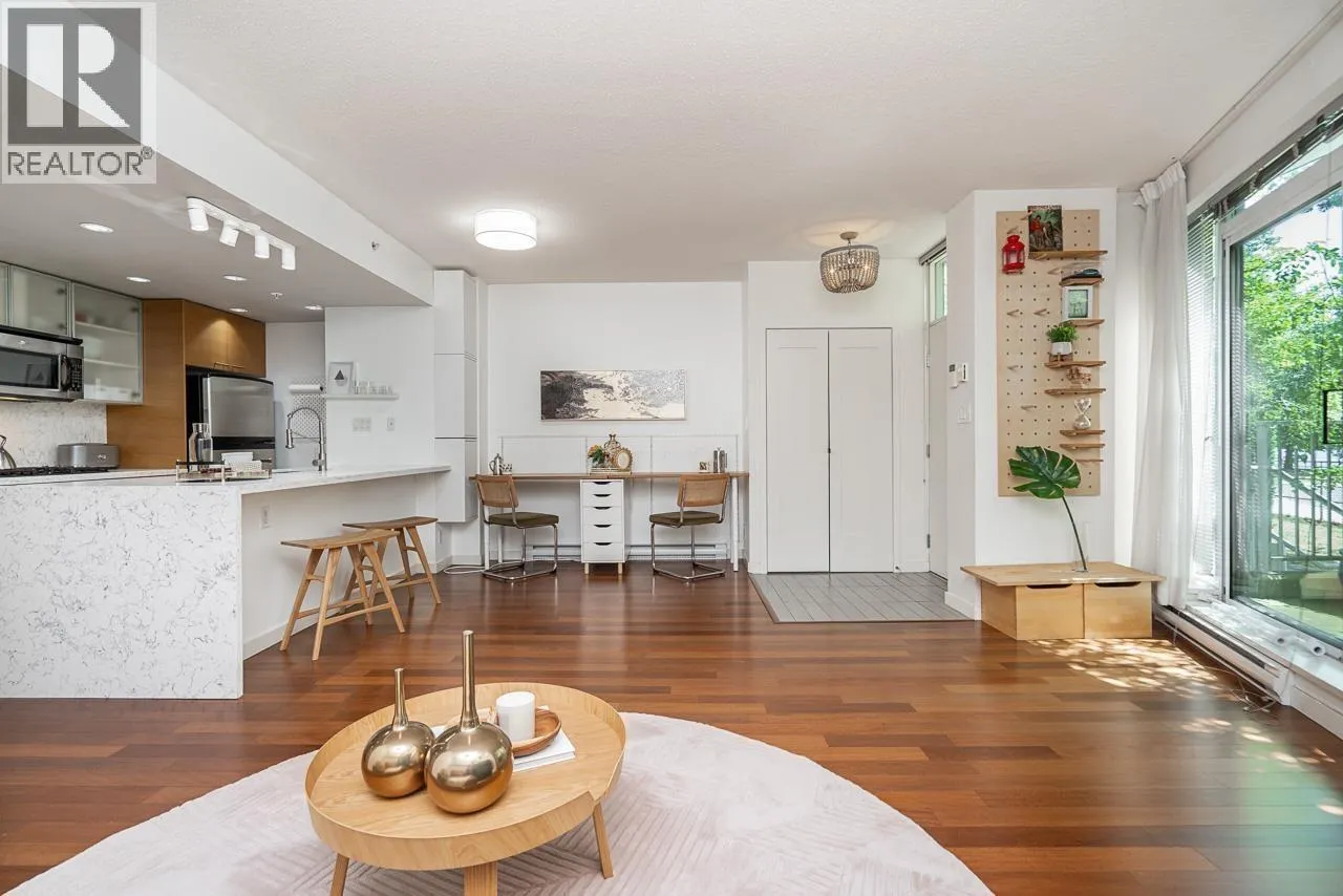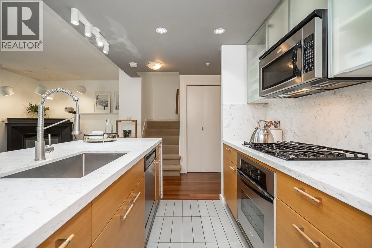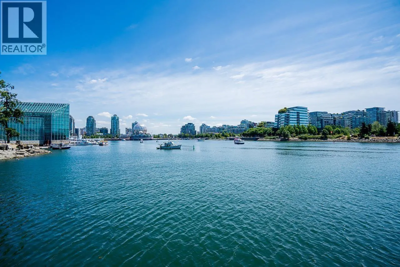 Welcome to this rarely available waterfront townhouse built by Concord Pacific in the prestigious Coopers Pointe community-offering an exceptional blend of luxury, privacy, and vibrant waterfront living. This spacious 2-bedroom, 2.5-bath residence features an entrance facing the water, allowing seamless indoor-outdoor flow. Located directly across from Coopers Park, with False Creek, Science World, and the seawall just steps away. Enjoy relaxing or entertaining on your 105 sq. ft. private patio surrounded by lush greenery. Interior highlights include a gourmet kitchen with granite countertops, breakfast bar, gas cooktop, and stainless-steel appliances. 2 parkings (#108 & #109) and storage locker (#19). Open house, Sunday, December 14 from 2-4 pm. (id:27476)