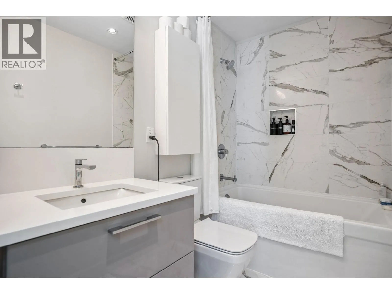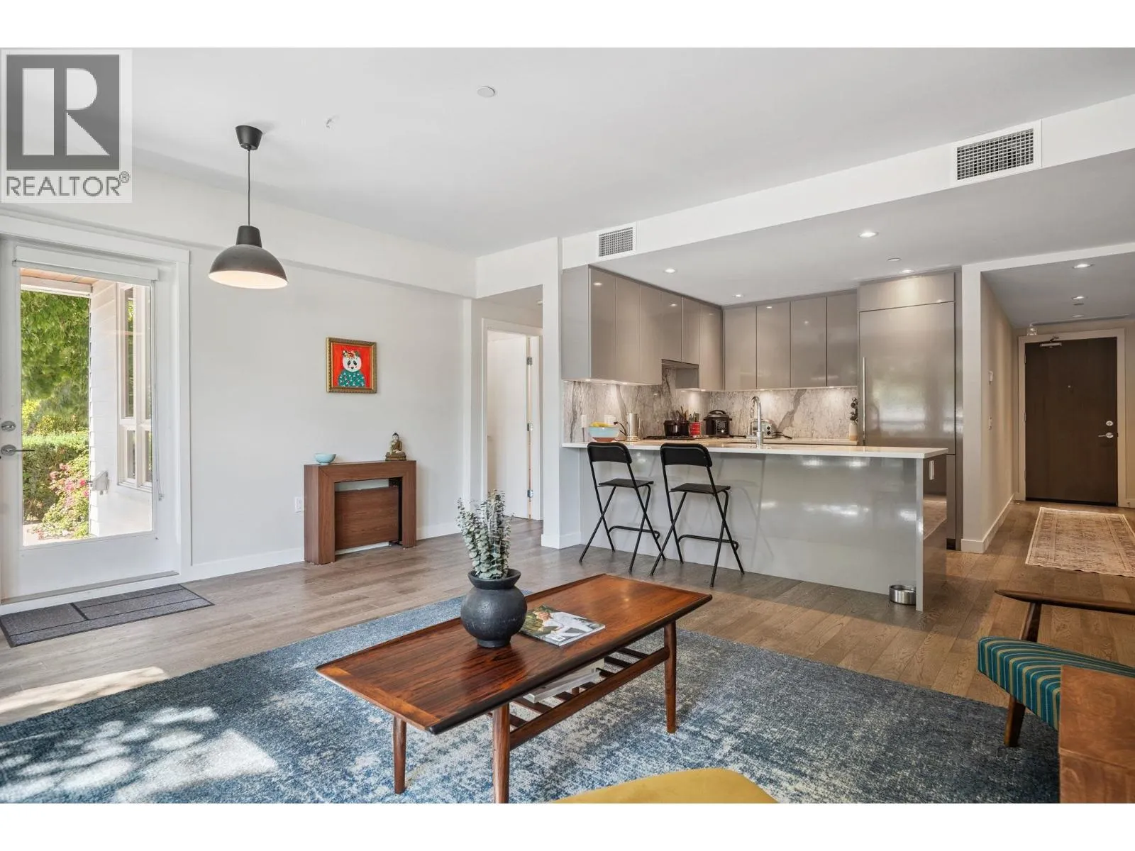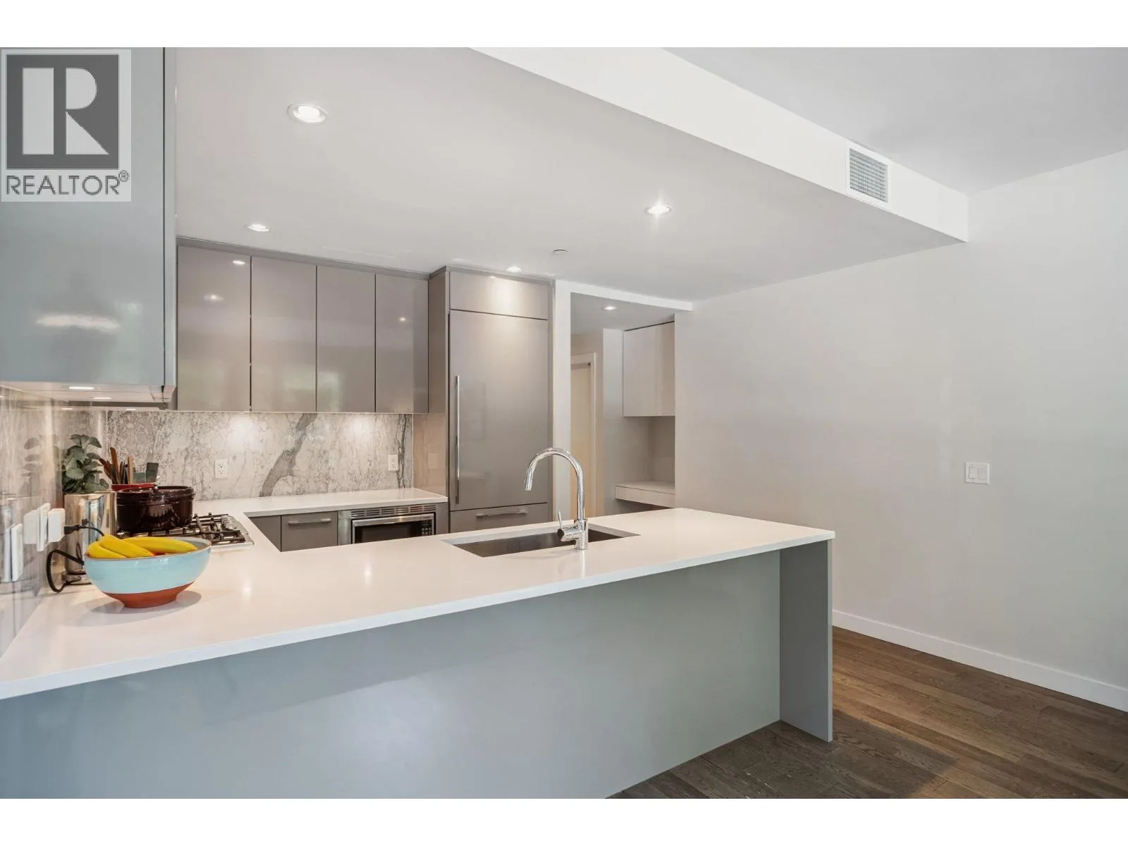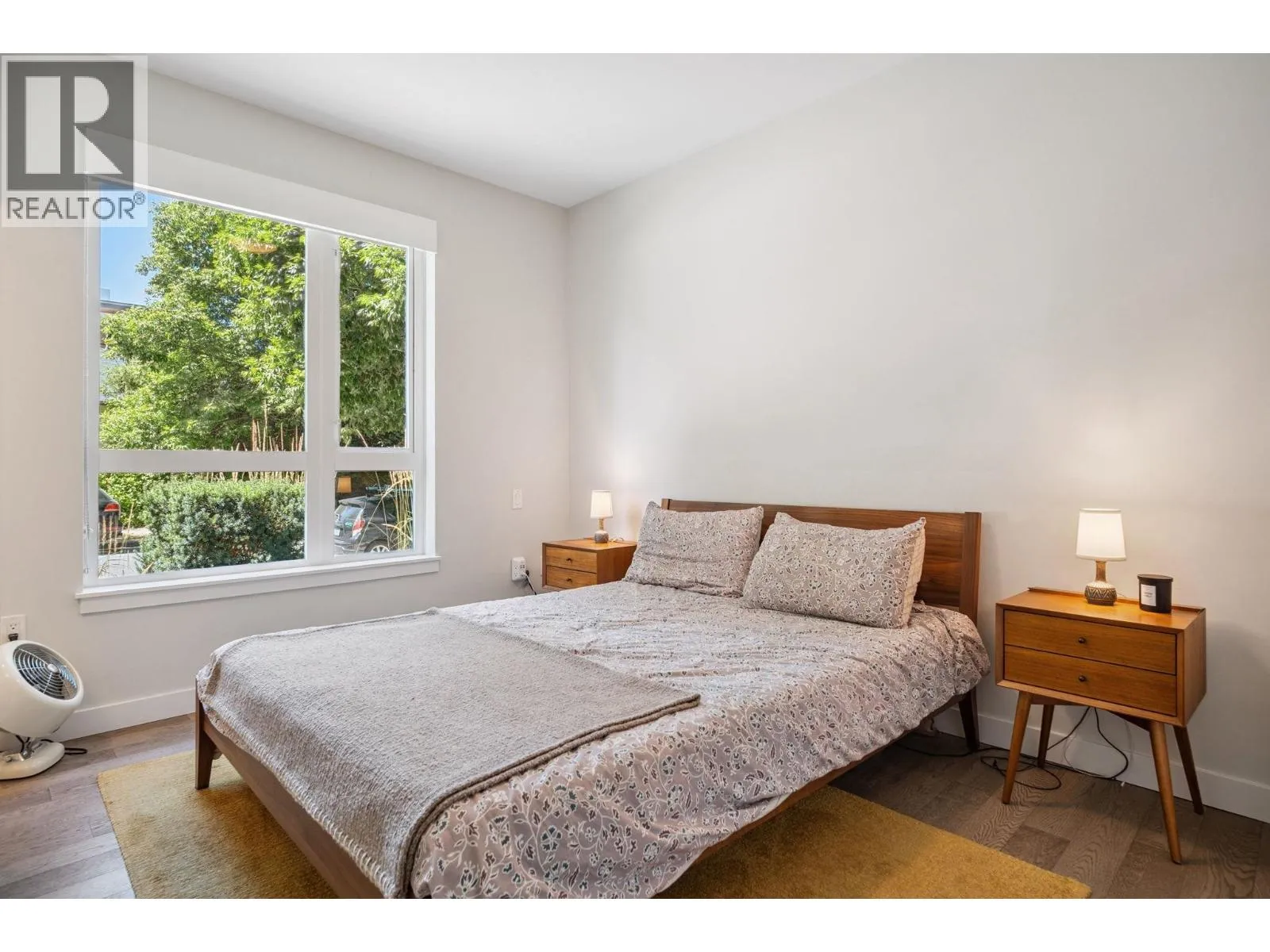ELEGANCE & LUXURY in the heart of Cambie Corridor in a luxury boutique building, BENNINGTON HOUSE. Rare to come to market is this CORNER 2 bed + DEN + desk nook, 2 bathroom ground-level residence. This bright and spacious 934 sqft home features a chef-inspired kitchen with quartz countertops paired with Bianco pearl marble backsplash and premium Bosch appliances including an integrated fridge & gas cooktop. Enjoy the added comfort of AIR CONDITIONING, stunning spa-like baths as well as a private, garden level patio equipped with gas connection--perfect for entertaining outside. DEN is great storage or office space. Just one block from King Edward SkyTrain, with Queen Elizabeth Park, shops, and cafes nearby. EPIC LOCATION & PRICE for newer & modern. 1 parking, 1 storage locker. Welcome to the good life ! MOVE IN READY. Open House Sat/Sun Dec 6/7 2-4pm. (id:27476)