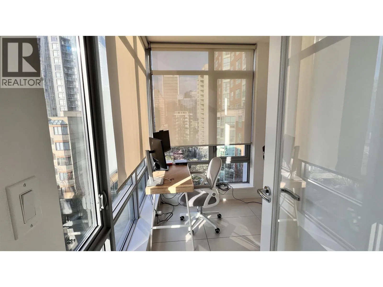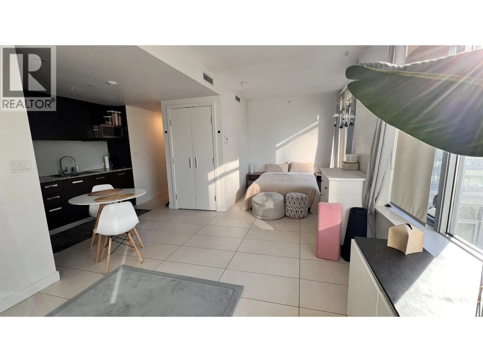 Bright and modern Studio + Den home located in Patina, a desirable concrete high-rise in Vancouver´s West End. This functional 533 sq.ft. layout offers a partially furnished interior with contemporary finishes and in-suite laundry. The den provides flexible space for work or storage. One storage locker is included. No parking with the unit, but parking may be available for rent in the building. Small pets are allowed with owner approval. Enjoy an unbeatable location just steps to Robson Street, cafés, dining, grocery stores, transit, and the seawall. The building features secure access, a fitness centre, and a rooftop garden. Available January 1. Tenant insurance required; no smoking. (id:27476)