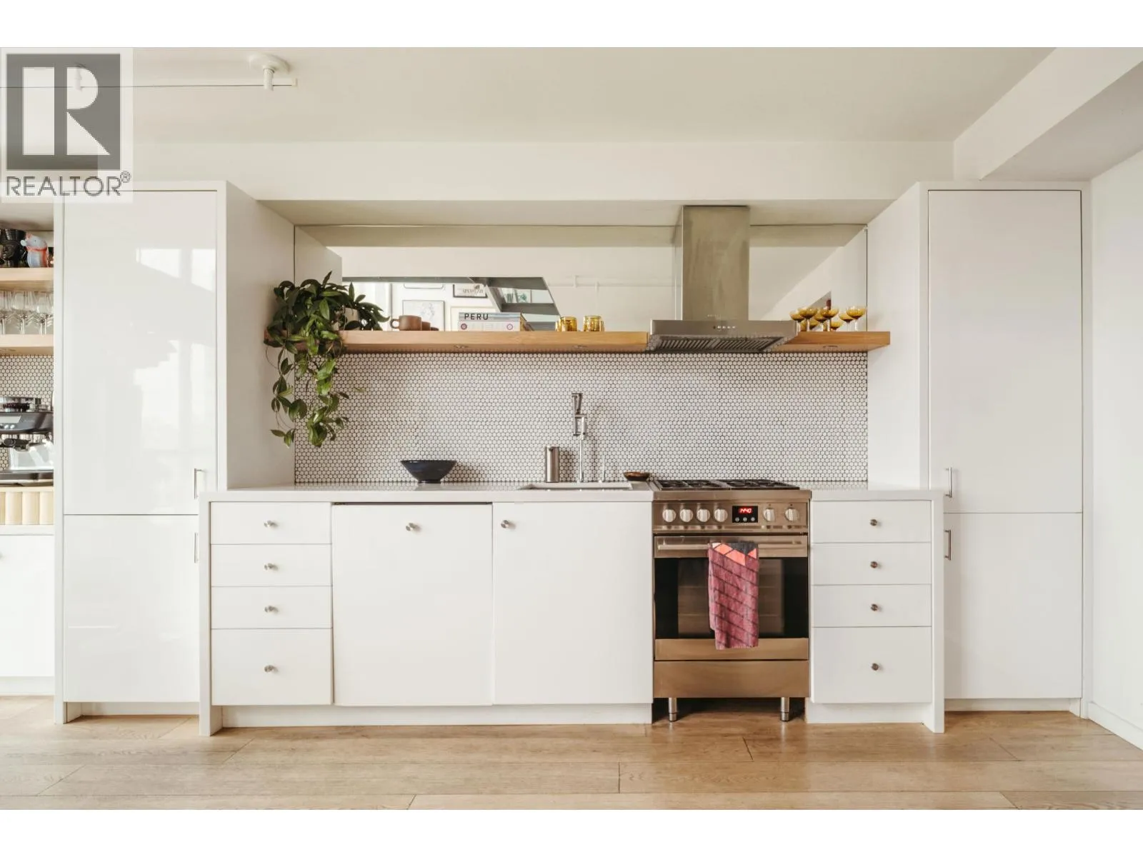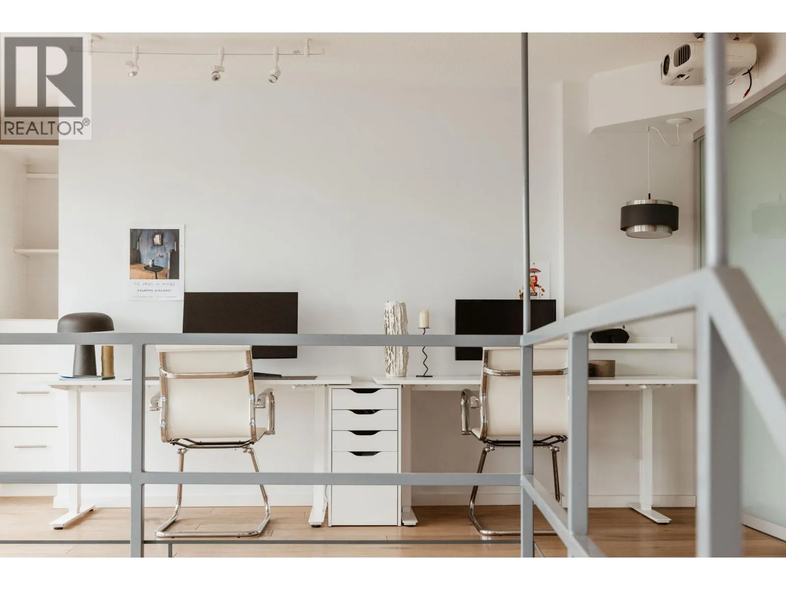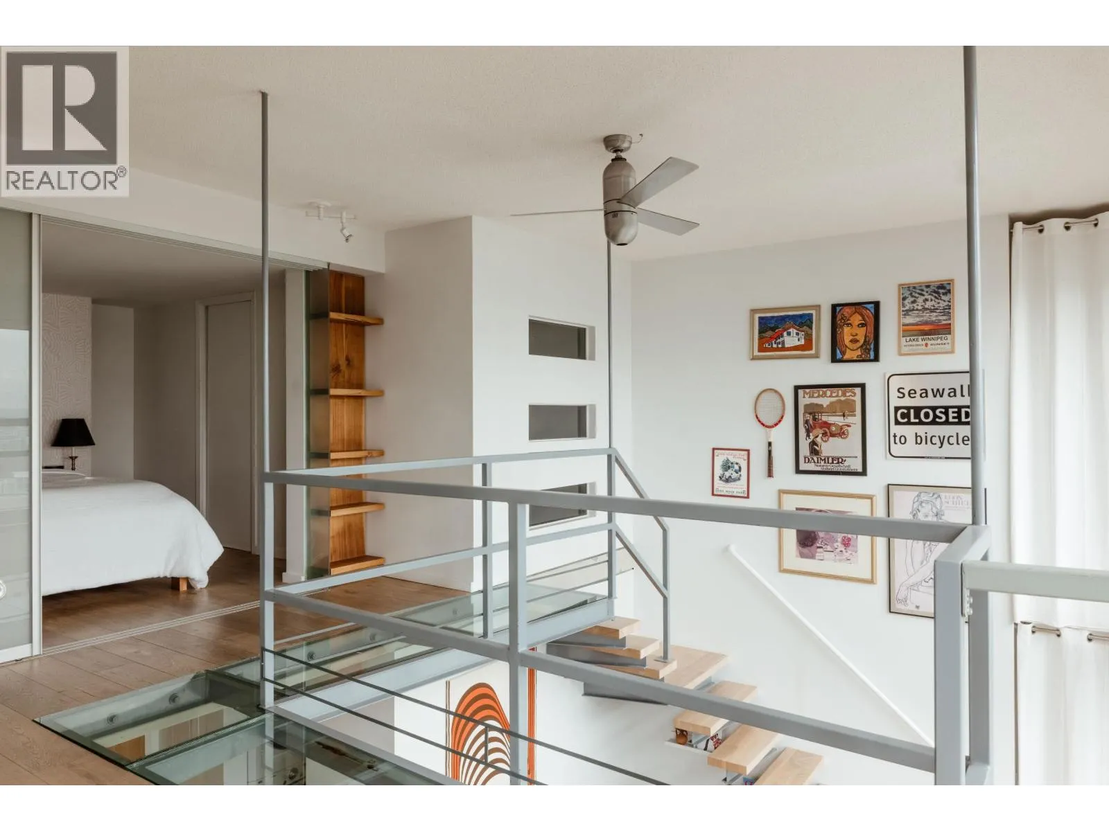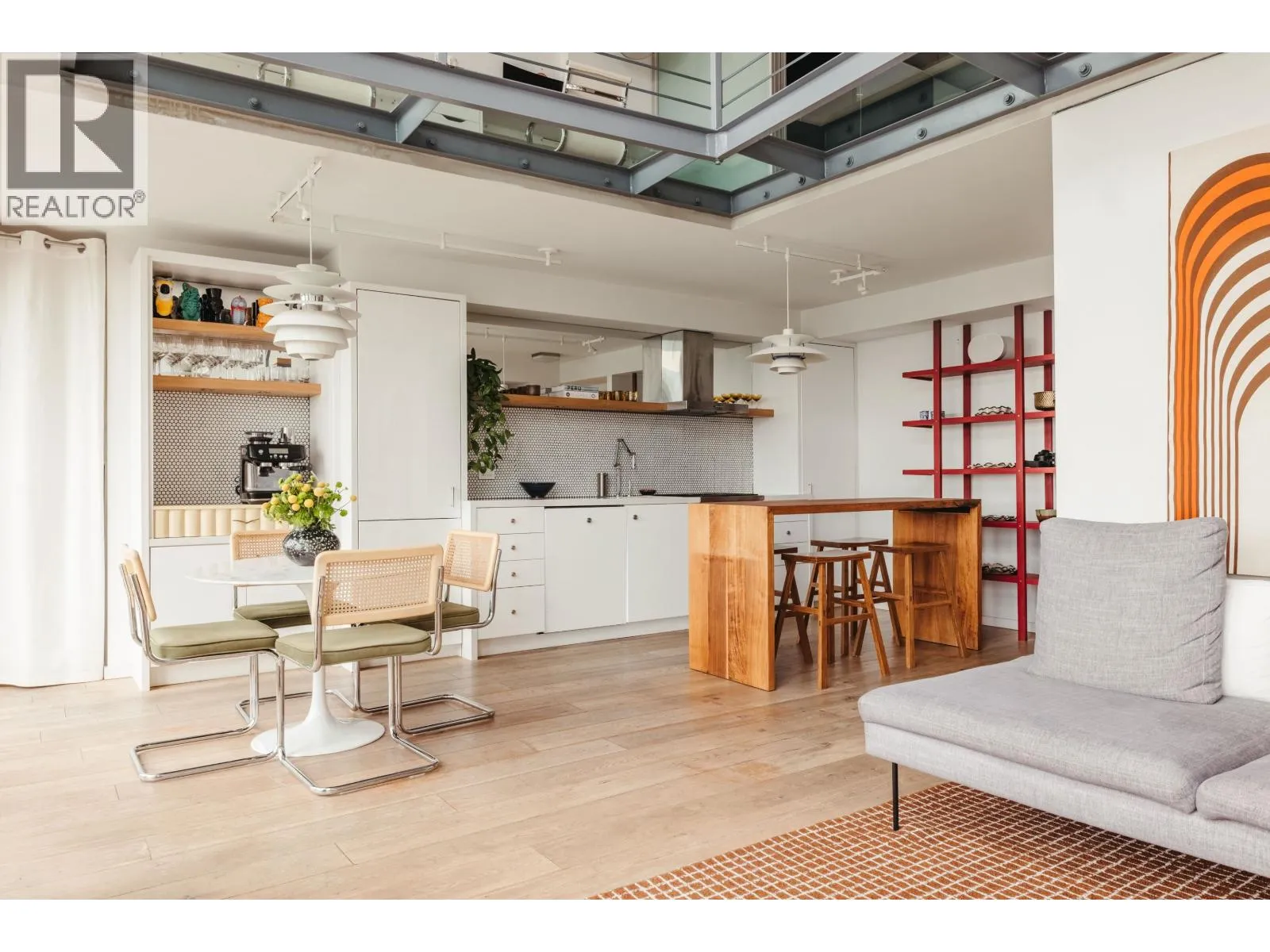 A true showpiece loft with undeniable cool factor. This rare south-facing residence offers panoramic views of False Creek, the city skyline, and Mount Baker-one of Metropolis' most iconic lofts. The 952 sq ft. two-level, 1 bedroom+ flex, 2 bath home has been fully reimagined with a sophisticated renovation that blends design and function. Soaring 16 ft. ceilings and wall-to-wall windows flood the space with light. A custom cantilevered staircase with glass-floor extension anchors the home, alongside Remplus glass doors, lighting by Louis Poulsen and Bocci, premium appliances, and Blu Bathworks fixtures. Set along a treelined stretch of Richards Street, this boutique building offers direct access to a grocery store, fitness centre, and salon. OPEN HOUSE SAT DEC 20TH, 2-4PM (id:27476)