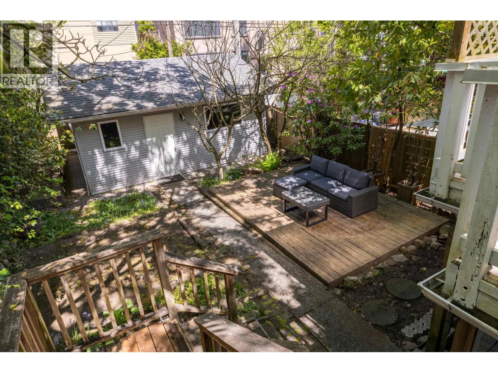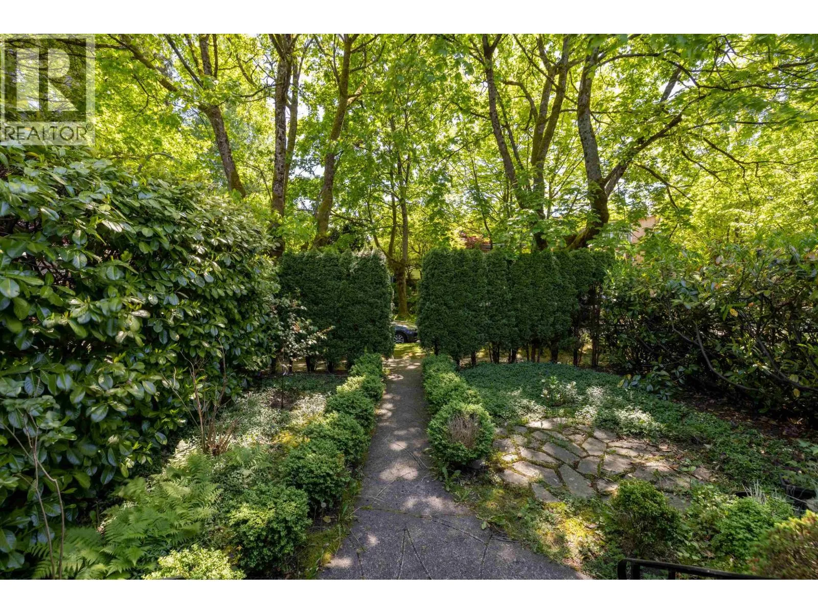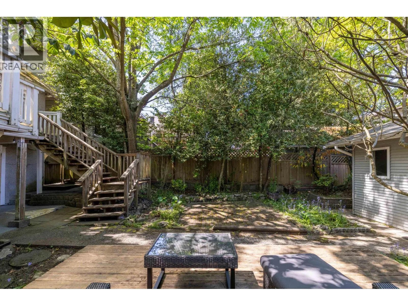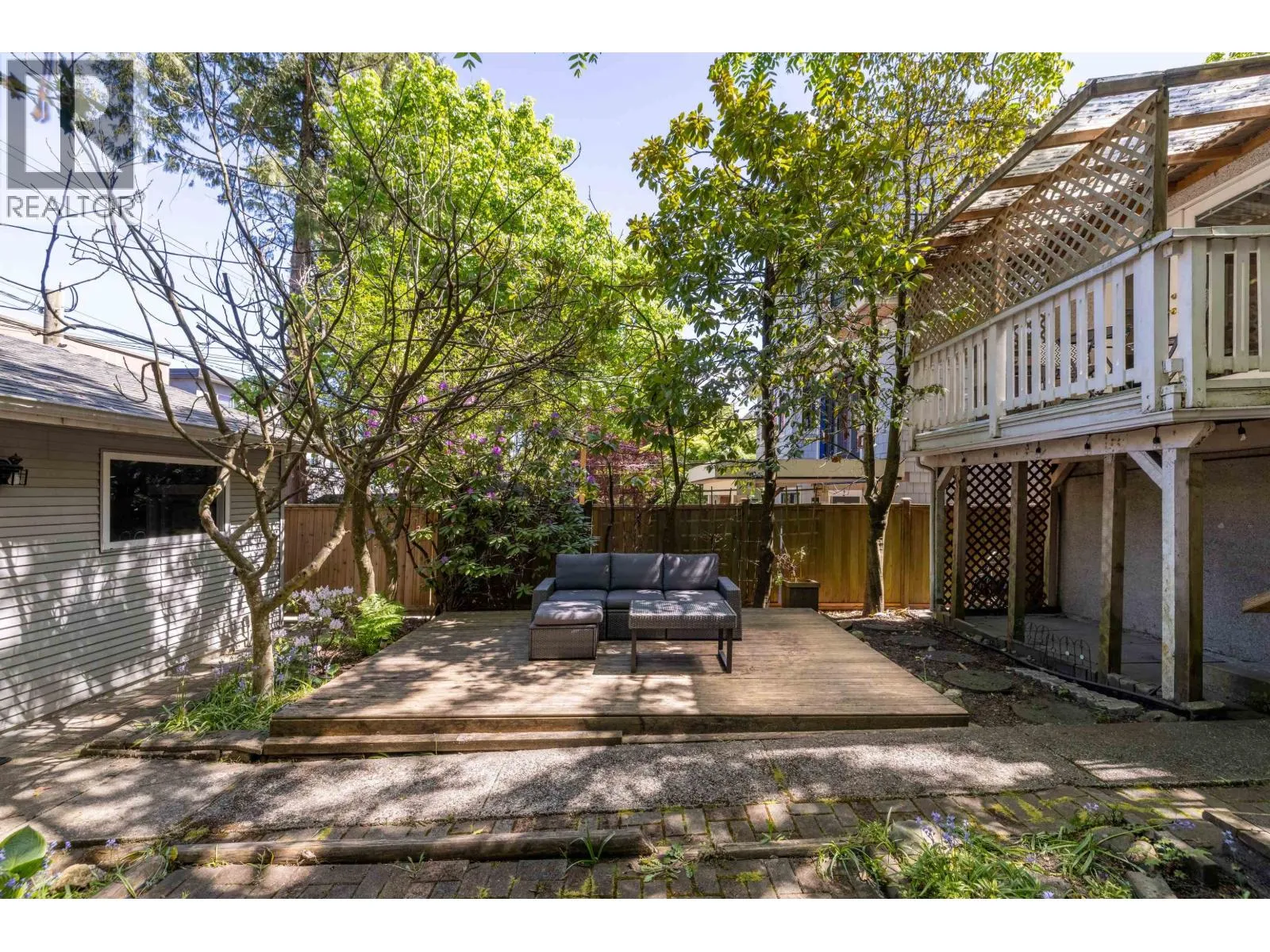 Rarely available three floor character home in Point Grey. This property boasts an ideal blend of family comfort and investment potential. The well-maintained 5-bedroom, 3-bathroom home is surrounded by gardens and a charming private terrace. Functional layout features two generously sized bedrooms and a bathroom upstairs, complemented by another bedroom on the main floor. Rich oak hardwood floors adorn the main level, where a cozy -burning fireplace graces the living room, a separate dining room invites gatherings, and a bright kitchen with an eating area leads to a spacious deck overlooking the private backyard. The lower level accommodates two bedrooms with a separate private entrance, complete with an easting area and laundry facilities, fully licensed airbnb generating great income. (id:27476)