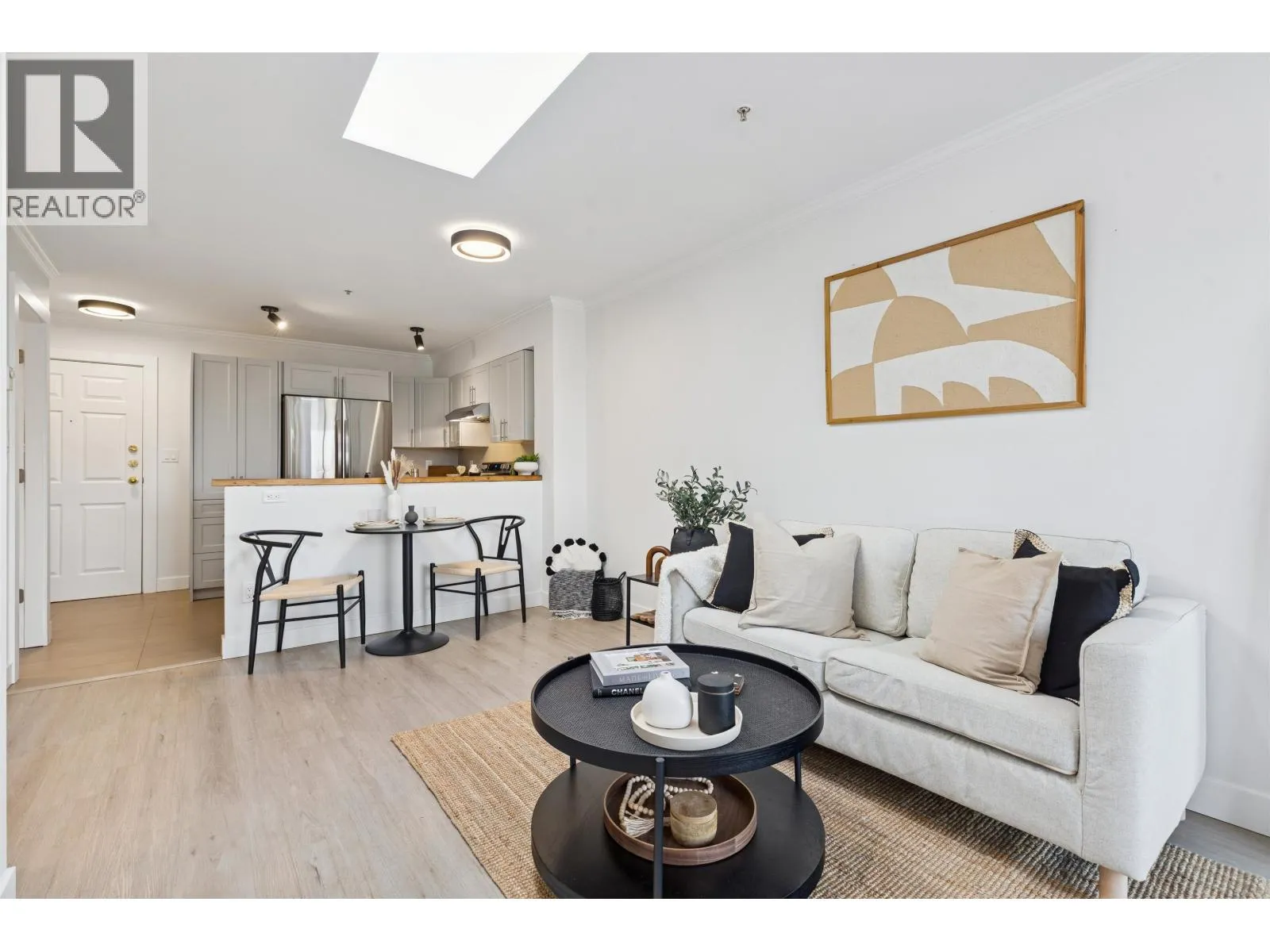 Perched WEST of Granville, this 1 bed and den PENTHOUSE is a rare gem waiting to be discovered! Ideal for first-time homeowners, investors, and anyone seeking a westside lifestyle, this suite has been meticulously upgraded with modern touches, including new appliances, laminate flooring, and sleek bathrooms and kitchen. The pièce de résistance is the expansive, newly updated deck, where you can soak up the stunning WEST VIEWS of the planes, mountains, and water. This BOUTIQUE building offers a unique blend of intimacy and community, with only a select number of homes and a proactive strata. With its UNBEATABLE location, you'll be just steps away from shops, transit, and key routes to downtown and Richmond. Parking 1 & Bike Storage - Open House Dec 20th 11-1 (id:27476)