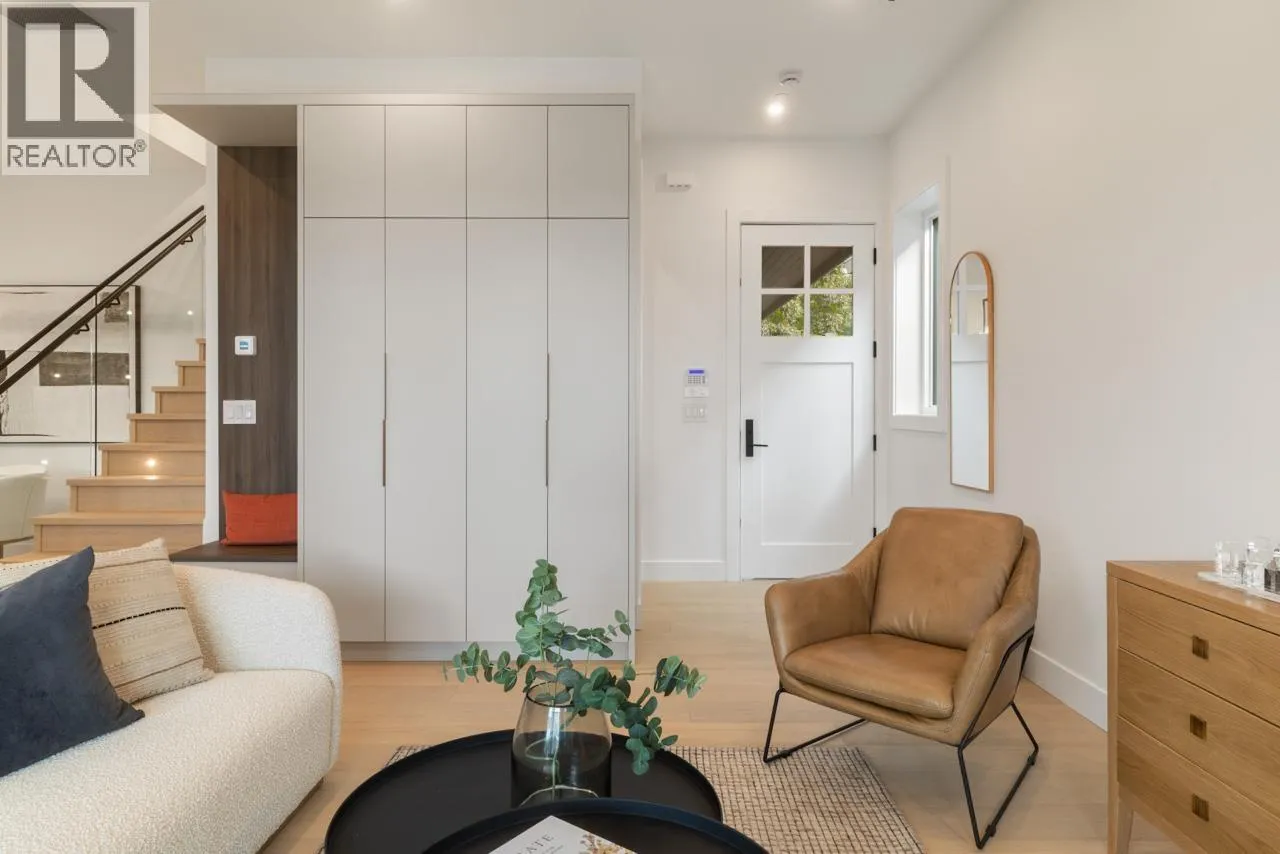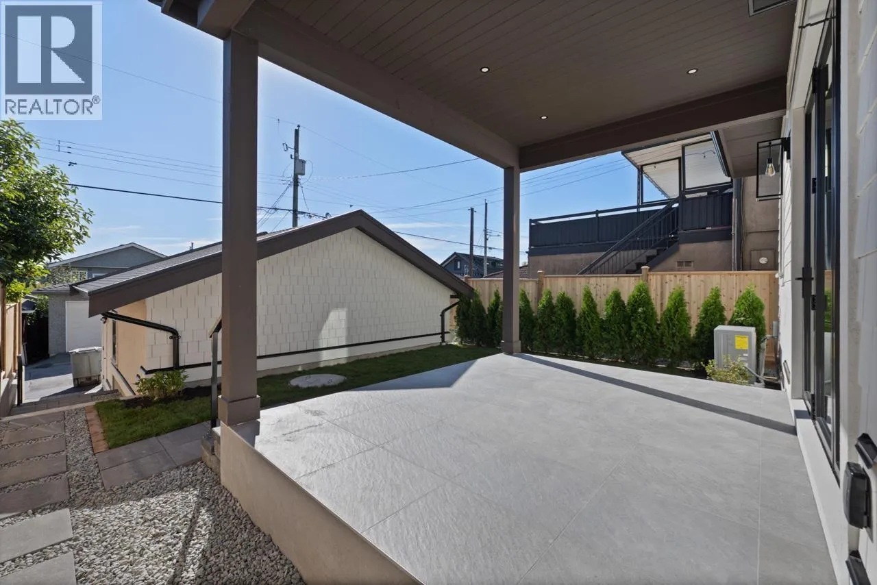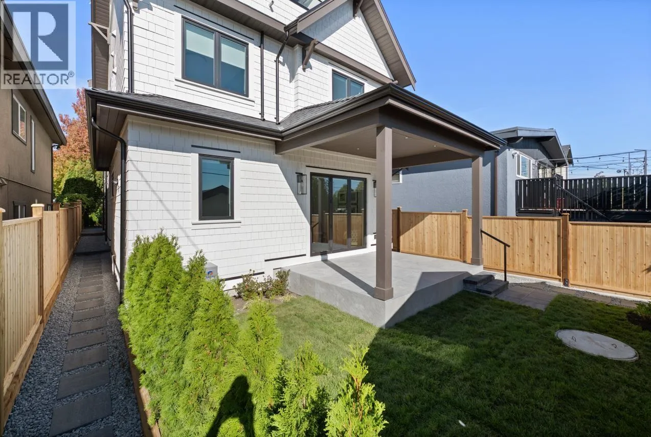 This exceptionally well-built back half duplex offers combines thoughtful design with stunning outdoor living. The bright & open main floor boasts 10' ceilings with spacious living area, dedicated dining space, loads of custom millwork and extends through eclipse style doors to a private South facing backyard with large covered patio. The gourmet kitchen has integrated Fisher & Paykel appliances, gas range & large island with breakfast bar, perfect for entertaining. Upstairs has 3 bedrooms & 2 bathrooms including a primary with ensuite. The top floor is a versatile retreat with spa-like ensuite, room for reading nook or office + a covered balcony with sweeping city views. Centrally located on a nice East Van street, this home offers the ultimate blend of style, function & community. (id:27476)