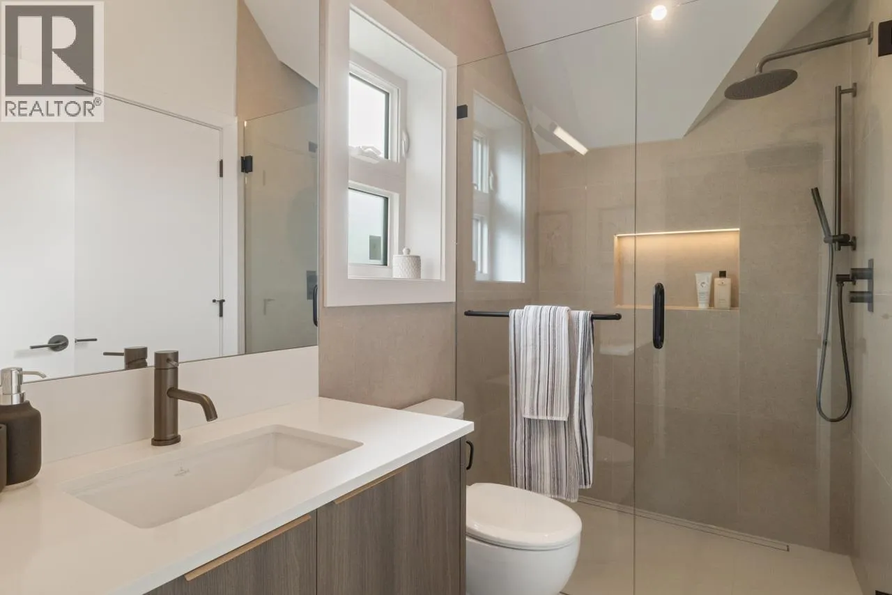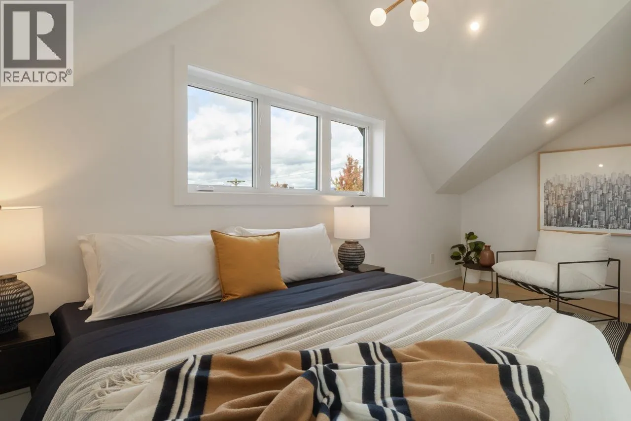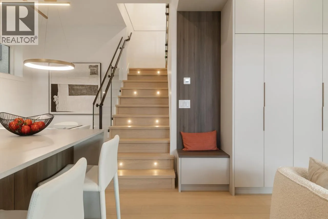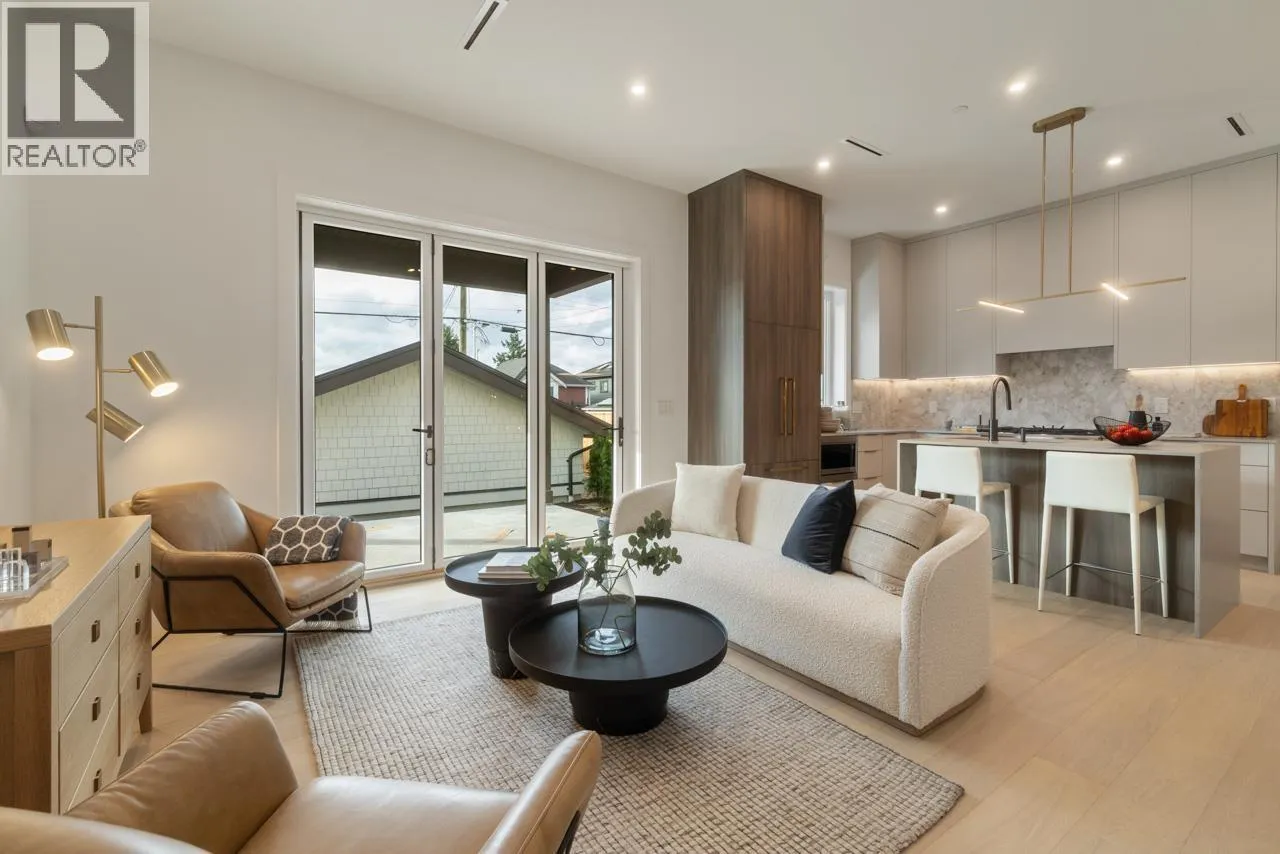 This exceptionally well-built back half duplex offers combines thoughtful design with stunning outdoor living. The bright & open main floor boasts 10' ceilings with spacious living area, dedicated dining space, loads of custom millwork and extends through eclipse style doors to a private South facing backyard with large covered patio. The gourmet kitchen has integrated Fisher & Paykel appliances, gas range & large island with breakfast bar, perfect for entertaining. Upstairs has 3 bedrooms & 2 bathrooms including a primary with ensuite. The top floor is a versatile retreat with spa-like ensuite, room for reading nook or office + a covered balcony with sweeping city views. Centrally located on a nice East Van street, this home offers the ultimate blend of style, function & community. (id:27476)