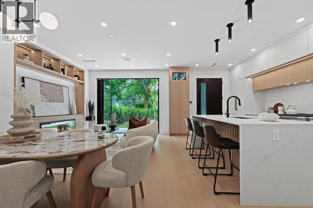 Welcome to this exquisite front 1/2 duplex in the heart of Dunbar, built by renowned Westside builder Mann Bros Construction. Offering almost 1600sq.ft of living space across 3 levels, this home is a masterpiece of design & craftsmanship with no detail spared & only the best materials used. The main floor boasts an expansive, open-concept layout that seamlessly connects the living, dining & kitchen areas. Large eclipse doors open to a lovely front yard. Upstairs, you'll find 3 generously sized bdrms, each with its own luxurious ensuite & custom cabinetry. The top floor is a versatile space, ideal as a bdrm, home office or rec room & it includes its own private balcony. Additional features include a one car garage, in-floor radiant heat , A/C & a security system. (id:27476)