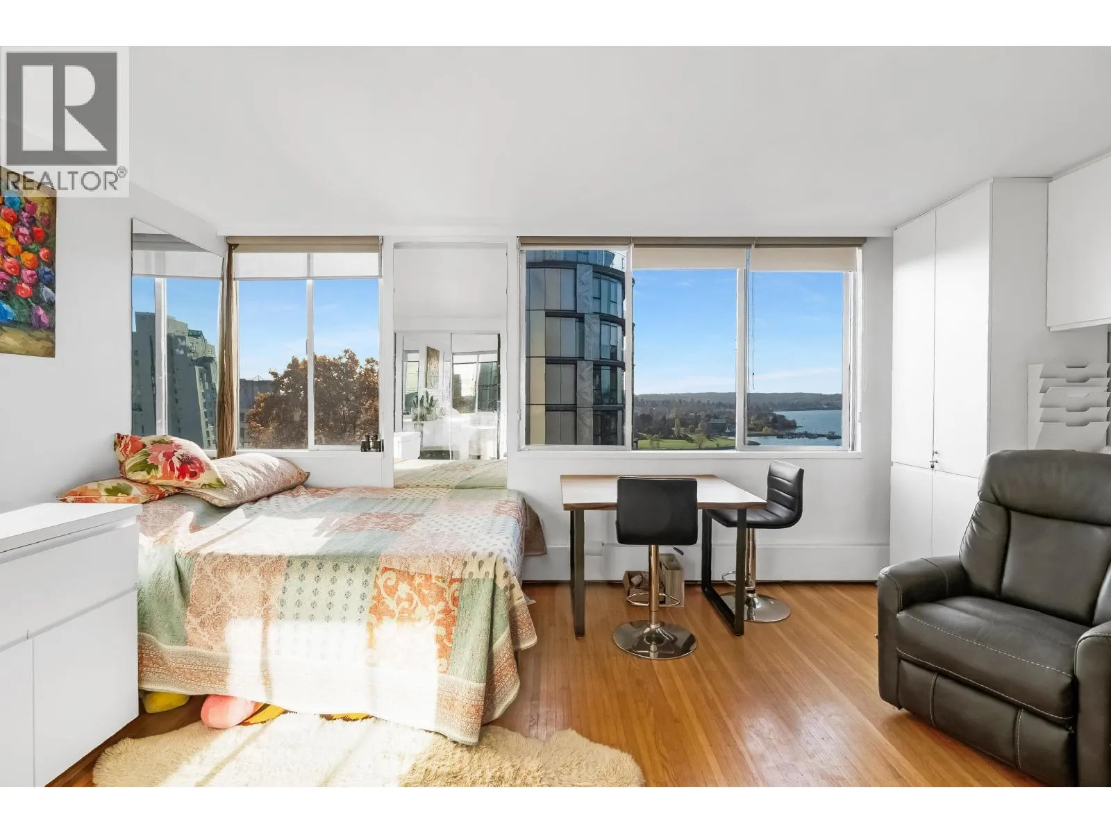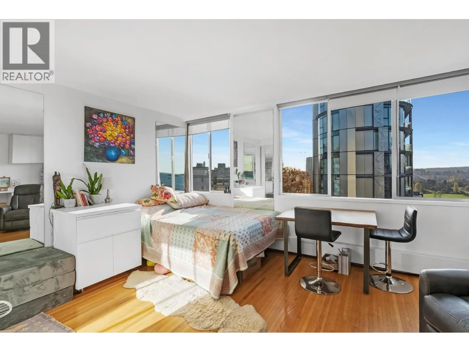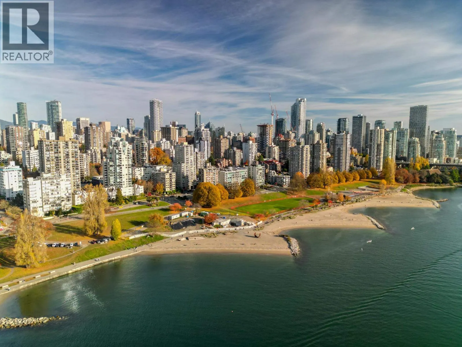 Elegant, light-filled residence showcasing panoramic ocean and sunset views through expansive windows. Sophisticated updates elevate the open layout, featuring custom built-ins, refined finishes, and rich oak flooring. Steps from English Bay, the Seawall, beaches, cafés, boutiques, parks, and transit. Custom window coverings included. Exceptional building amenities include a rooftop view deck and pool. A stylish, turn-key leasehold opportunity ideal as an investment, or downsizing retreat. OPEN HOUSE: Dec 13th , 11 AM - 1:30 PM (id:27476)