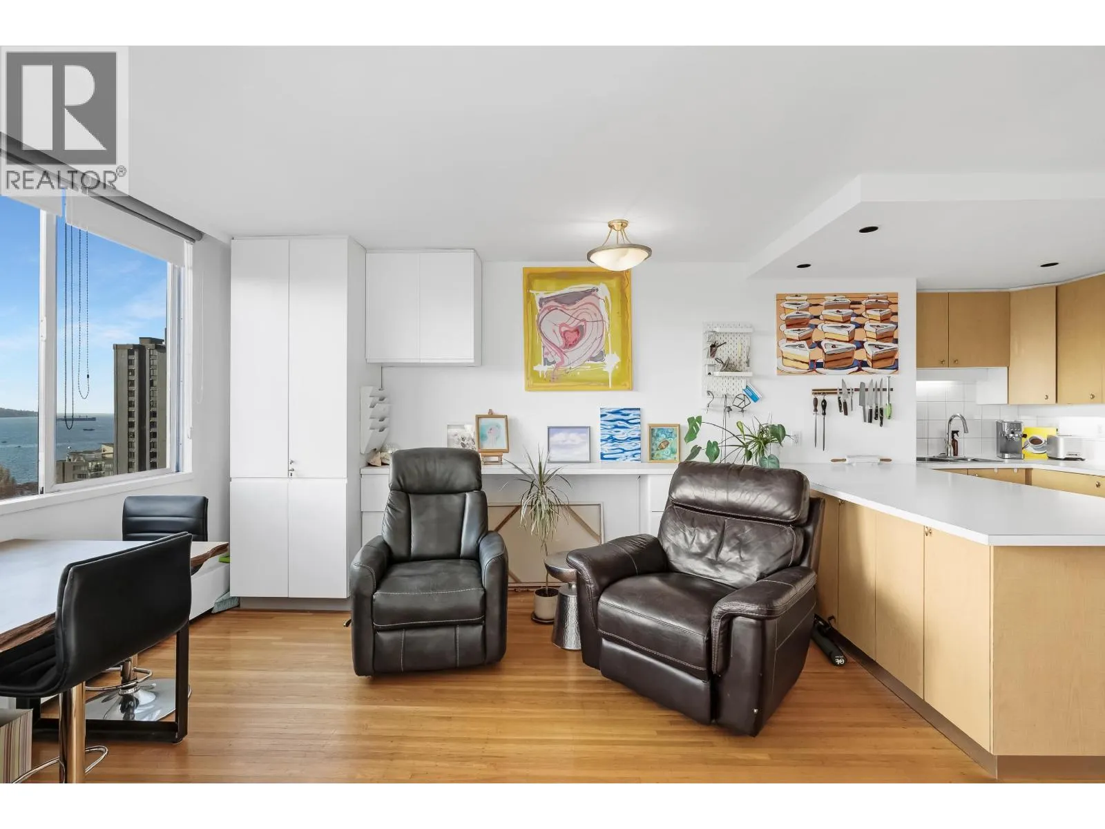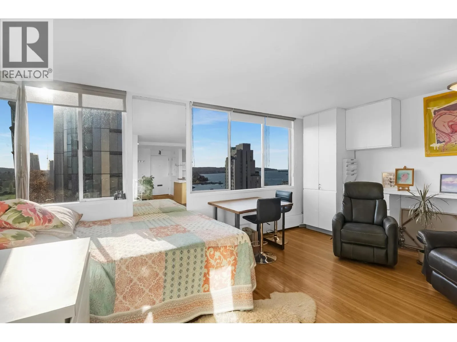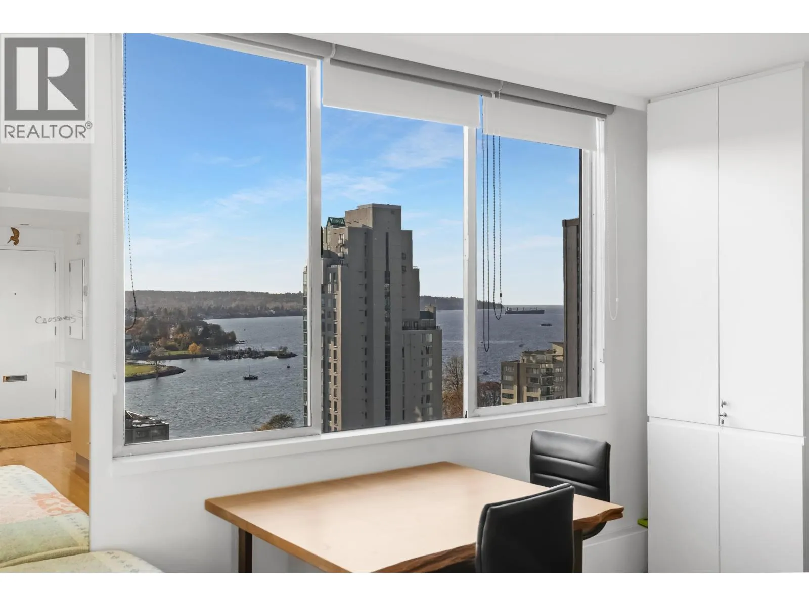 Elegant, light-filled residence showcasing panoramic ocean and sunset views through expansive windows. Sophisticated updates elevate the open layout, featuring custom built-ins, refined finishes, and rich oak flooring. Steps from English Bay, the Seawall, beaches, cafés, boutiques, parks, and transit. Custom window coverings included. Exceptional building amenities include a rooftop view deck and pool. A stylish, turn-key leasehold opportunity ideal as an investment, or downsizing retreat. OPEN HOUSE: Dec 13th , 11 AM - 1:30 PM (id:27476)