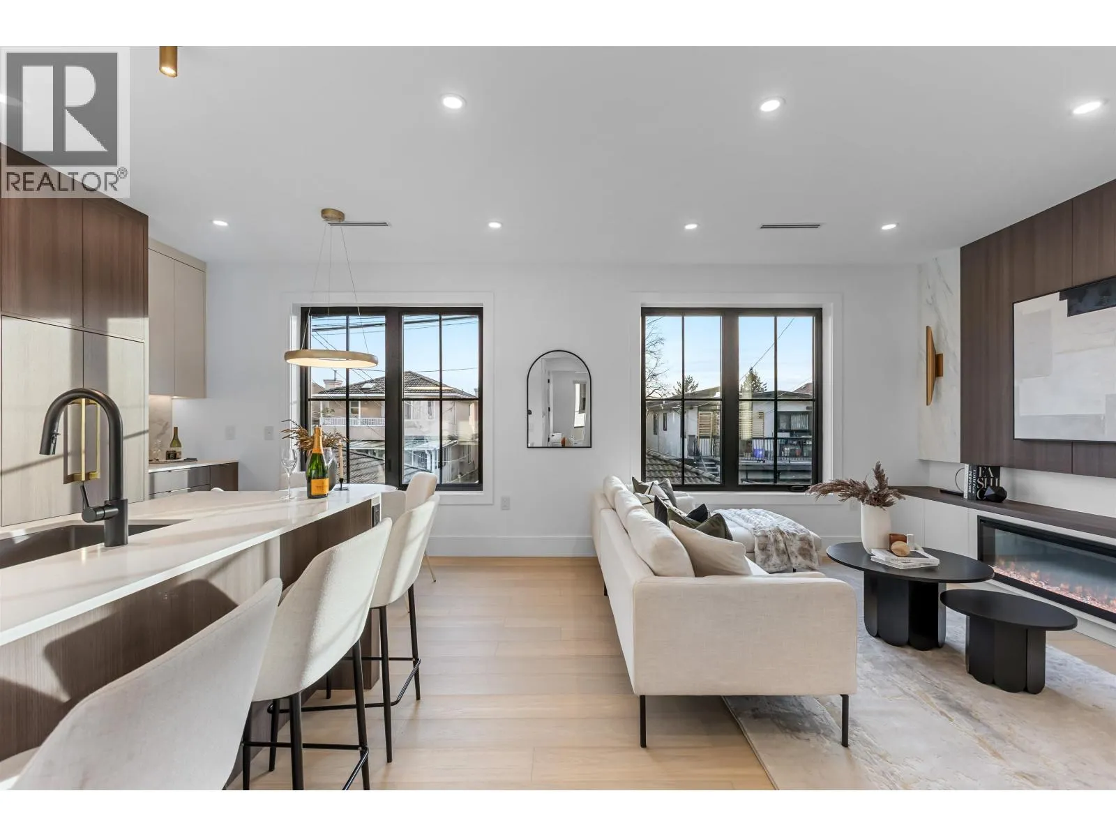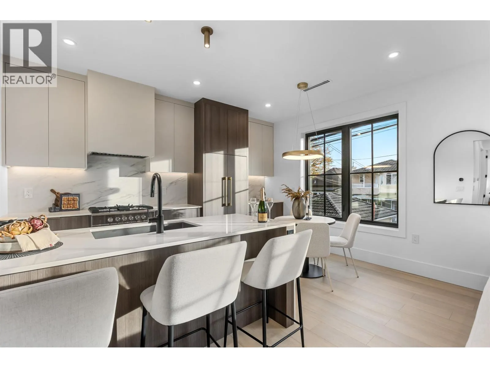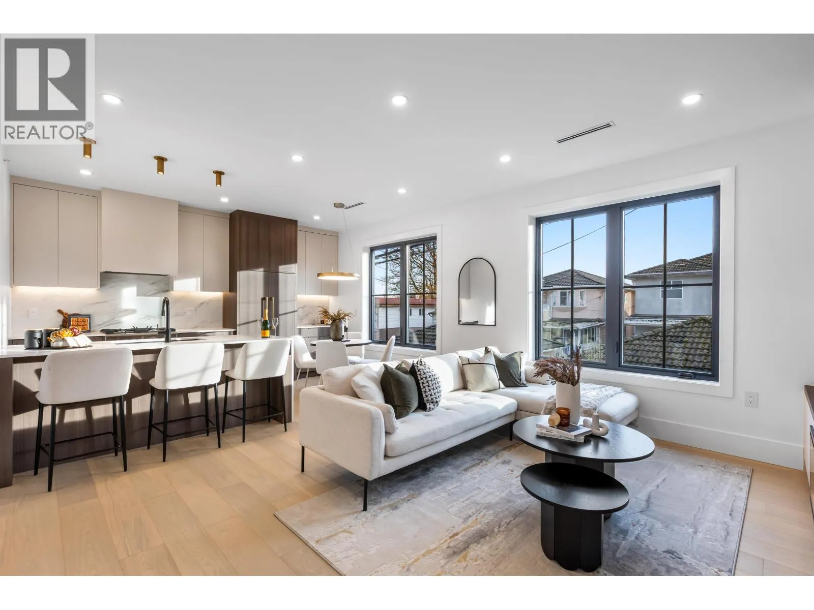 Discover Fraser Living, a boutique collection of modern farm style homes in the heart of Vancouver´s Sunset neighbourhood. 2-storey laneway offers 3 beds 3 baths + 1 designated EV-ready carport. Every home is crafted with elevated features incl radiant floor heating, AC heat pump, eng hardwood, Fisher Paykel appliance package, and custom LED lighting to add to the ambiance. 10ft grand ceiling heights create an expansive sense of space, while the high-efficiency construction with modern amenities delivers premium comfortable living. Positioned within the catchment of John Henderson Elementary + John Oliver Secondary, this family-friendly address is surrounded by parks, shopping + transit and designed for families and urban professionals. (id:27476)