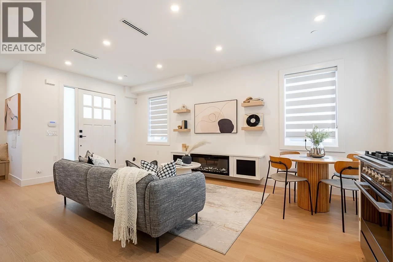 NO STRATA FEE o BRAND-NEW TRIPLEX: Welcome to this brand new 3 bed, 2 bath triplex in the heart of Kensington-Cedar Cottage! Thoughtfully designed across 3 levels, this home offers a bright, functional layout perfect for modern living. A welcoming front veranda leads into the open-concept main flr featuring spacious Living/dinning area, designer kitchen with Fisher & Paykel appliances, farmhouse sink, and a convenient nook with large bench, shoe storage, and coat closet. Upstairs includes two well-sized bedrooms, full bath, and office nook. The top floor features a good-sized primary bedroom with ensuite, Romeo & Juliet balcony, and ample storage. Quality finishes throughout: A/C, radiant in-floor heating, HRV system, EV-ready garage, alarm & security cams. Covered by 2-5-10 New Home Warranty. A perfect blend of comfort, style, and location-don´t miss this one! (id:27476)