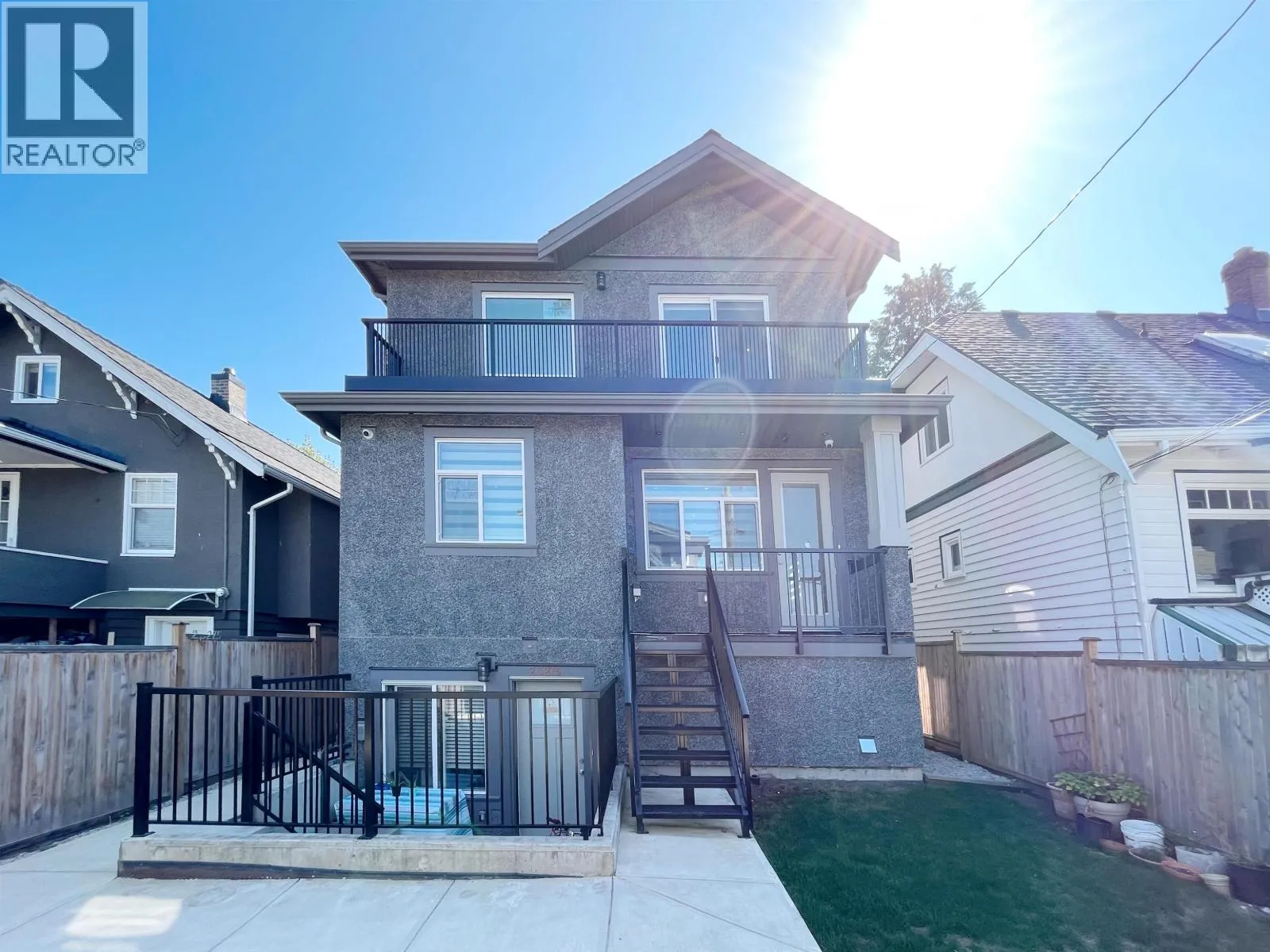 Primary Renfrew Height, South facing flat lot on treelined quiet street, quality craftsmanship by experienced expert. Beautiful North-shore mountain and city view. Practical and Open layout for the main floor, large Den can also be a bedroom for senior with a Full bath. Upper has 3 large bedrooms and 2 baths. Large size master bedroom that can enjoy amazing view of city downtown and mountain. Basement has one legal 2 bedroom suite with 2 full baths (option to have a separate studio). Laneway has large bedroom with ensuite full bath upstairs and a room and full bath down. One of the Best Central location in East Van, walk to Vancouver Christian, Gladstone Secondary, skytrain station, superstore and all the other shops and restaurants. (id:27476)