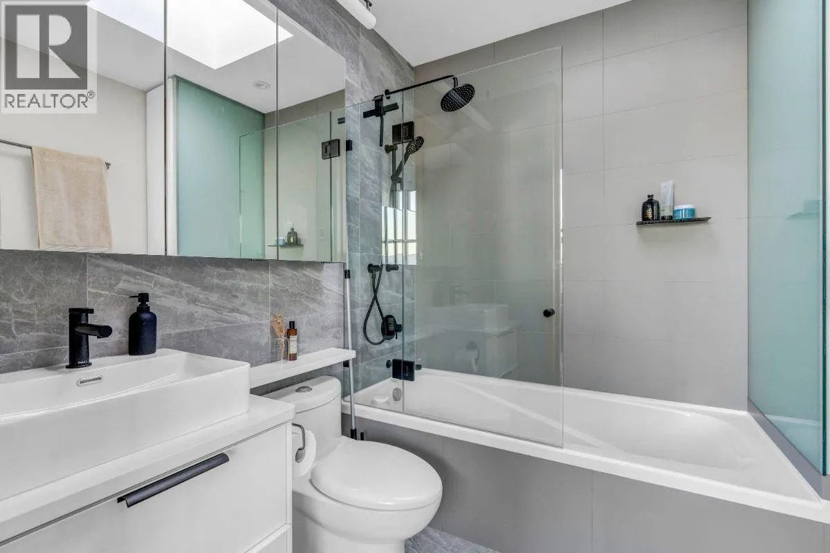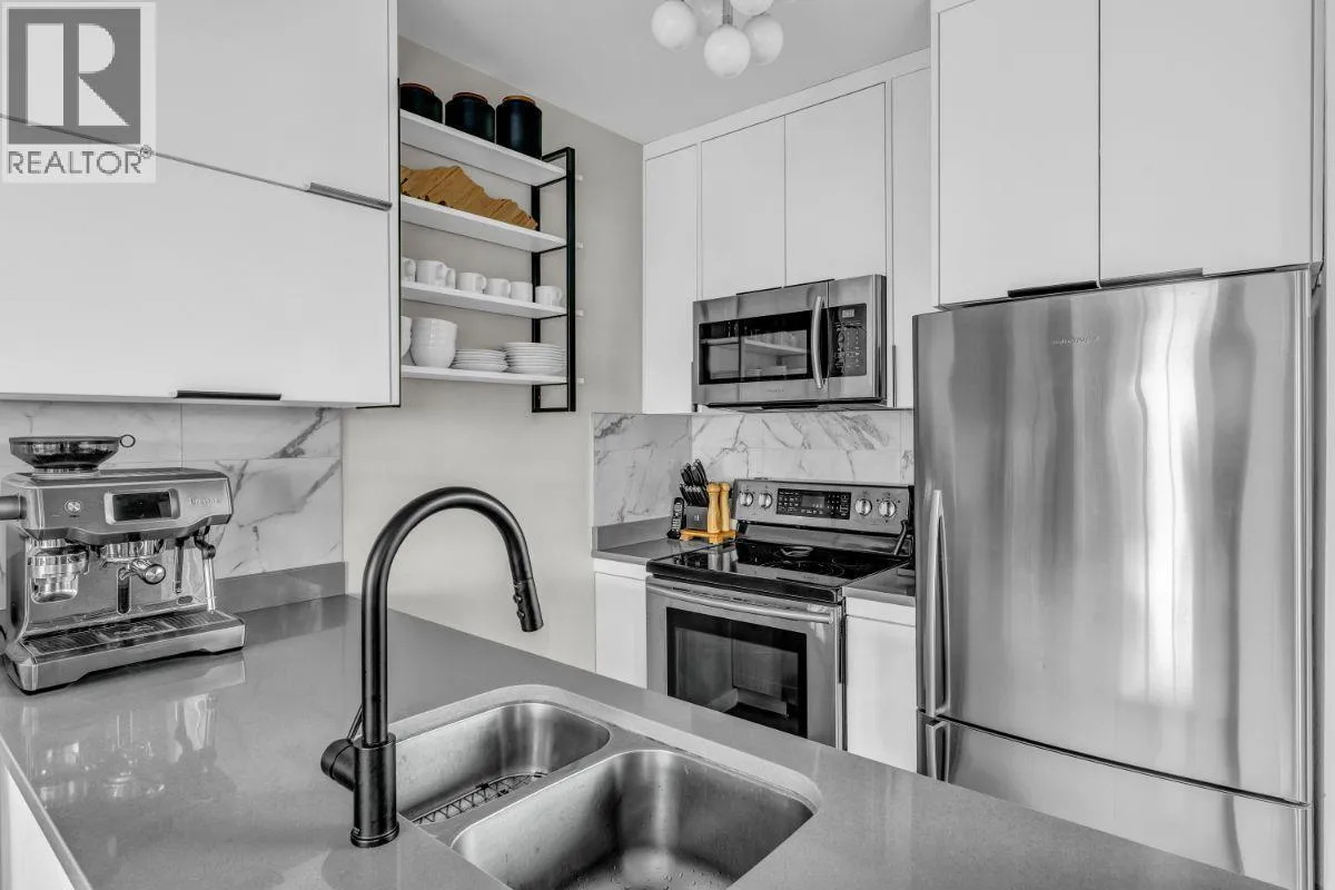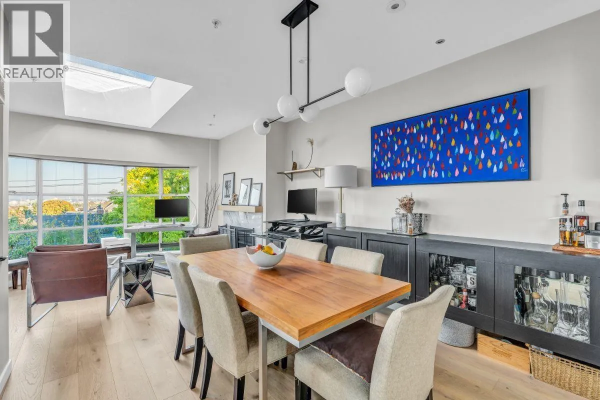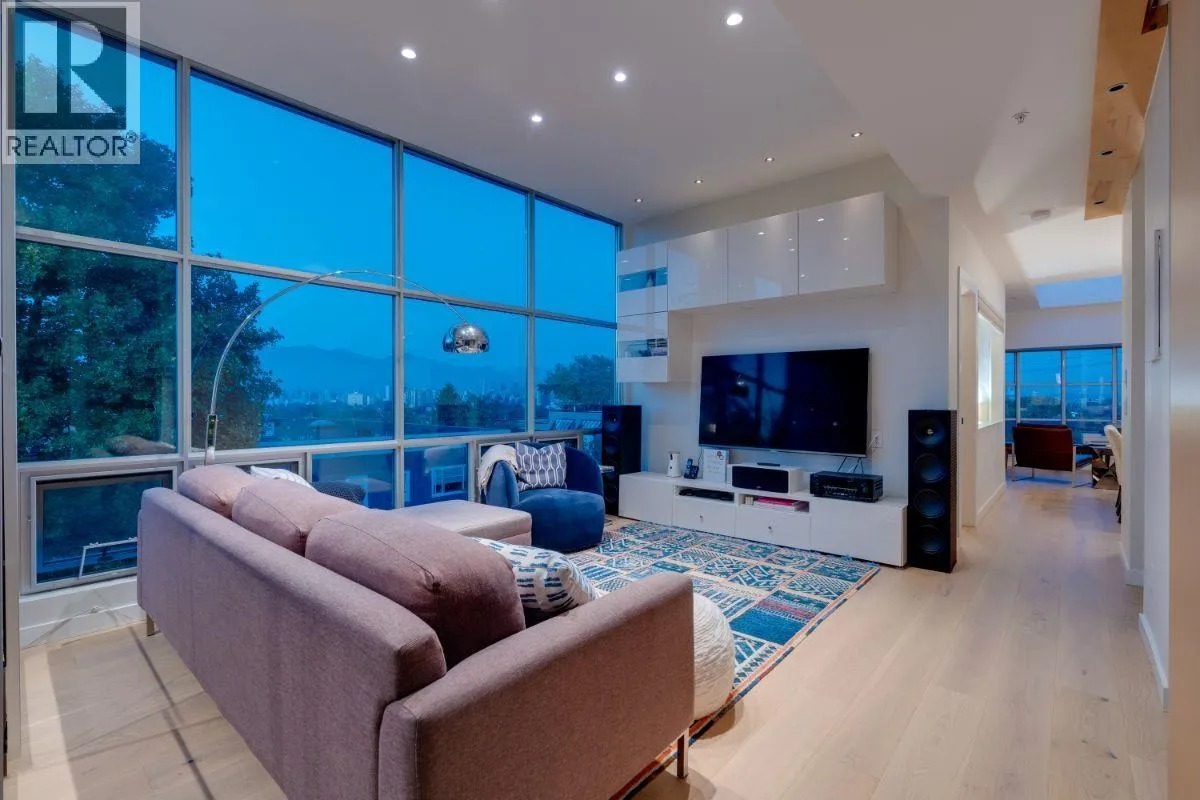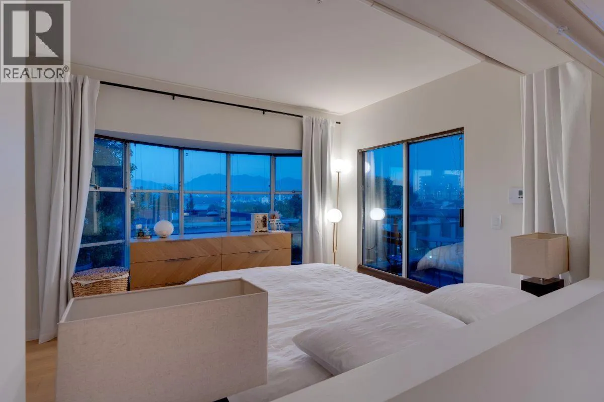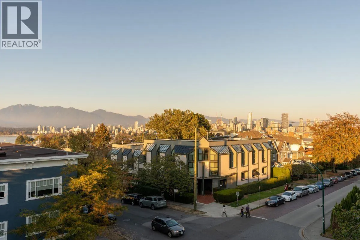 Stunning downtown, mountain, and English Bay views from this spacious, fully renovated one-bedroom penthouse-level home, perched high on the corner of West 3rd and Yew. This light-filled corner unit features soaring 9'9" ceilings, a dramatic living room skylight, and floor-to-ceiling windows. Ideally located for the Kits lifestyle, just steps to vibrant West 4th Avenue with its shops and restaurants, plus Safeway and Whole Foods less than a block away. Nestled on a quiet residential street and only four short blocks to coveted Kits Beach. Highlights include California Closets, heated bathroom floors, smooth ceilings, and a cozy gas fireplace. Pet friendly and one secure underground parking stall is included. (id:27476)