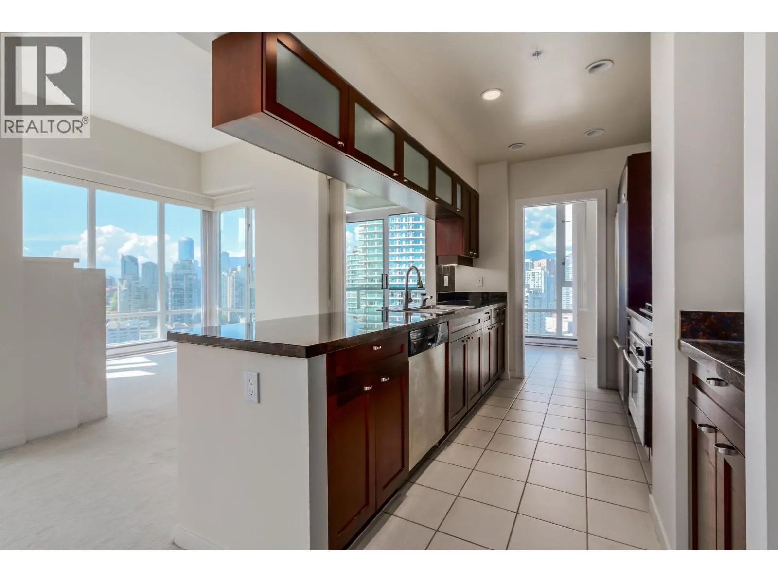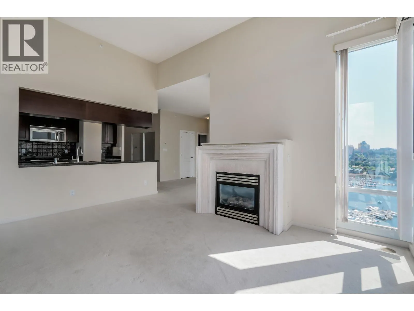 This is the Marinaside penthouse opportunity you´ve been waiting for. Penthouse 2803 at Quaywest impresses with dramatic over-height ceilings-9.5 ft throughout most of the home and an exceptional 12 ft in the living room-creating a true sense of scale and light. Rarely available along Marinaside, this true penthouse offers an outstanding layout with two well-separated bedrooms plus a versatile den with a built-in Murphy bed, ideal for guests or a flexible home office, along with an upgraded chef´s kitchen featuring Bosch appliances and Sub-Zero refrigeration. Set on one of Vancouver´s most coveted waterfront streets, every convenience is just steps from your door, while residents enjoy exceptional amenities at Club Aqua, including an indoor pool, hot tub, fitness centre, 24-hour concierge. (id:27476)