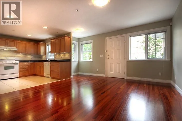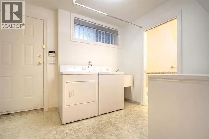 This 2,352 square ft three-level, rear half-duplex offers three bedrooms plus an office, set away from W 41st for added quiet. It has a fenced, tree-lined backyard with a paved patio and a small sundeck. The main level has hardwood floors, a formal foyer, a bright living and dining area with a gas fireplace, and a separate family room beside the kitchen. The kitchen features granite counters, tiled backsplash, wood cabinets, a workstation, and white appliances, plus access to the sundeck. A two-piece powder room is also on this floor. Upstairs are three bedrooms, including a primary with walk-in closet and five-piece ensuite. The lower level includes an office, laundry, another two-piece bath, radiant heating, security system, and yard maintenance included. (id:27476)