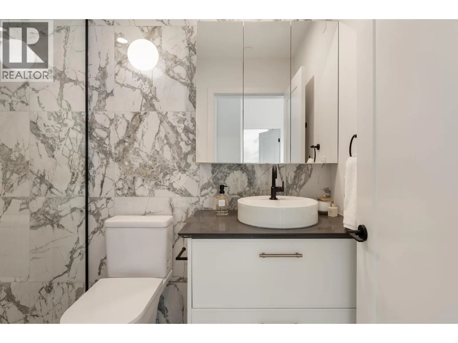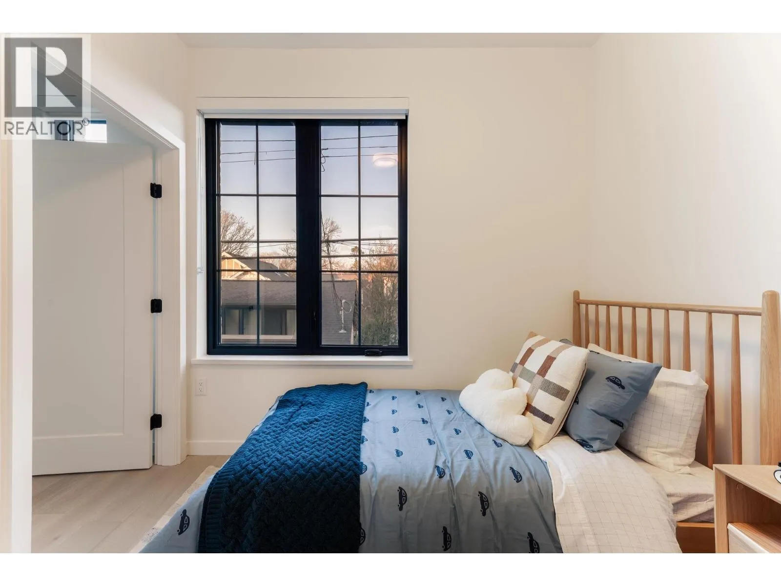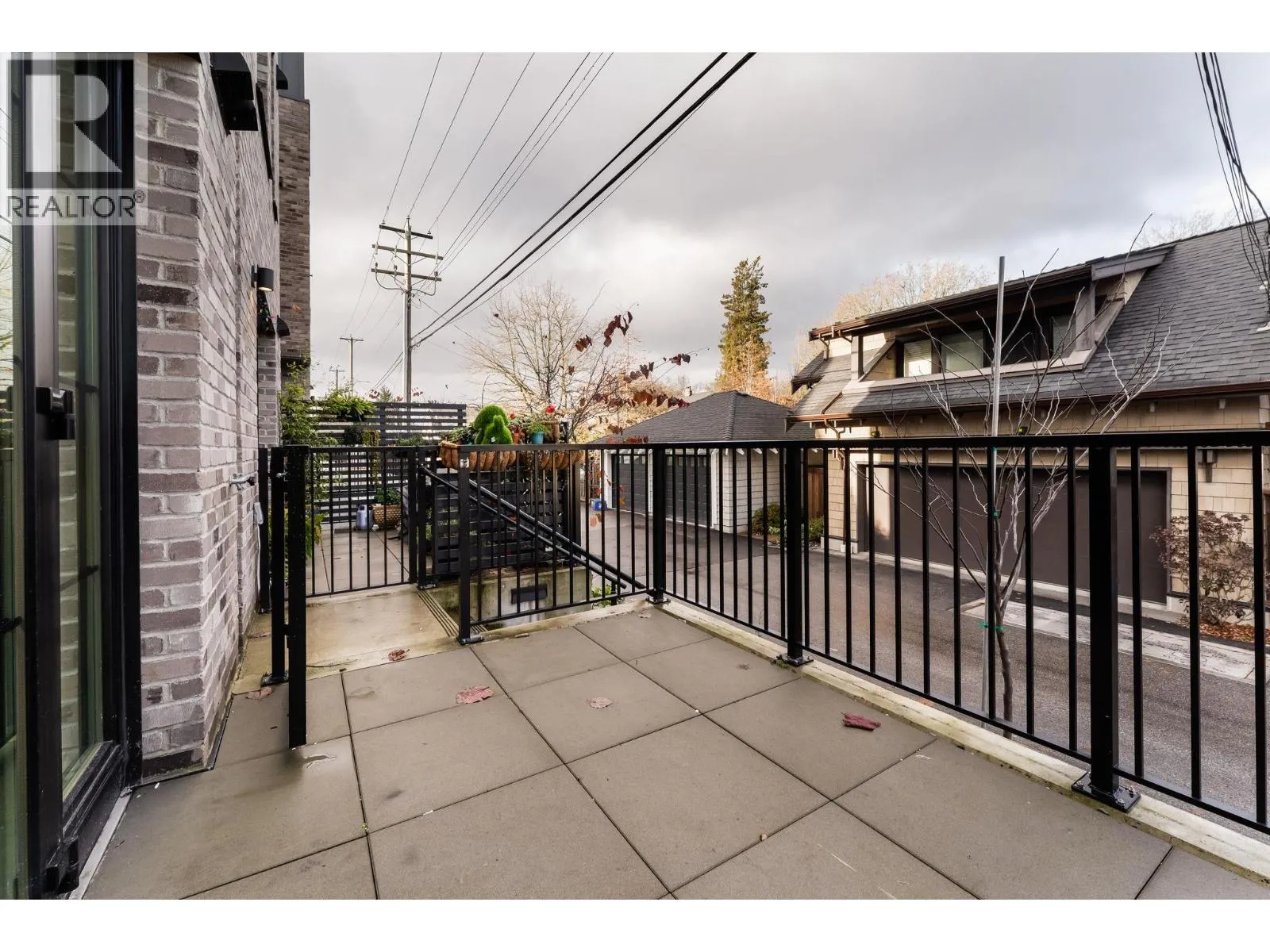 Brand new duplex-style townhome offering 3 bedrooms and 2.5 baths, attached to only one other home for a rare level of privacy in this boutique community. Enjoy both north and south exposure with a front and back patio, plus two private rooftop decks showcasing beautiful North Shore mountain and city views. The home features expansive 20 ft wide interiors, airy 9 ft ceilings on all three levels, AC, in-suite storage, and oak engineered hardwood throughout. The kitchen includes premium Fisher & Paykel appliances with an integrated fridge and dishwasher and a built-in wall oven. One EV-ready parking stall included. Located within King & Columbia, a boutique collection of modern brownstone homes in Riley Park, offering timeless architecture and thoughtful design. Just a 6-minute walk to the Canada Line and the shops and restaurants along Cambie and Main. (id:27476)