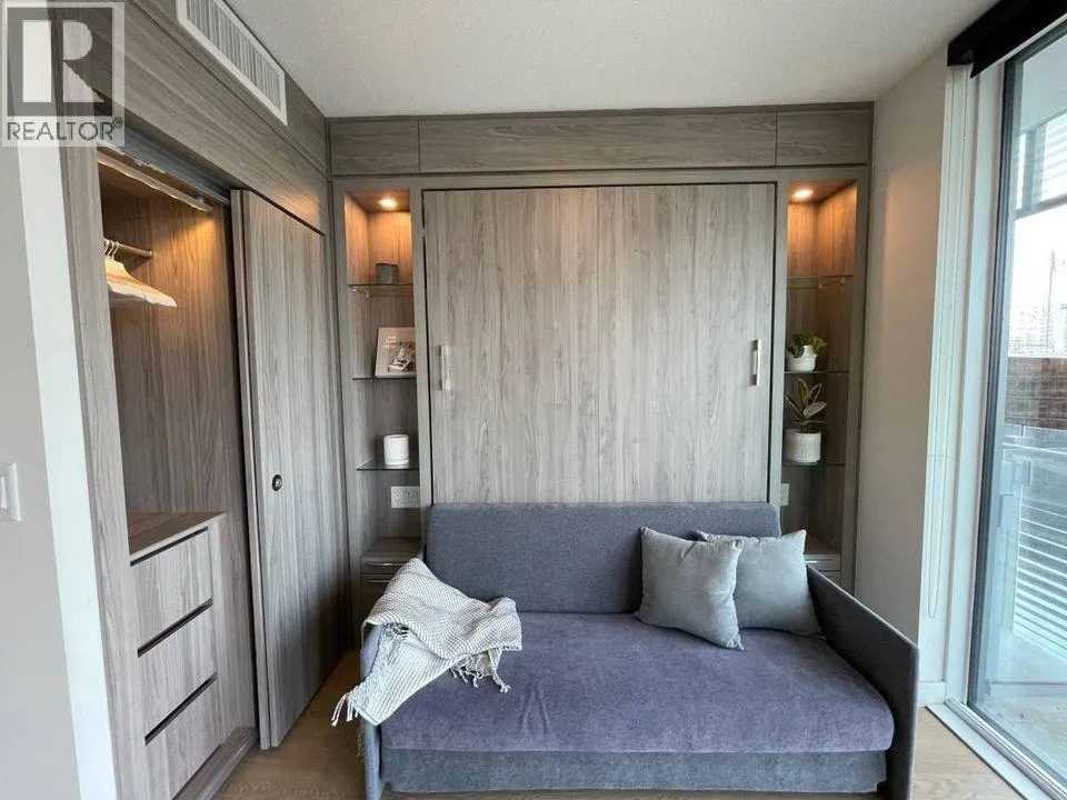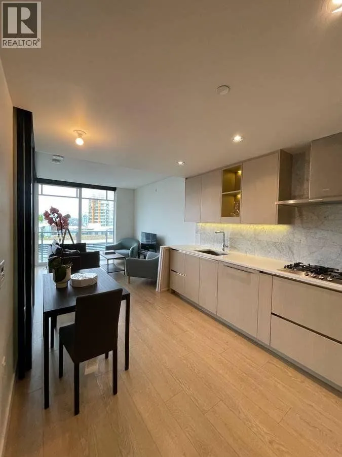Discover the epitome of sophisticated urban living in this beautifully furnished one-bedroom, one-bathroom condo located in downtown Vancouver. Spanning 500 square feet, this residence offers a perfect blend of luxury and practicality, making it an ideal home for singles or couples. The condo features elegant hardwood flooring and large windows that provide both east and south-facing exposures. These aspects ensure the space is bathed in natural light while offering stunning city, water, and mountain views. The living space is thoughtfully furnished with a flat-screen TV and an elegant love seat. The bedroom area includes a versatile Murphy bed, optimizing the space without sacrificing comfort. (id:27476)