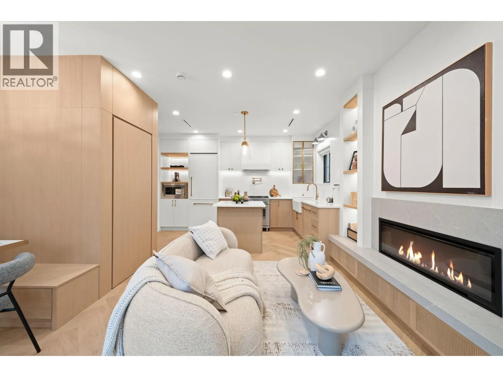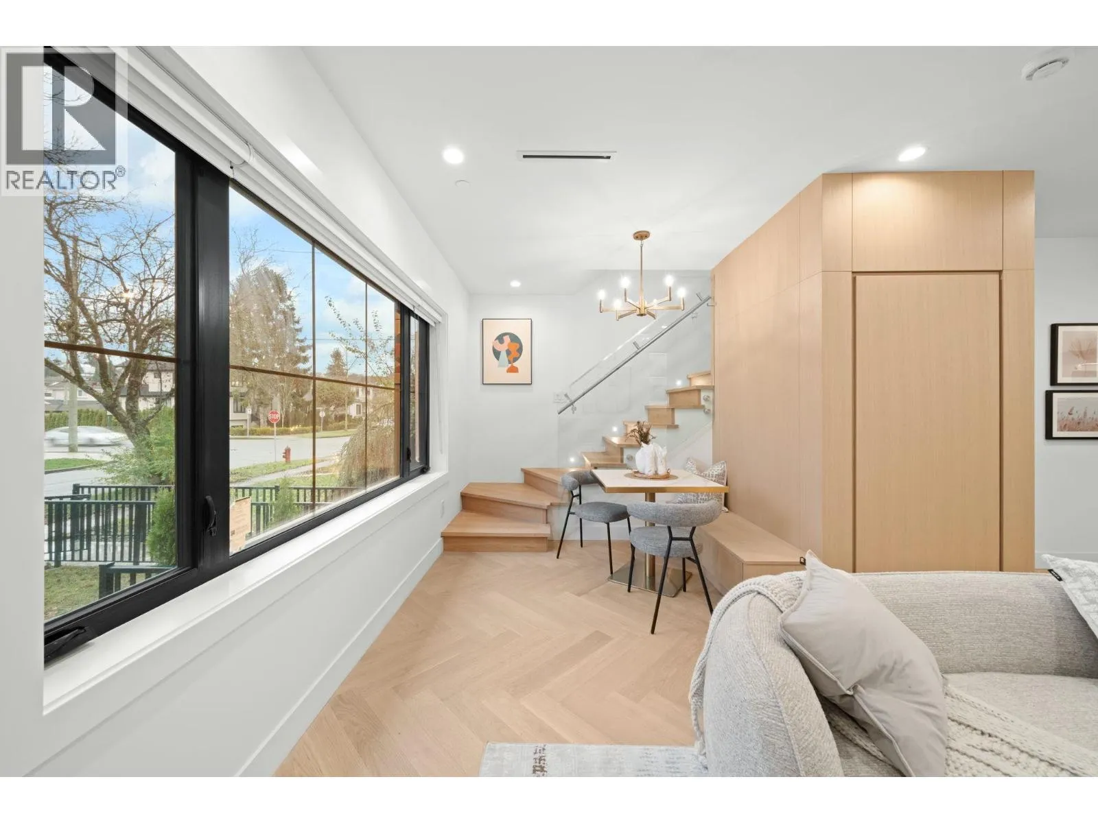 Modern design shines in this stylish 1/2 duplex in Vancouver´s desirable Arbutus neighbourhood. (Front Unit) Featuring 3 beds, 3.5 baths, an open-concept main floor with quartz countertops, brushed oak flooring, custom cabinetry with Atmosphere lighting, air-conditioning, and an electric fireplace. The upper level offers two en-suite bedrooms, including a primary with balcony. A 1-bedroom legal suite below provides great mortgage help or family use. With private fenced yard on a quiet street, this home is ideal for young and start-up families. 1 garage parking with EV charger included. Book your private showing today. School Catchment: Trafalgar Elementary & Prince of Wales Secondary & Kitsilano Secondary. (id:27476)