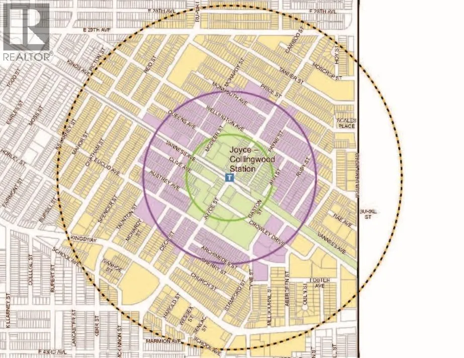 36X105 LOT WITH MANY POSSIBILITIES AND A VERY UNIQUE ZONING RM-10 WHICH ALLOWS BUILDING OF A TRIPLEX WITH .90 FLOOR TO SPACE RATIO OR 2 HALF DUPLEXES WITH LOCK-OFF SUITES WITH .75 FLOOR TO SPACE RATIO, UNDER THE JOYCE-COLLINGWOOD STATION PRECINCT PLAN WITH ONLY 5 LOTS IN THE BLOCK, ALLOWED TO BUILD A 6 STORIES RENTAL BUILDING WITH 2.4 FLOOR TO SPACE RATIO WITH A MINIMUM OF 3 LOTS ASSEMBLY OR 2.6 FLOOR TO SPACE RATIO WITH A MINIMUM OF 4 LOTS ASSEMBLY, UNDER THE TRANSIT ORIENTED AREA TIER-3 ALLOWED TO BUILD AN 8 STORIES RENTAL BUILDING WITH A 3.0 FLOOR TO SPACE RATIO WITH OTHER LOTS ASSEMBLY. WALK TO RESTAURANTS, SHOPS, PARK, SCHOOL, TRANSPORTATION & THE JOYCE SKYTRAIN STATION. A GREAT INVESTMENT!!! (id:27476)