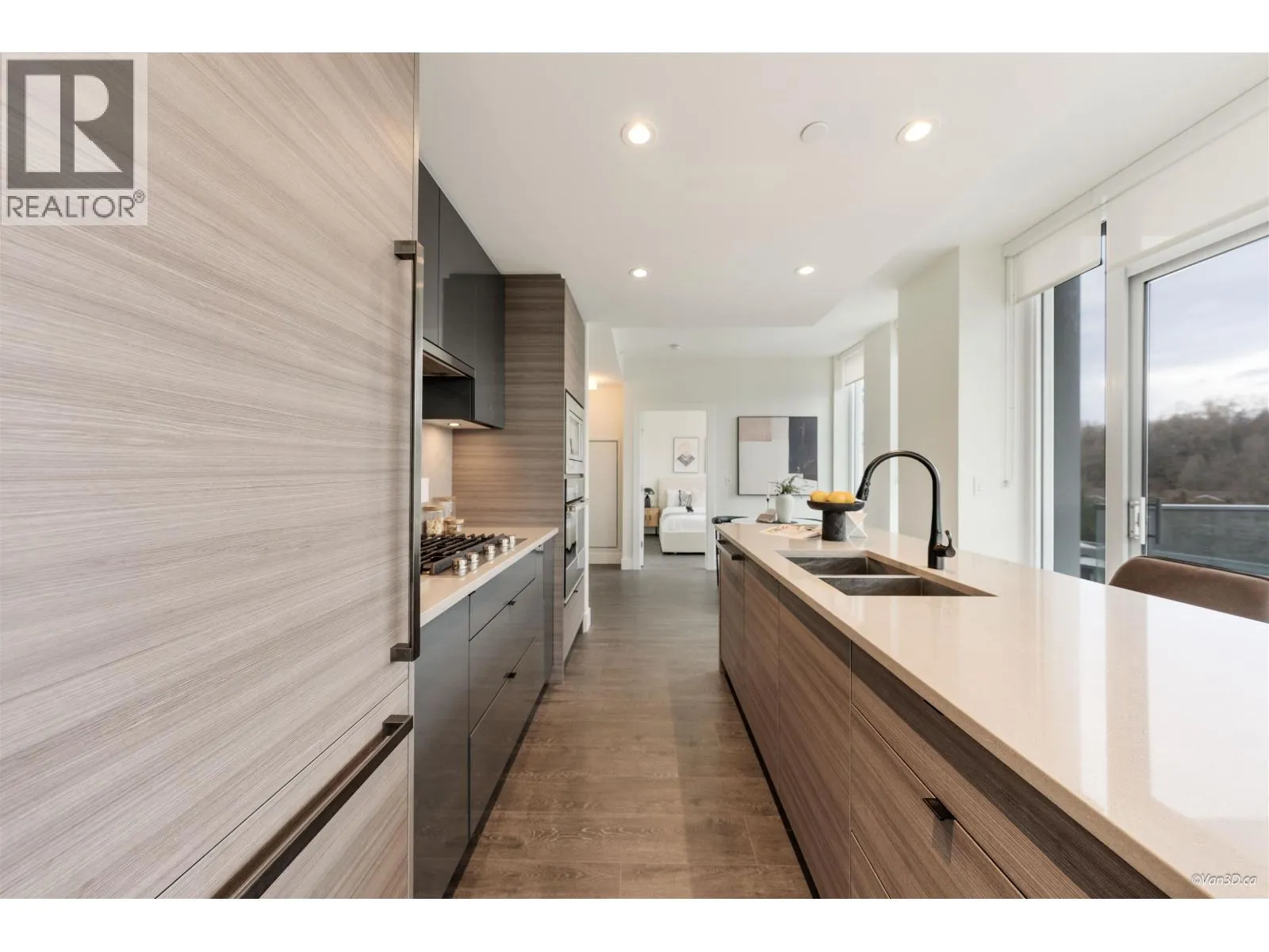 Beautifully staged, move-in ready and in mint-condition! This 890sf North-facing 2 bed + flex, 2 bath home in at the Mode - one of the tallest concrete towers in the River District area, featuring premium stainless steel appliances, quartz counters and backsplash, bedroom separation, in-floor ensuite heating, and high-efficiency heating and A/C cooling. Steps to shops, green space. Amazing resort-style amenities including concierge, hot tub, fitness centre, guest suites, theater/screening room, dog wash stn, bike-repair and workshop space. OPEN HOUSE Saturday/Sunday Dec 13th/14th from 2:00-4:00pm (id:27476)