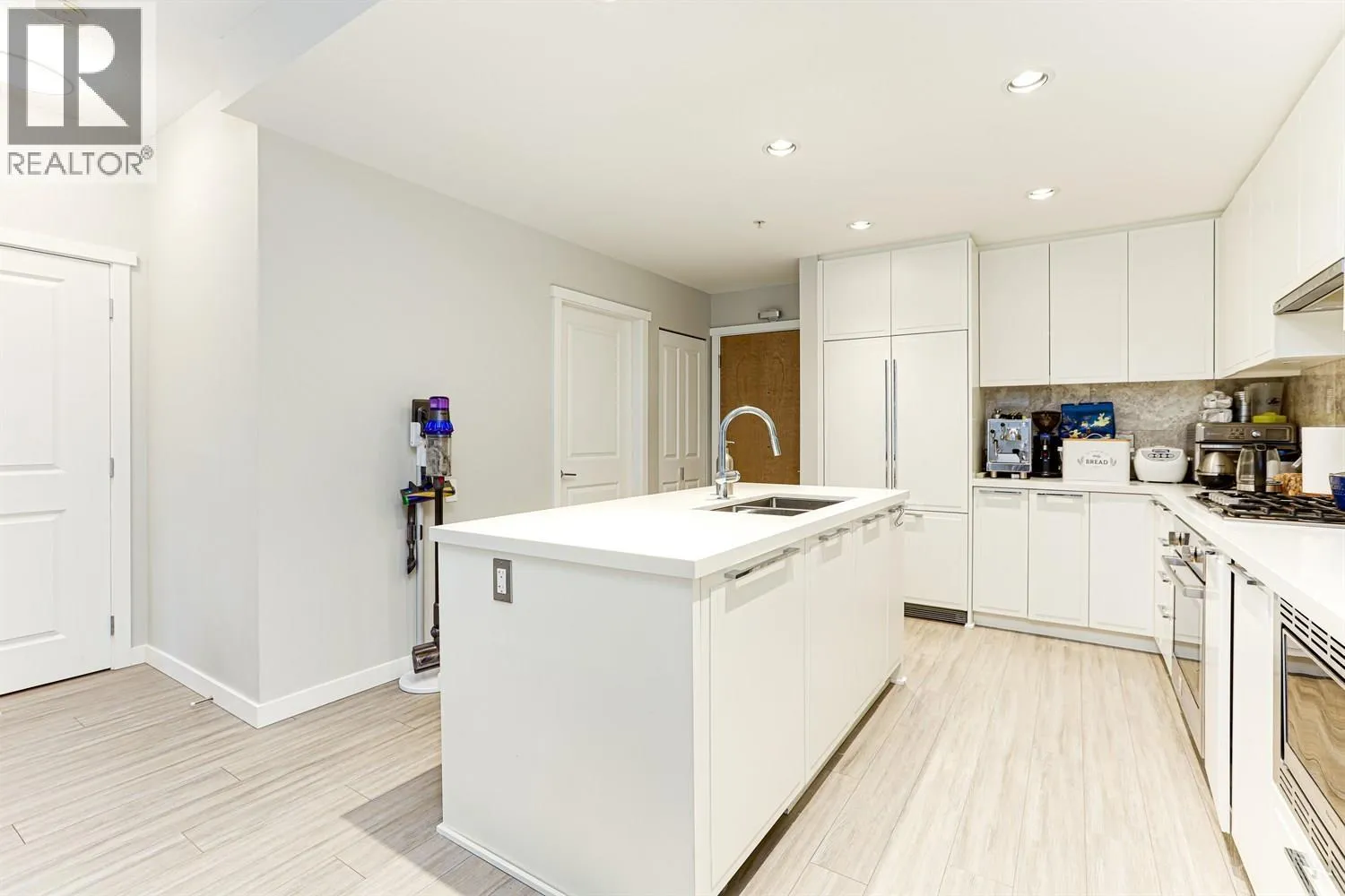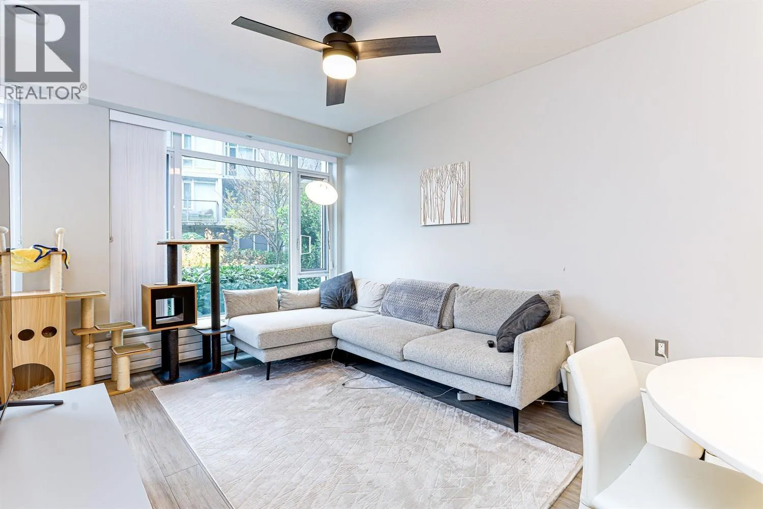 Largest floorplan in the building! This rarely available 983 sq.ft. ground-floor corner home offers a bright and spacious 2 bed + den, 2 bath layout with an oversized private patio-ideal for entertaining or relaxing. Beautifully maintained and showing exceptionally well, this home features 9 ft ceilings, large windows, modern finishings, and a highly functional open-concept design. Built by renowned Polygon with exceptional quality and concrete construction. Located in the heart of the vibrant River District waterfront community, enjoy walkable access to shops, restaurants, grocery, banks, daycare, parks, and scenic riverside trails. Central Vancouver location with quick access to Burnaby. Safe, quiet, family-friendly neighbourhood. Open House Sun Dec 21, 2-4 PM. (id:27476)