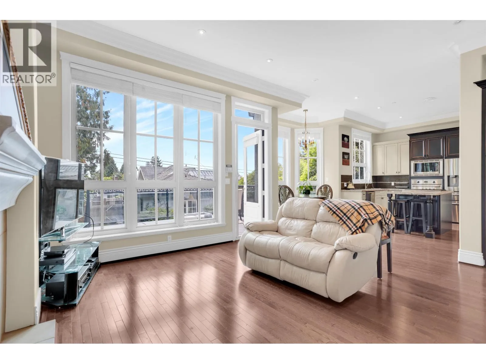 A polished Westside residence in one of Vancouver's most desirable neighbourhoods. Tucked between the trails of Pacific Spirit Park and the esteemed halls of Saint George's School, this home offers a rare blend of elegance and comfort. The main level flows effortlessly from formal entry to a bright, open kitchen and quiet backyard patio ideal for hosting or unwinding. Upstairs, three well-appointed bedrooms each enjoy their own bathroom, including a spacious primary suite with a walk-in closet and a jacuzzi-style tub. Downstairs, a private sauna and flexible layout with separate entry offer added versatility. Manicured front gardens complete the picture. (id:27476)