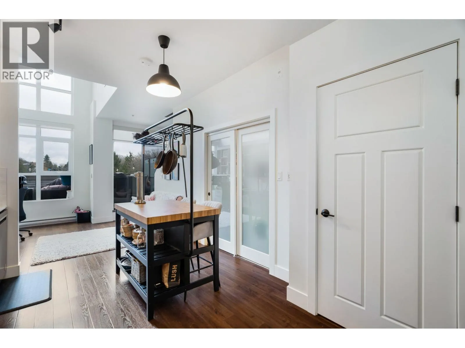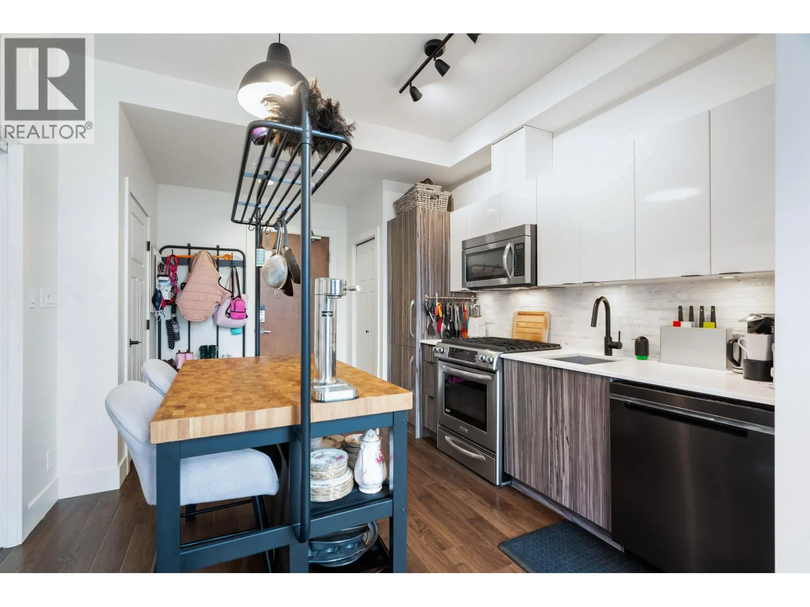 Discover urban living at its finest in this pet-friendly, 679 Sqft furnished penthouse for rent located in East Vancouver's vibrant Grandview-Woodland neighbourhood. Nestled within the Marquee On The Drive building, this 2-level chicly decorated suite offers modern decor, captivating artwork, and a balcony with views - the epitome of sophisticated city living. As you step inside, you'll be greeted by the grandeur of 22-foot ceilings that enhance the sense of space and airiness. The kitchen boasts stainless steel appliances, ensuring you have everything you need to prepare gourmet meals. Two balconies provide opportunities for outdoor relaxation and entertainment. This penthouse comes complete with in-suite laundry and ample storage space, ensuring your comfort and convenience. (id:27476)