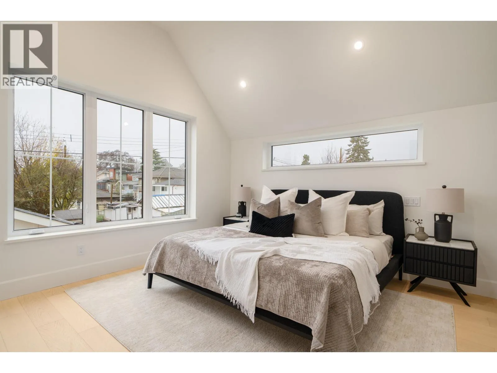 Located in a family-friendly East Van pocket, this custom back duplex offers the comfort & ease that families & down sizers seek: a home that truly lives like a single-family residence. Thoughtful interior design by Jacqueline Taggart, the main level, where 10ft ceilings create an airy setting for gatherings, quiet mornings, and everyday living. A generous kitchen with Fisher & Paykel appliances & a large island becomes the heart of the home, with storage tucked thoughtfully throughout. Upstairs, vaulted 11´10 ceilings open to 3 bright bedrooms all on one floor, including a serene 15' x 13' primary. A private backyard & abundant natural light complete this inviting retreat. (id:27476)