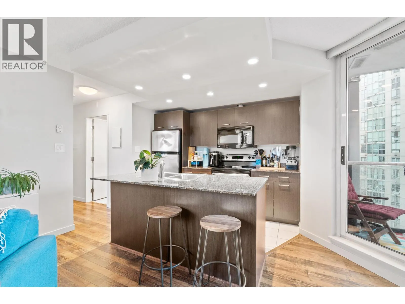 Welcome to 1212 Howe, a standout corner unit (180 degree views) in a concrete building at the heart of Downtown! This bright & spacious home boasts floor-to-ceiling windows, filling the open-concept layout with tons of natural light, stainless steel appliances, granite countertops, laminate flooring, in suite laundry, parking & storage! You'll love the balcony with the beautiful views including mountains & the unbeatable location! Convenience is at your doorstep with Fitness World & Tim Hortons in the complex along with being just mins away from Skytrain, Parks, Yaletown, the West End, Robson & the Entertainment District. 1 Parking Stall 1 Storage Locker Utilities NOT included Tenant Insurance Required (id:27476)