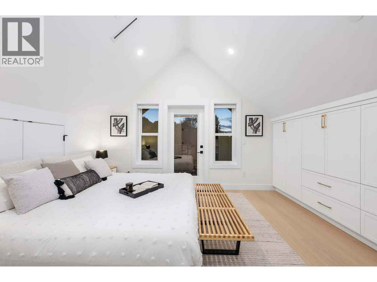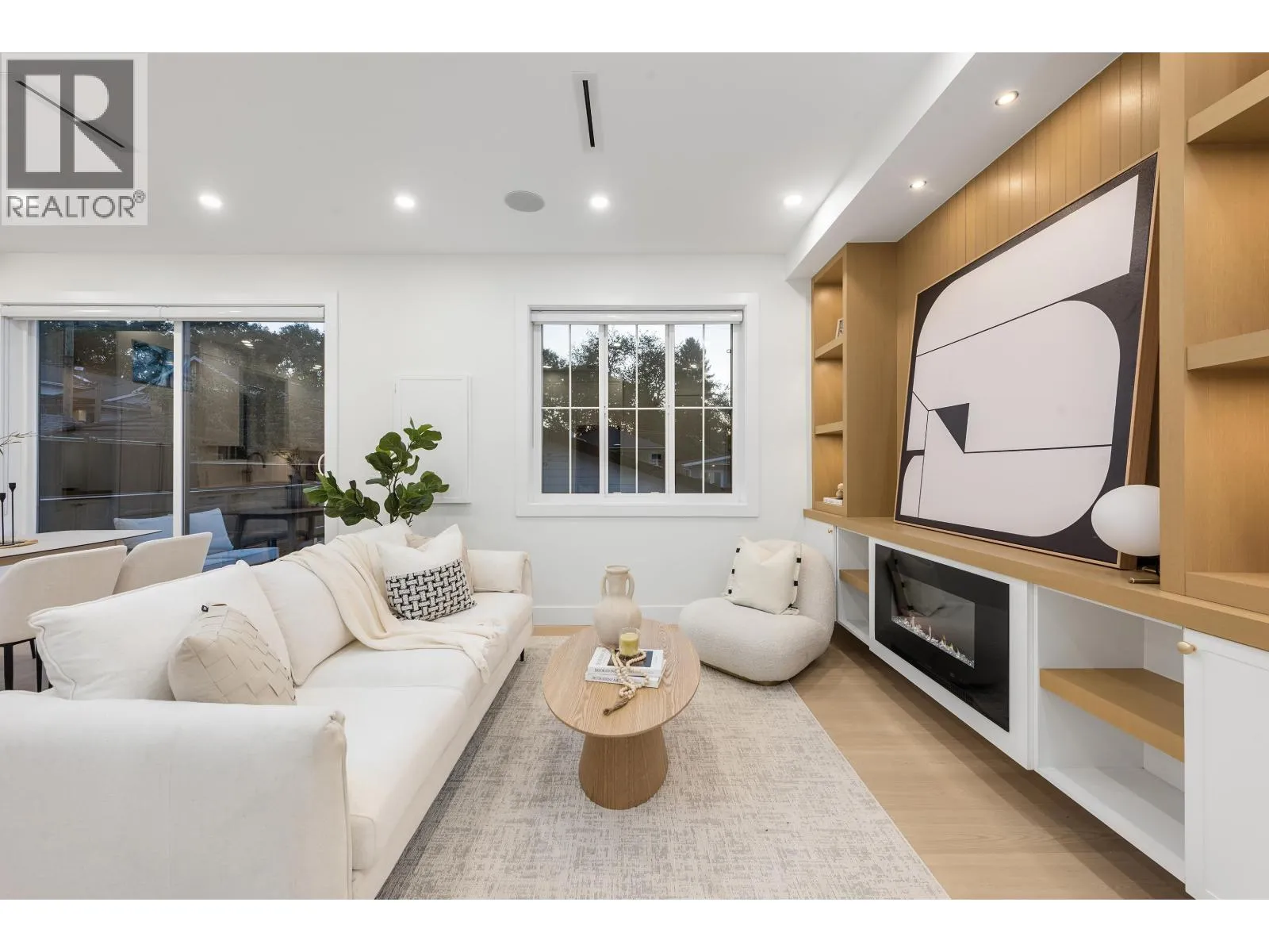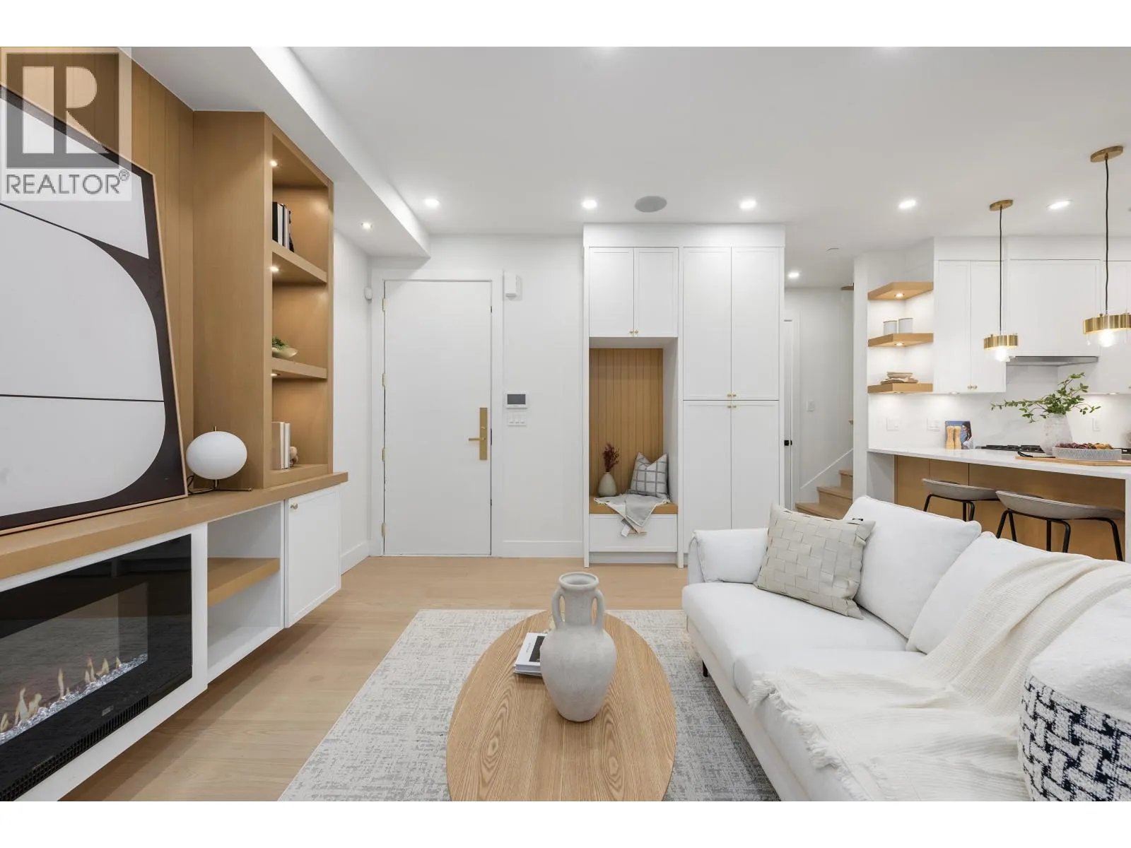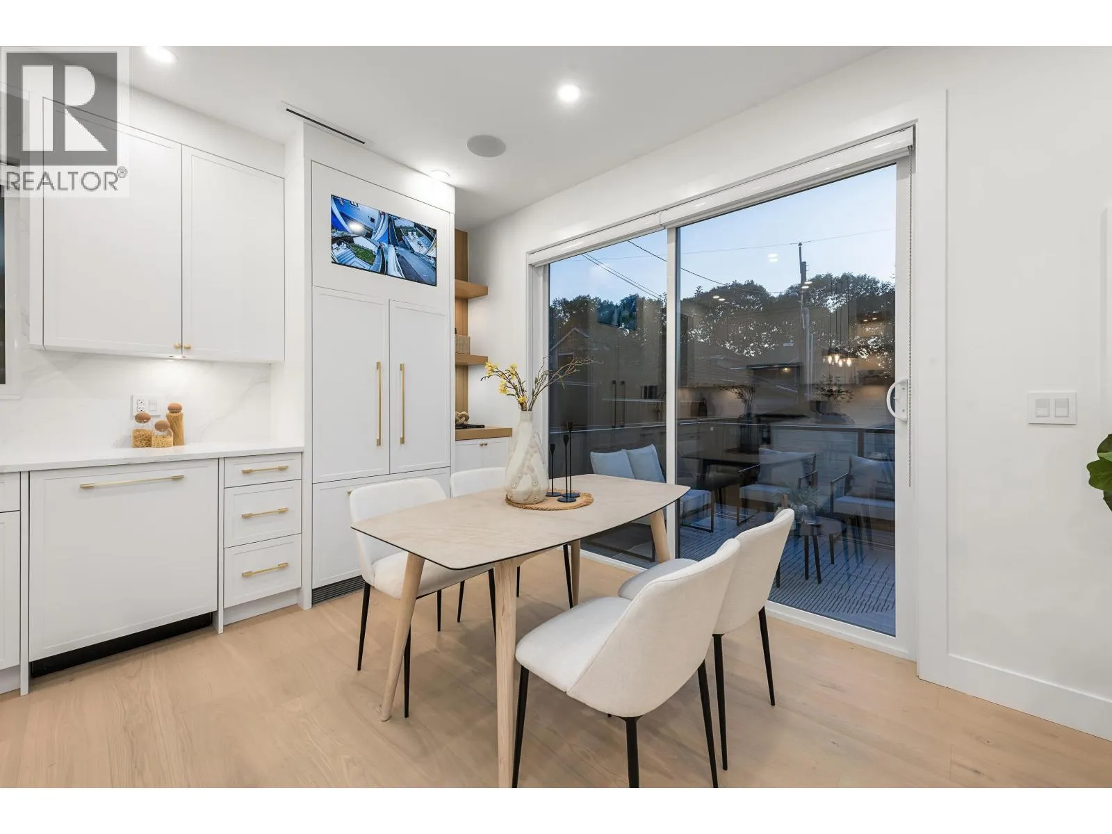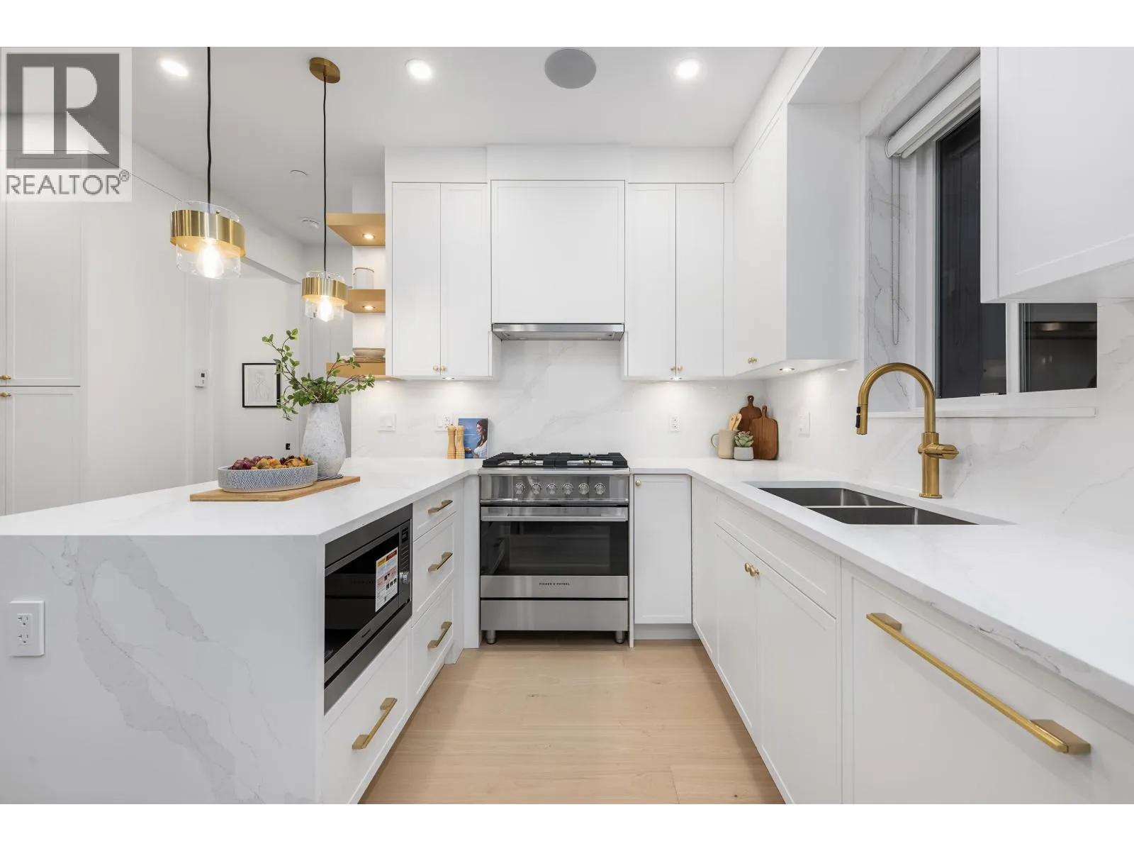 This brand new BACK half duplex is thoughtfully crafted by an experienced builder who carefully selected premium materials throughout, from custom closets to built-in cabinetry. The main floor boasts 10 ft ceilings, a spacious open layout, Fisher & Paykel appliances, quartz countertops, a custom bar/pantry, and a built-in entertainment centre. Enjoy both an elevated deck and ground floor patio, perfect for indoor-outdoor living. Modern comforts include a heat pump, forced air, air conditioning, alarm/security system with monitors, electric fireplace, and in-ceiling speakers. The home offers a stunning top-floor balcony view, single-car garage with roller-style doors, and a covered entryway. Conveniently located near Victoria Drive shops, Mount Pleasant, Downtown Vancouver & bus to UBC (id:27476)