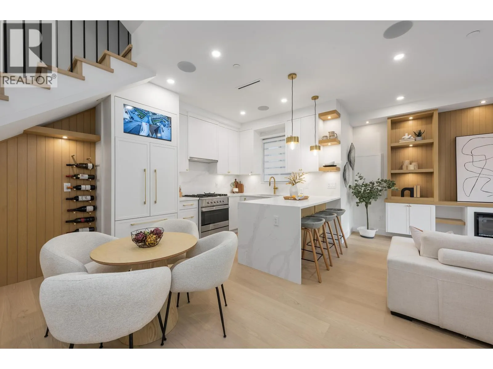 Discover modern living in this beautifully finished FRONT half duplex in East Vancouver. With 10 ft ceilings on the main floor and an open concept design, this home offers space, light, and functionality. The kitchen is equipped with Fisher & Paykel appliances, quartz countertops, and timeless color scheme. While the living room showcases a built-in entertainment centre and electric fireplace. Comfort and peace of mind come with a heat pump, forced air, A/C, alarm/security system with monitors, and built-in speakers. A single-car garage with roller-style doors, window coverings, and covered entryway complete this well-designed home. All this, just steps from Victoria Drive shops, close to Mount Pleasant, Downtown Vancouver, and with direct transit to UBC. (id:27476)