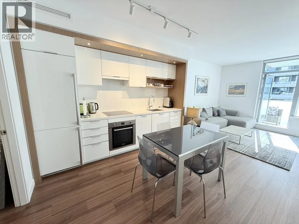 VODA on the Creek by Concert Properties in one of the most vibrant neighbourhoods right on the False Creek Seawall. Luxurious 1 bedroom + den/office facing park like courtyard with peaceful green views. King size bedroom with en-suite bathroom (heated floor in bathroom) and double walk through closet. Sparkling white kitchen with Bosh appliances and white quarts counters. 9'ceilings. A/C. Immaculate move in condition. Great community feel and walkability. London Drugs, Urban Fare. Legacy Liquor Store, Flying Pig, Banks etc. are just steps away. Short walk to Skytrain. EV parking stall, Roof top garden, large gym and party room, concierge. (id:27476)