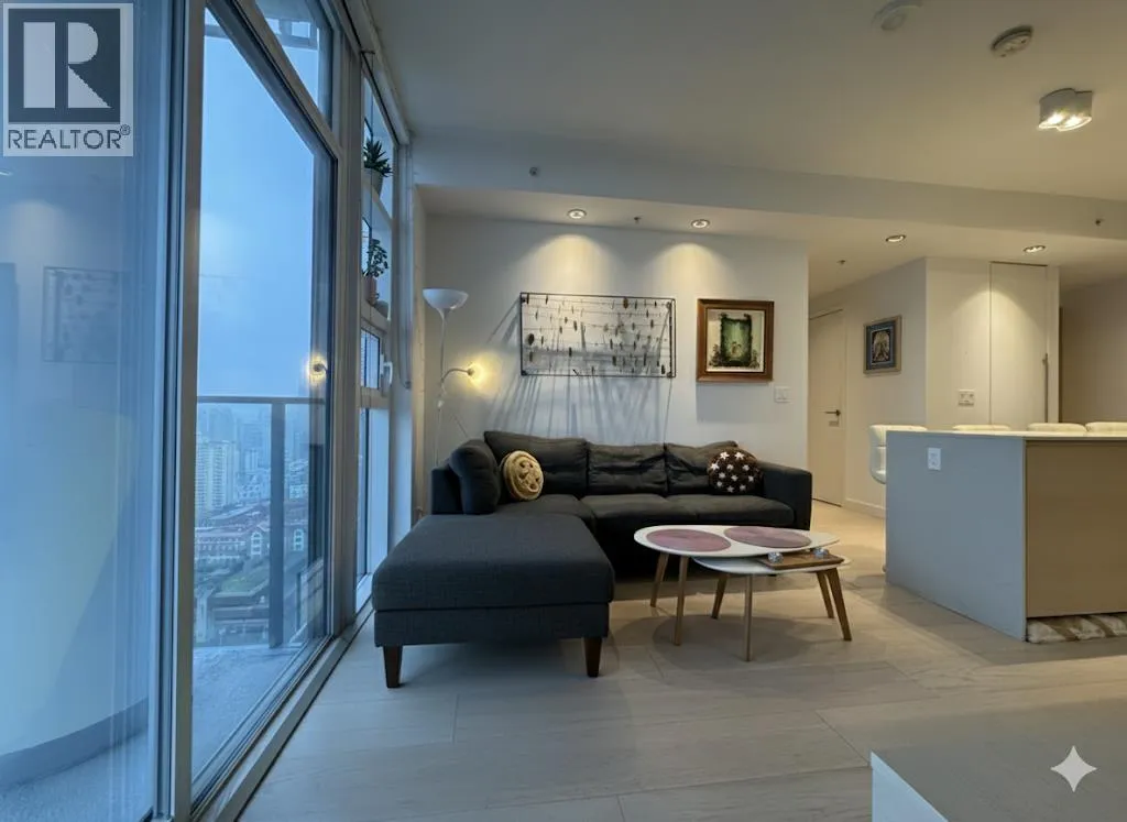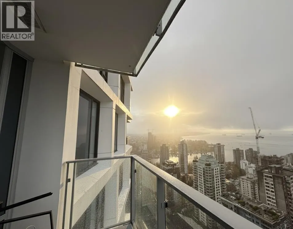 This coveted Skyfront Collection "01" residence boasts cinematic views of English Bay, captivating from sunrise to sunset in every room. The open two-bedroom plus den layout blends style and function, featuring Italian cabinetry, spa-inspired bathrooms with heated marble floors, a full Smart Home system, and air conditioning for year-round comfort. Step outside to the semi-exclusive balcony, a serene space for morning coffee, sunset cocktails, or simply soaking in the panoramic vistas. The chef´s kitchen, outfitted with Gaggenau appliances and a generous quartz waterfall island, is perfect for entertaining. The primary suite offers a luxurious ensuite with an oversized walk-in rain shower, smoked-glass accents and marble walls while the second bath features a soothing soaker tub. (id:27476)